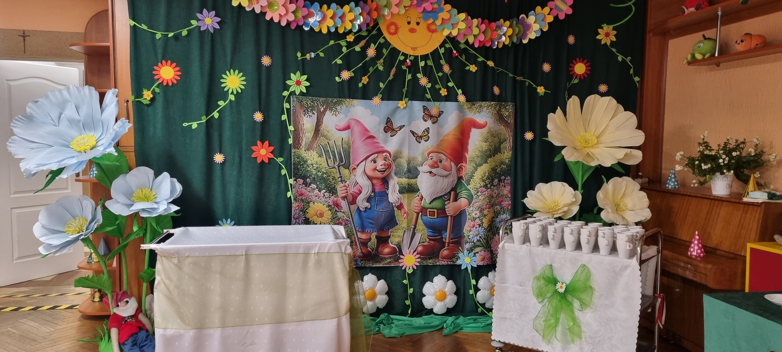 Po części oficjalnej uczestnicy mieli okazję odsłonić pamiątkową ławkę, zwiedzić przedszkole, powspominać minione lata oraz spotkać się przy jubileuszowym poczęstunku.