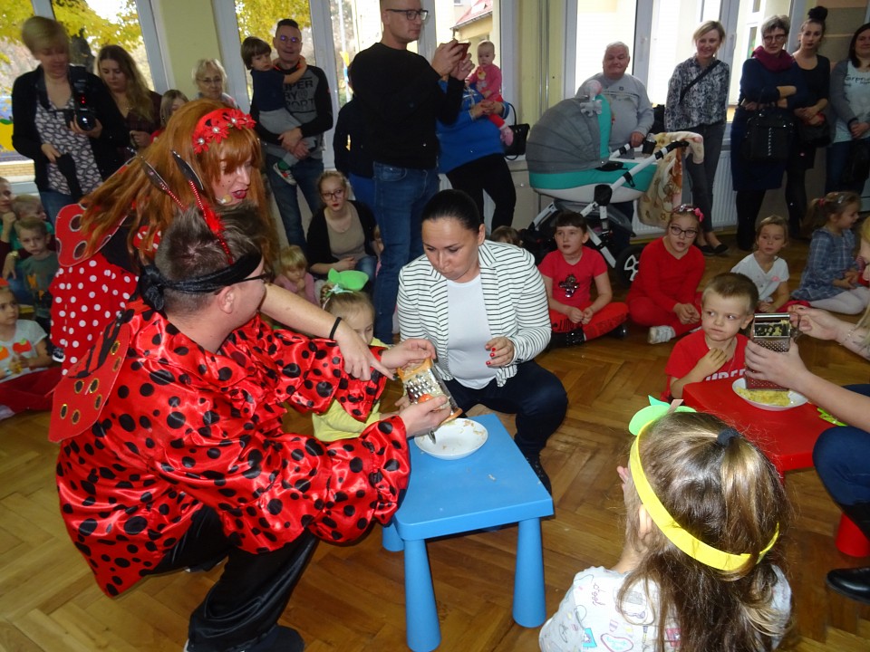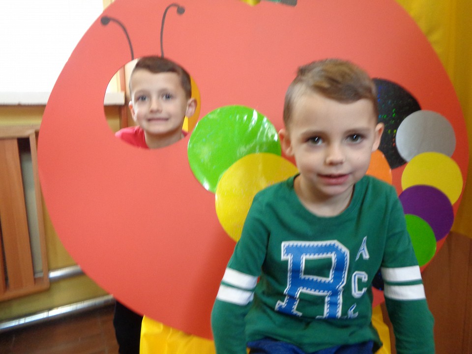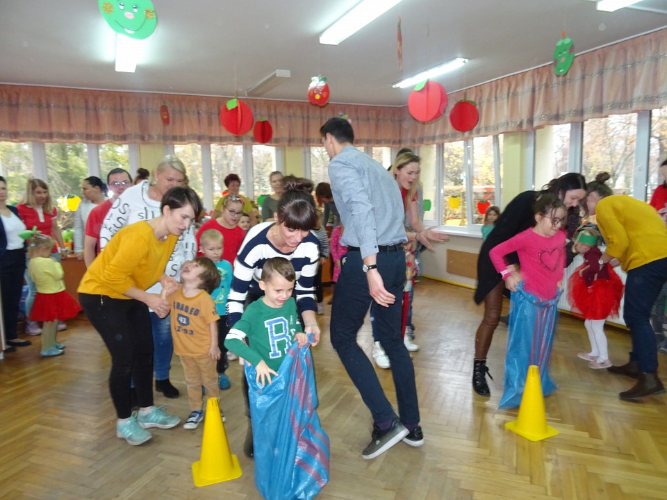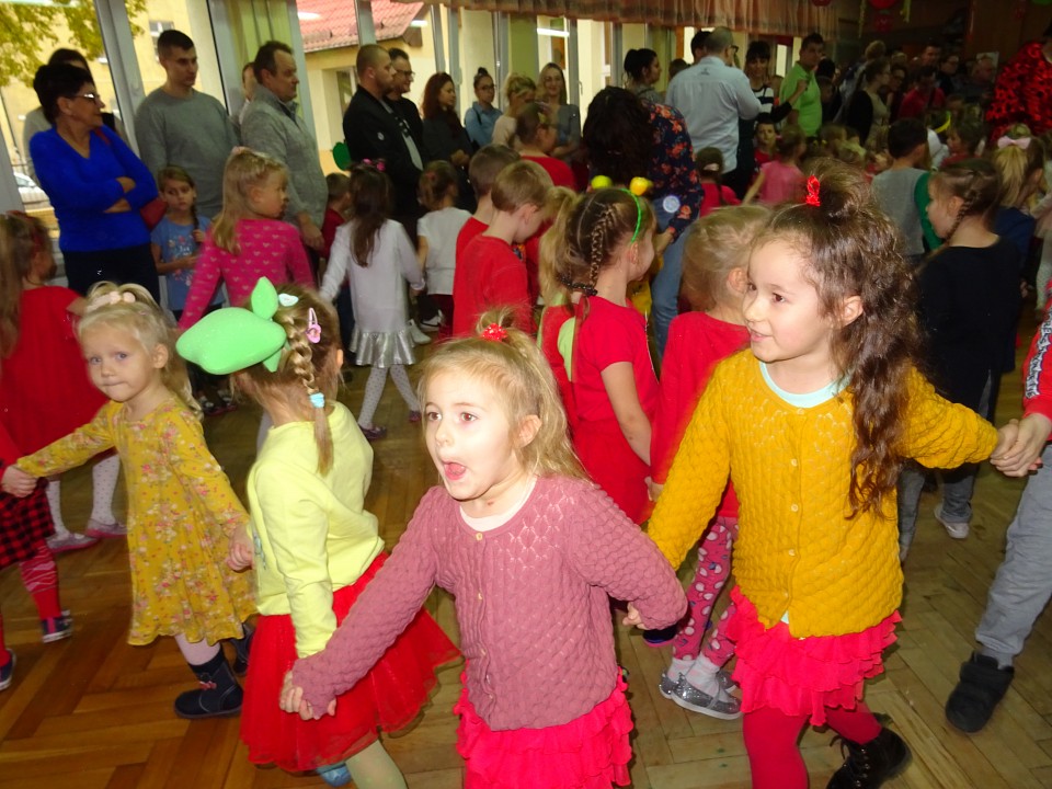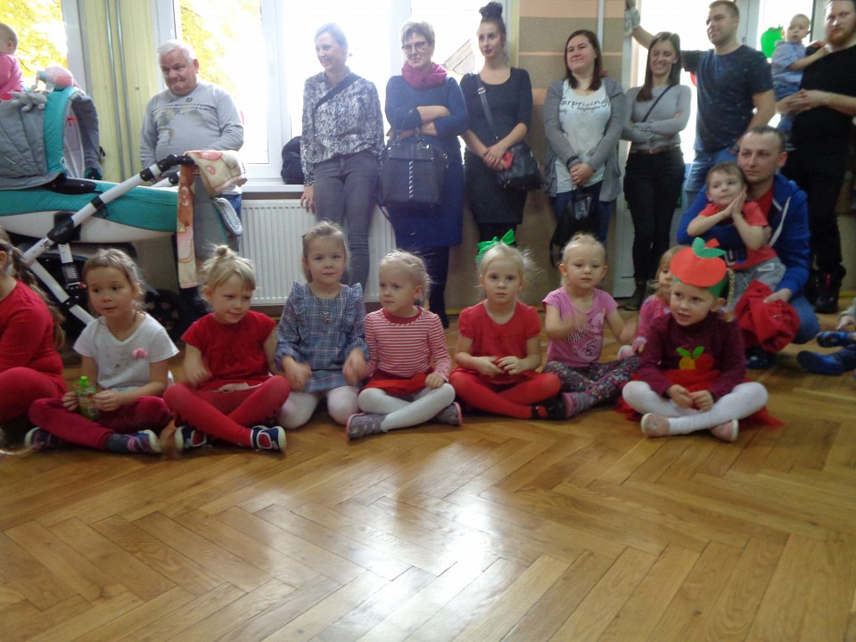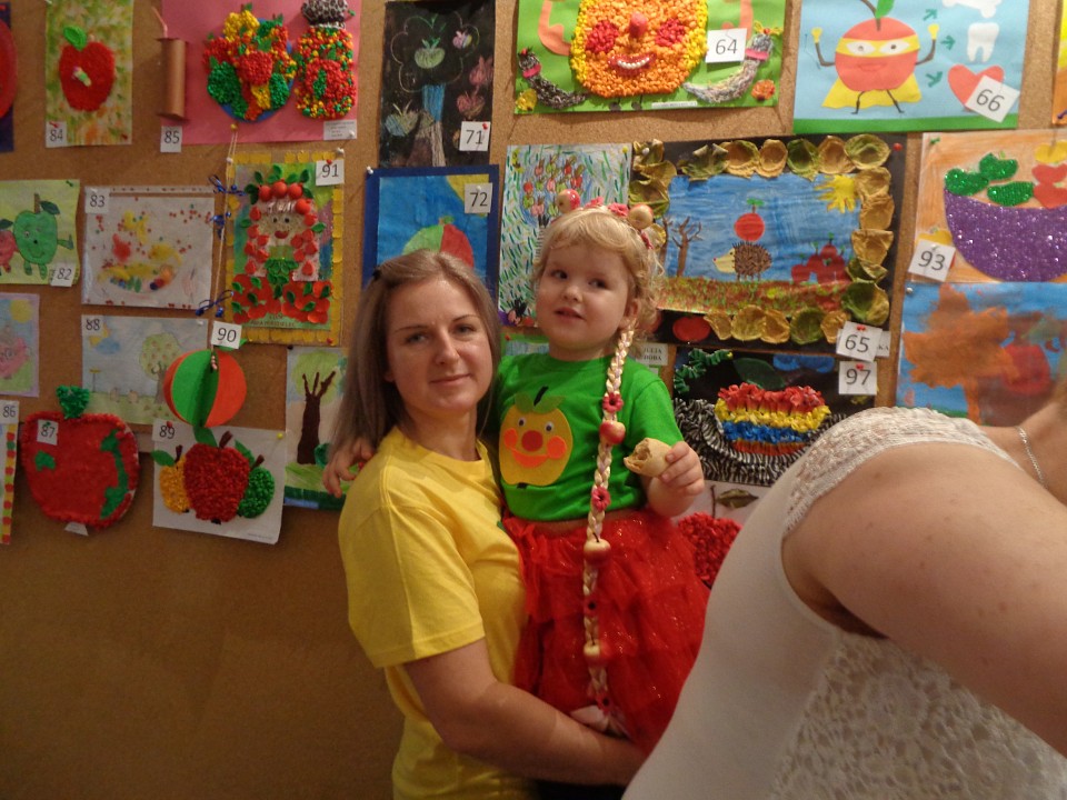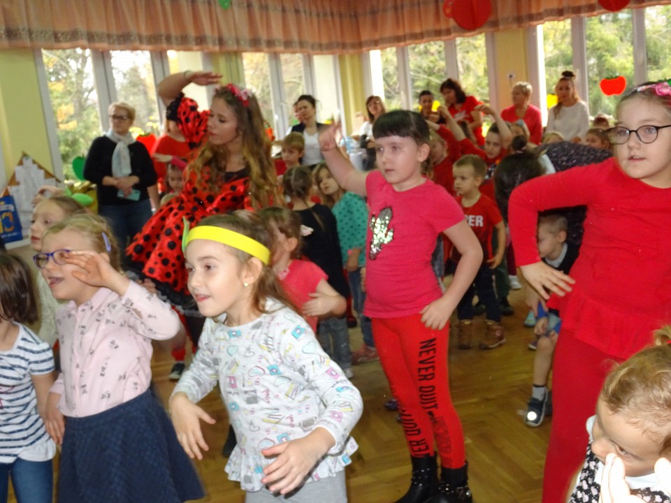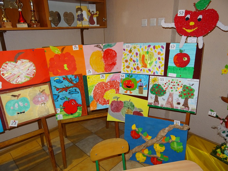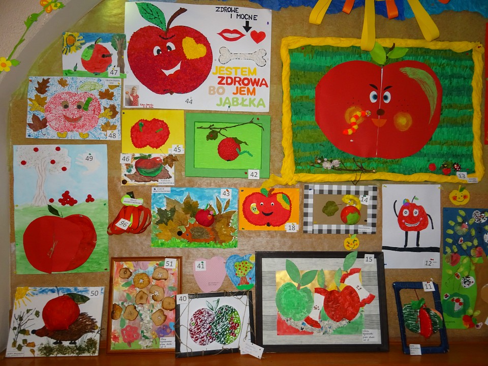 W programie były zabawy integracyjne przy muzyce, poprowadzone przezanimatorów - MYSIĘ ZDROWISIĘ, KROPKĘ i KROPKA, którzy w bardzo ciekawy sposób zachęcali dzieci i rodziców do czynnego udziału w imprezie. Sprawiło to wszystkim wiele radości i pozwoliło na bliższe poznanie się wszystkich uczestników. Były również konkursy, zdjęcia z jabłuszkiem oraz kiermasz wypieków jabłkowych przygotowany przez nasze kuchareczki i rodziców. Można było również skosztować pieczonego jabłka i pysznego soku jabłkowego. Prawdziwą atrakcją było wręczenie nagród dzieciom za udział w konkursie plastycznym pod hasłem JABŁKO NA PORTRECIE.