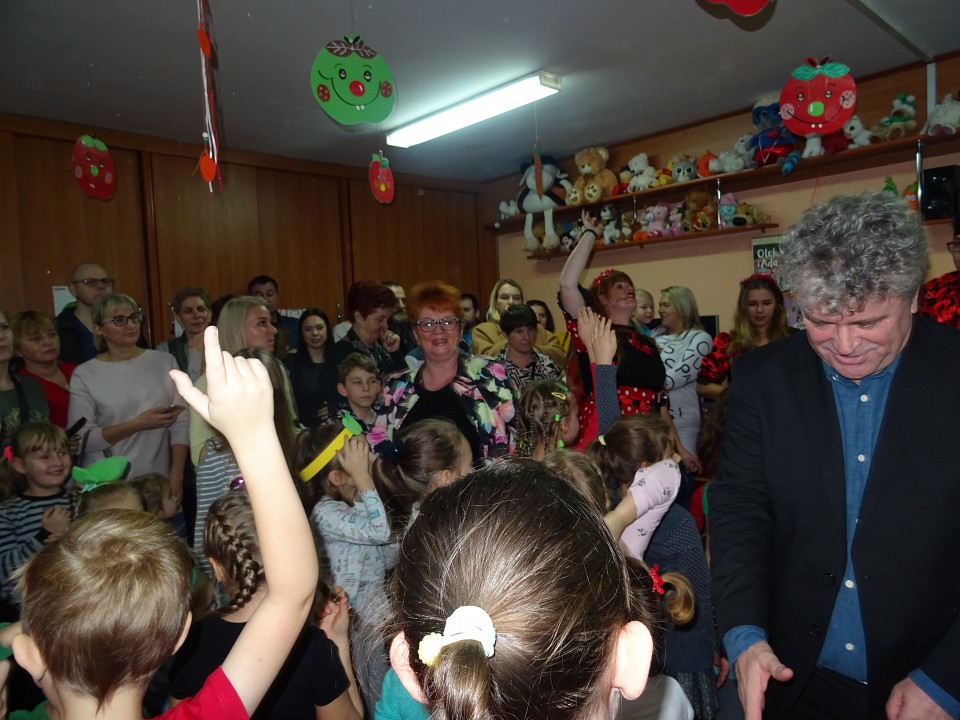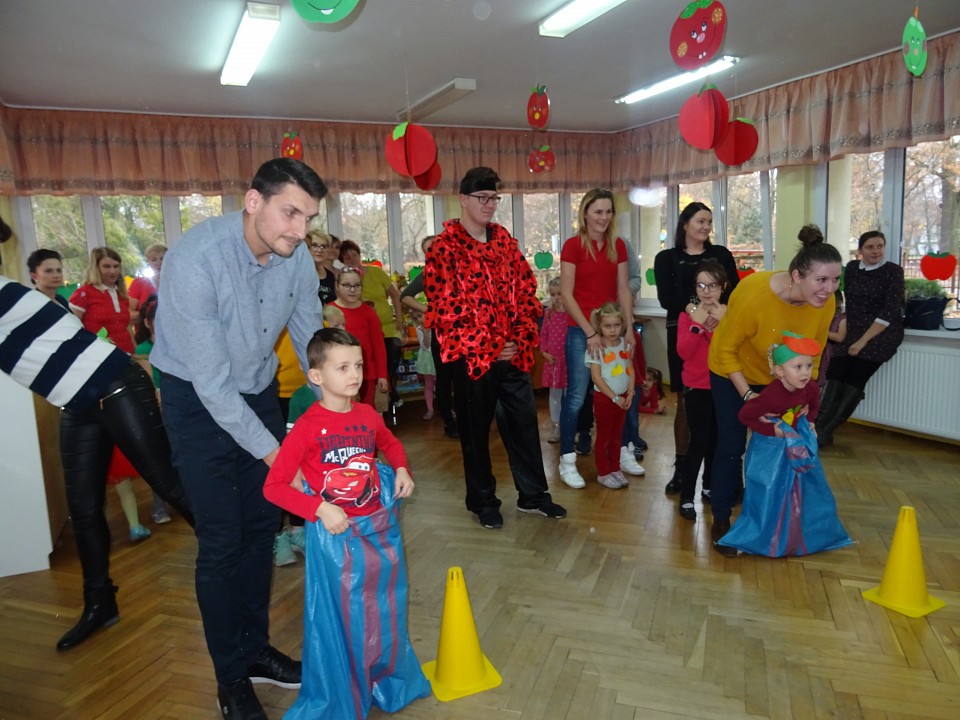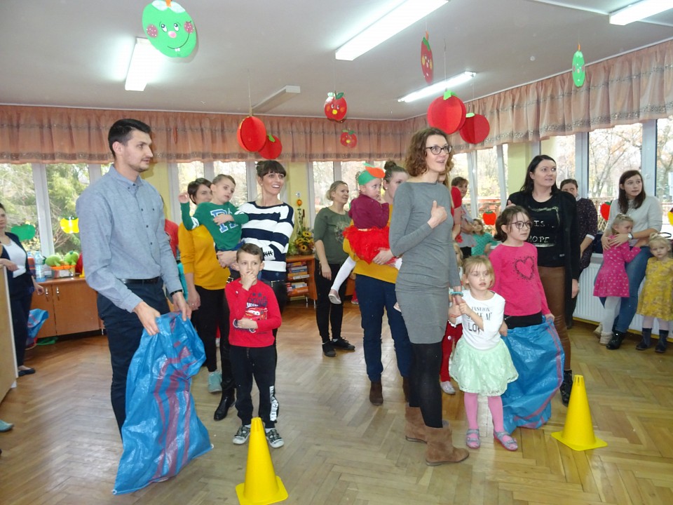 W sobotę 16 listopada o godzinie jedenastej, w odświętnie udekorowanych jabłuszkami salach, zebrali się rodzice wraz ze swoimi pociechami na integracyjnym BALU JABŁUSZKOWYM. Pani Dyrektor - Janina Świtka wspólnie z Panem Burmistrzem - Witoldem Namyślakiem powitała wszystkich zebranych gości, którzy przybyli na bal.