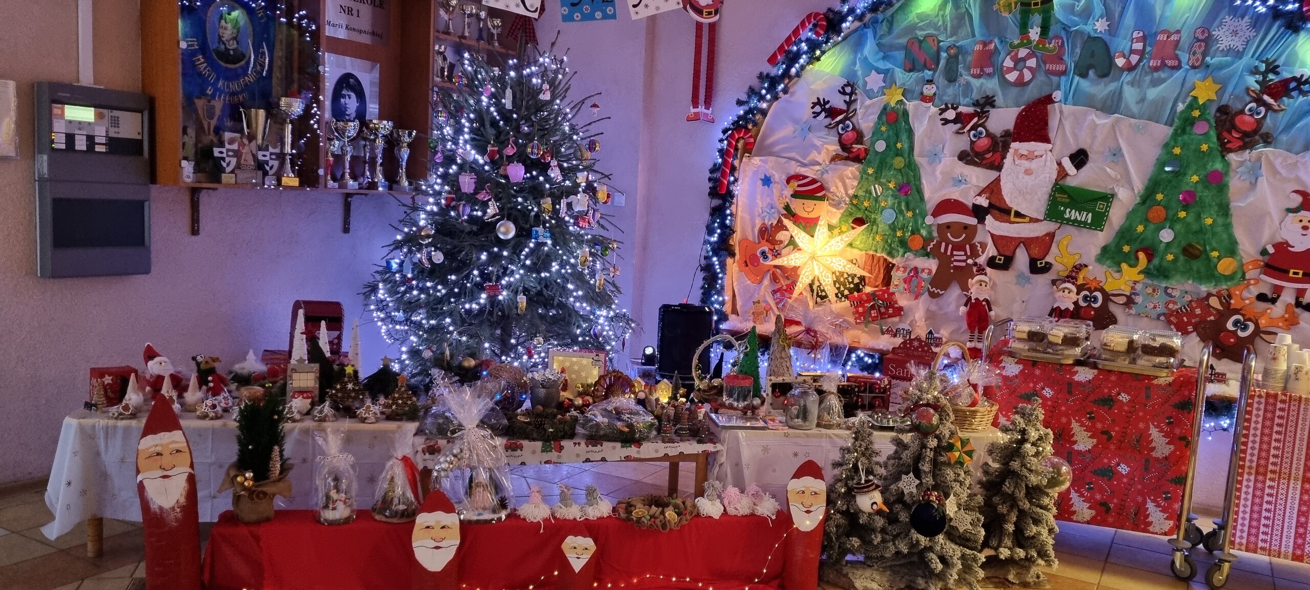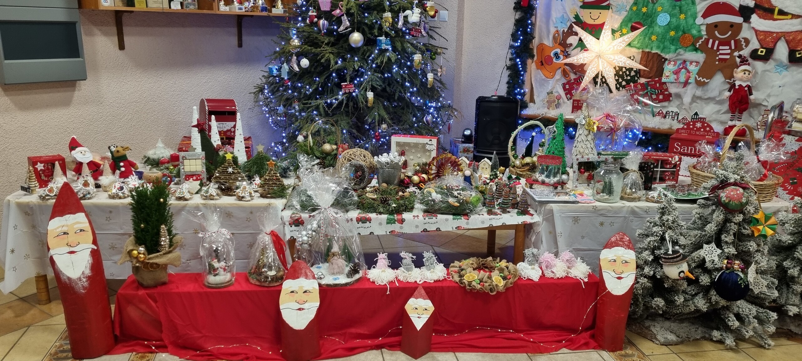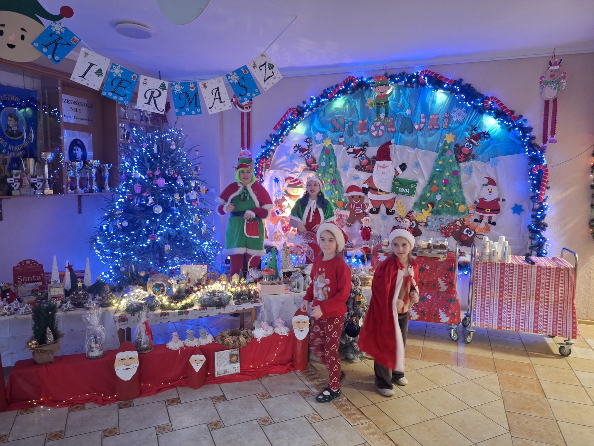 Na kilka dni przed Świętami Bożego Narodzenia w naszym przedszkolu odbył się kiermasz ozdób świątecznych. Na specjalnie przygotowanych stoiskach znalazły się wykonane przez przedszkolaków oraz ich bliskich bożonarodzeniowe dekoracje, choinki, stroiki, gwiazdeczki, aniołki, a także pyszne, domowe wypieki, lukrowane pierniczki i lemoniada. Kiermasz wzbudził wielkie zainteresowanie rodziców, jak i samych przedszkolaków. Ozdoby były bardzo pomysłowe i kolorowe. Dzięki hojności i zaangażowaniu rodziców udało nam się zebrać dosyć dużą kwotę pieniążków, które przeznaczymy na zabawki dla dzieci.