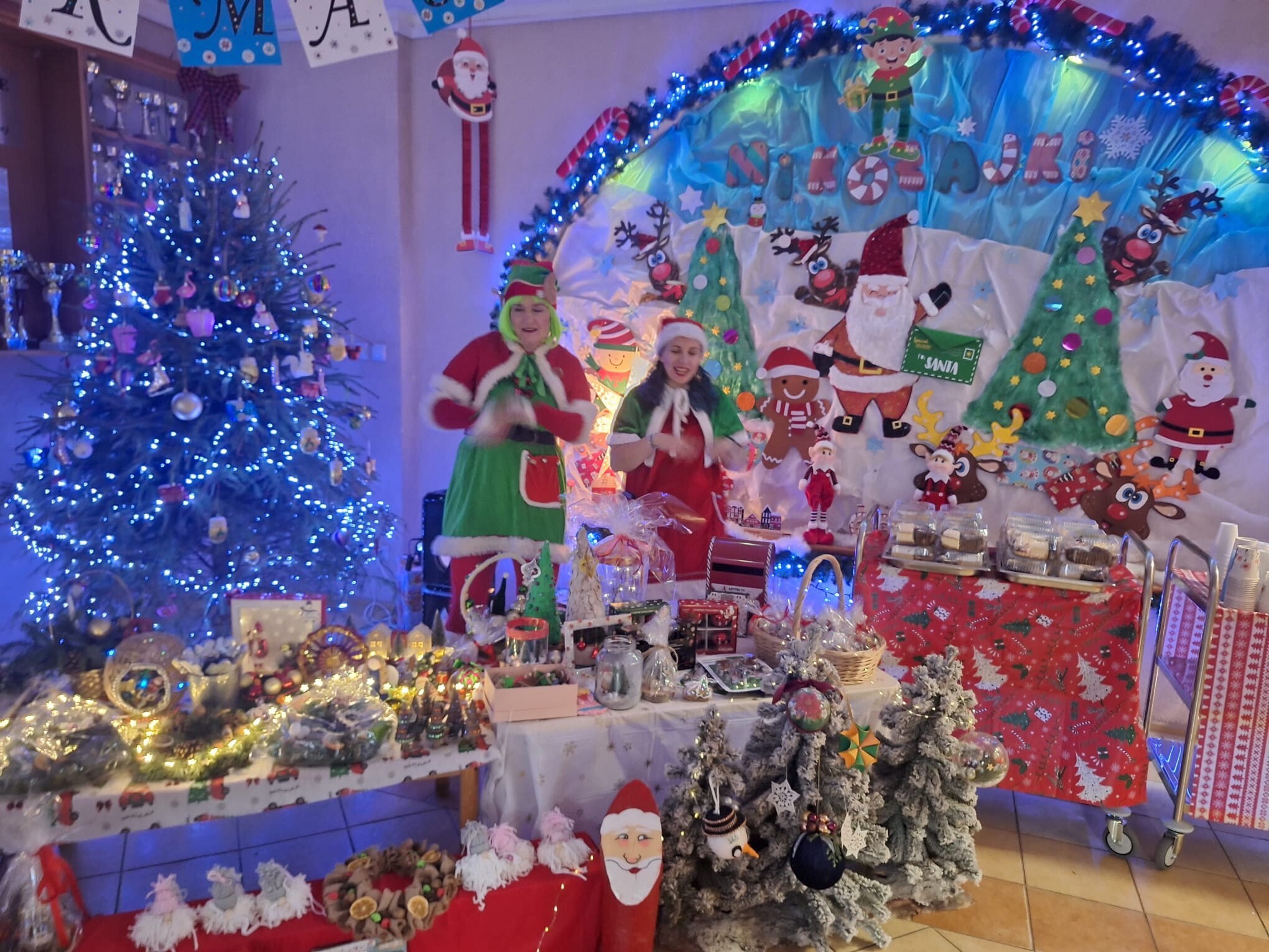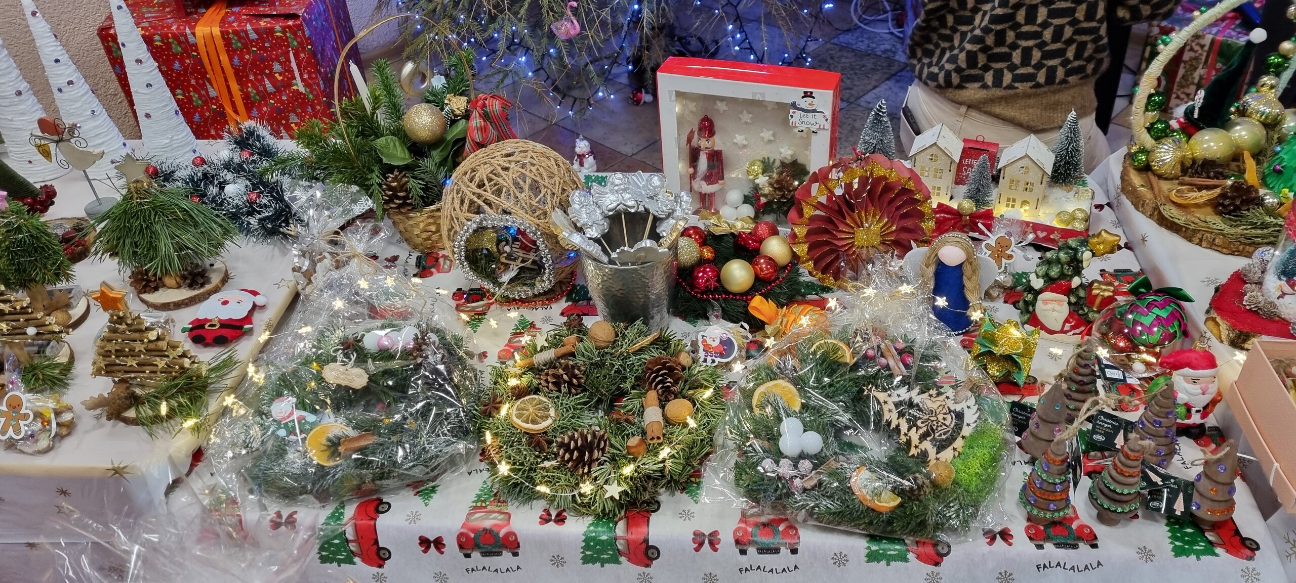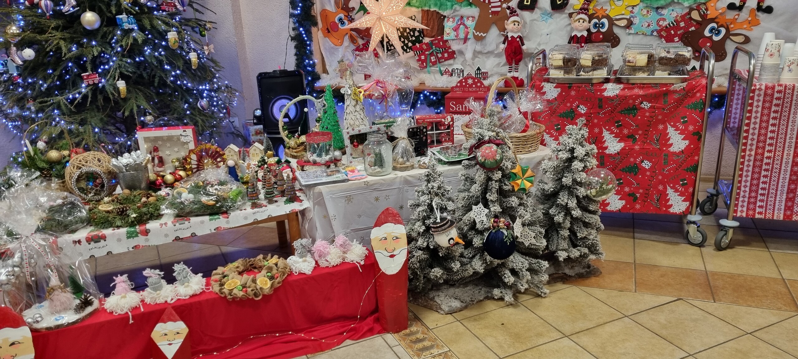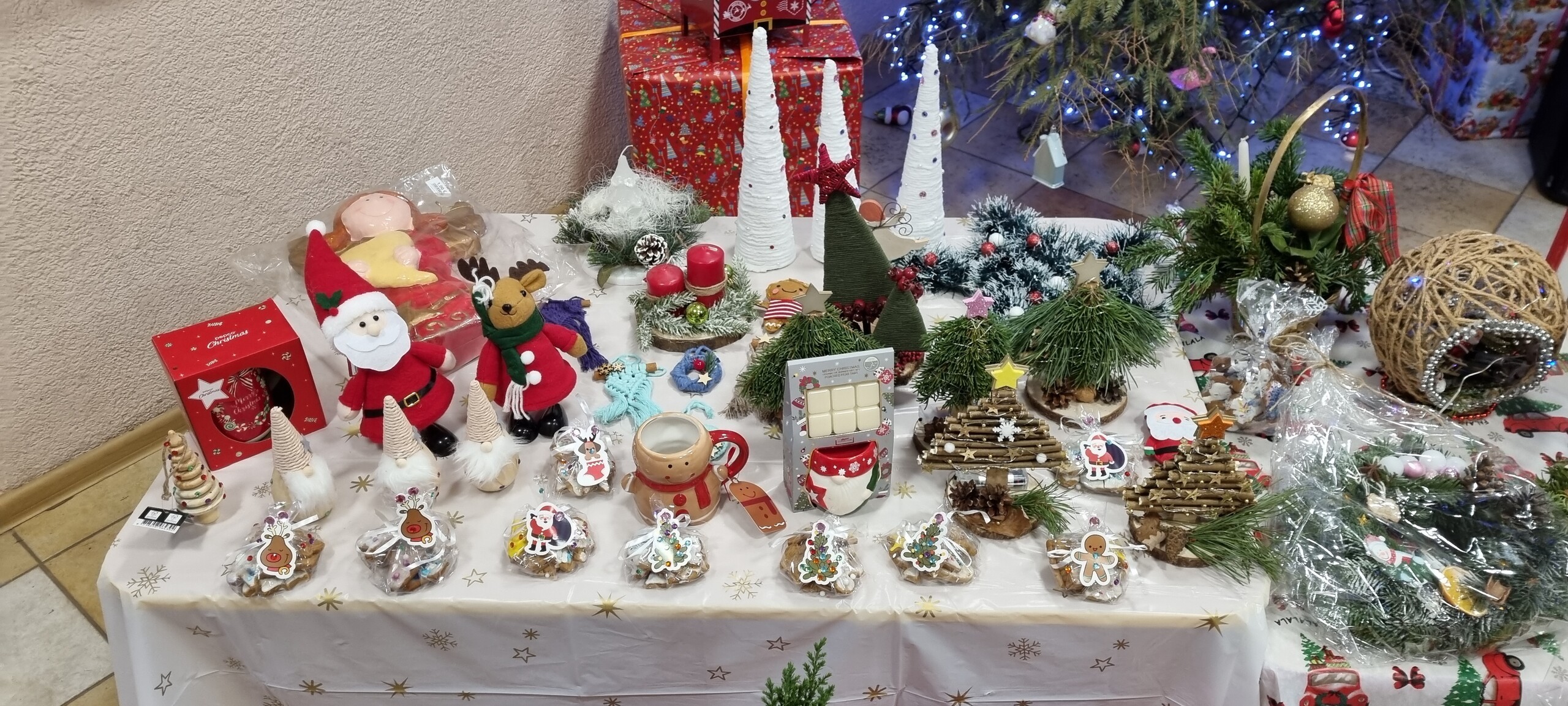 Na kilka dni przed Świętami Bożego Narodzenia w naszym przedszkolu odbył się kiermasz ozdób świątecznych. Na specjalnie przygotowanych stoiskach znalazły się wykonane przez przedszkolaków oraz ich bliskich bożonarodzeniowe dekoracje, choinki, stroiki, gwiazdeczki, aniołki, a także pyszne, domowe wypieki, lukrowane pierniczki i lemoniada. Kiermasz wzbudził wielkie zainteresowanie rodziców, jak i samych przedszkolaków. Ozdoby były bardzo pomysłowe i kolorowe. Dzięki hojności i zaangażowaniu rodziców udało nam się zebrać dosyć dużą kwotę pieniążków, które przeznaczymy na zabawki dla dzieci.