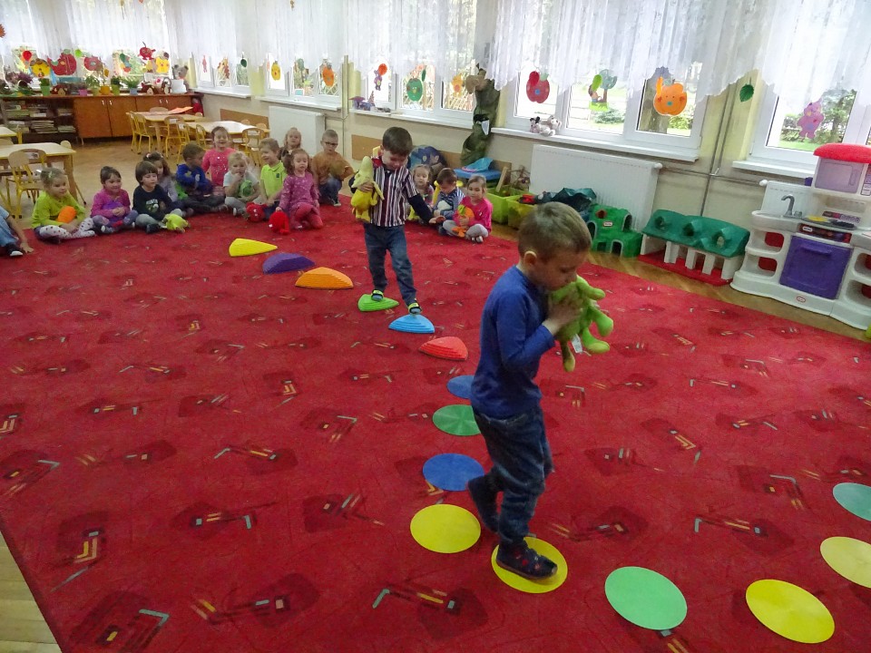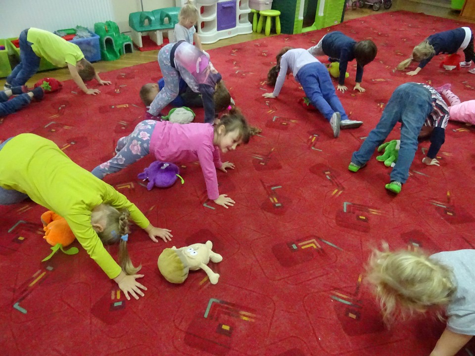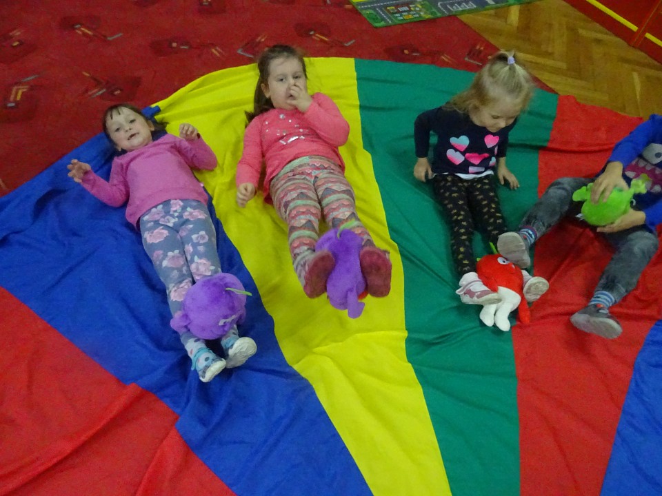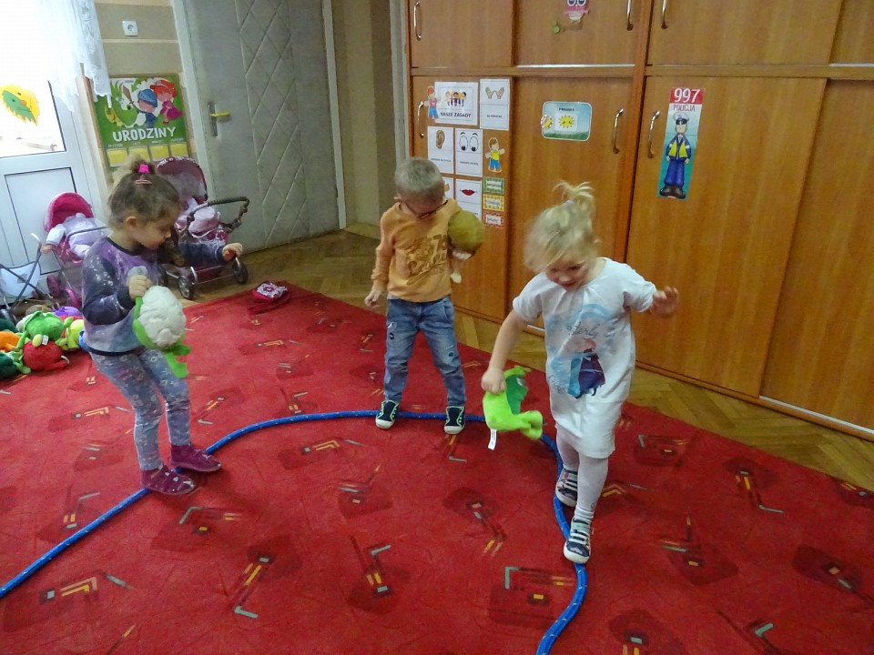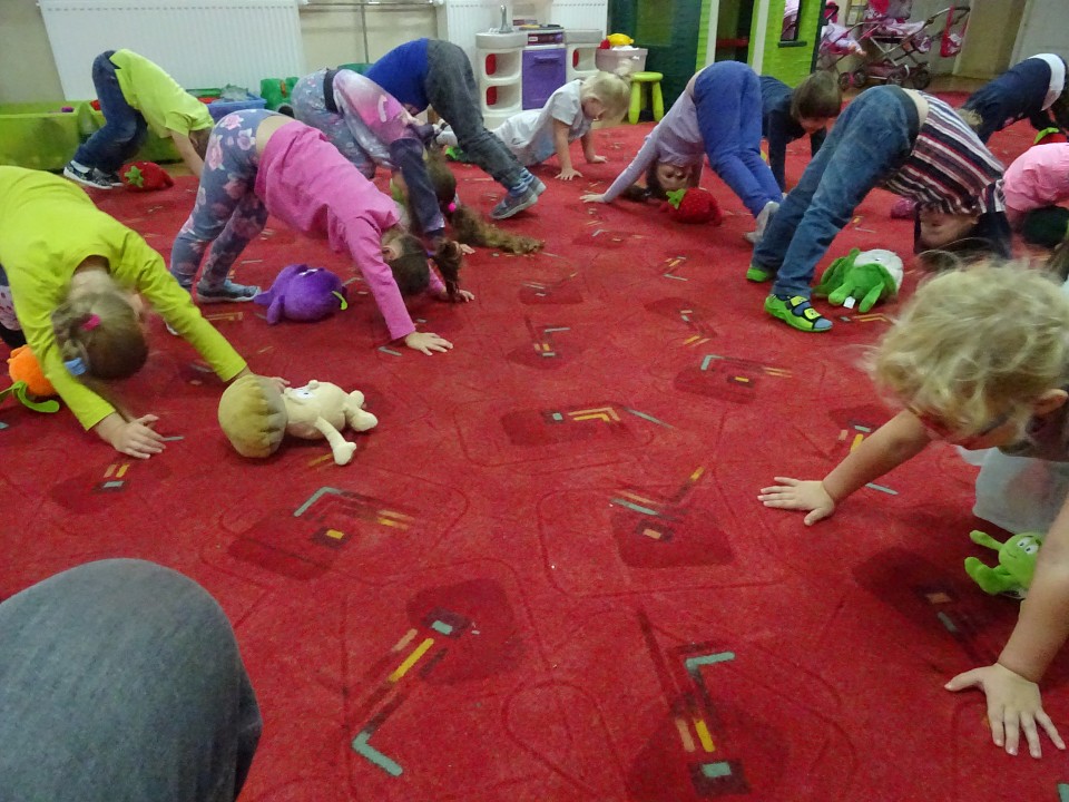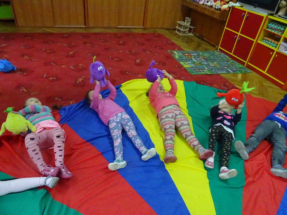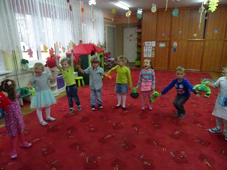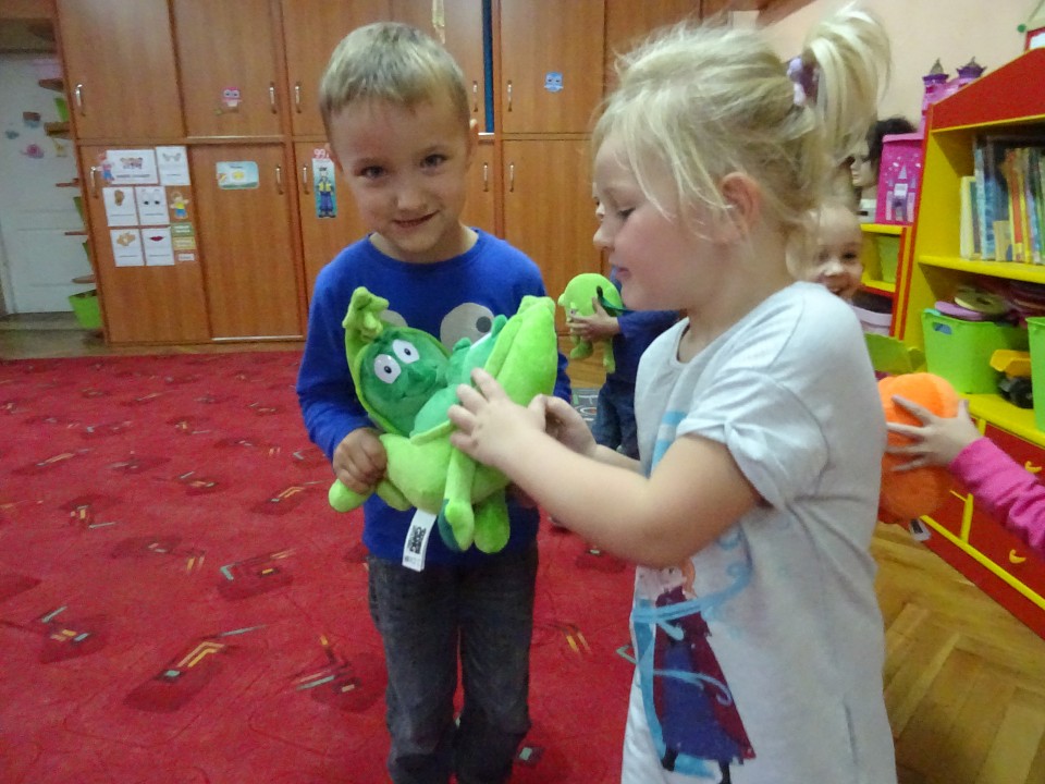 Wszyscy dobrze wiedzą, jak bogate w witaminy są owoce i warzywa. Dlatego MISIAKI chętnie przyniosły w czwartek 12 pażdziernika wszystkie swoje ulubione warzywno - owocowe pluszaki. Poprzez zabawy ze zgromadzonymi Świeżakami, bardziej uświadomiły sobie konieczność dbania o zdrowe odżywianie. Wspólnie z naszymi przyjaciółmi dzieci śpiewały, tańczyły, podskiwały radośnie z chustą Klanza, a także ćwiczyły. Było mnóstwo przytulania, radości i uśmiechu.