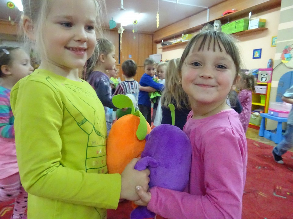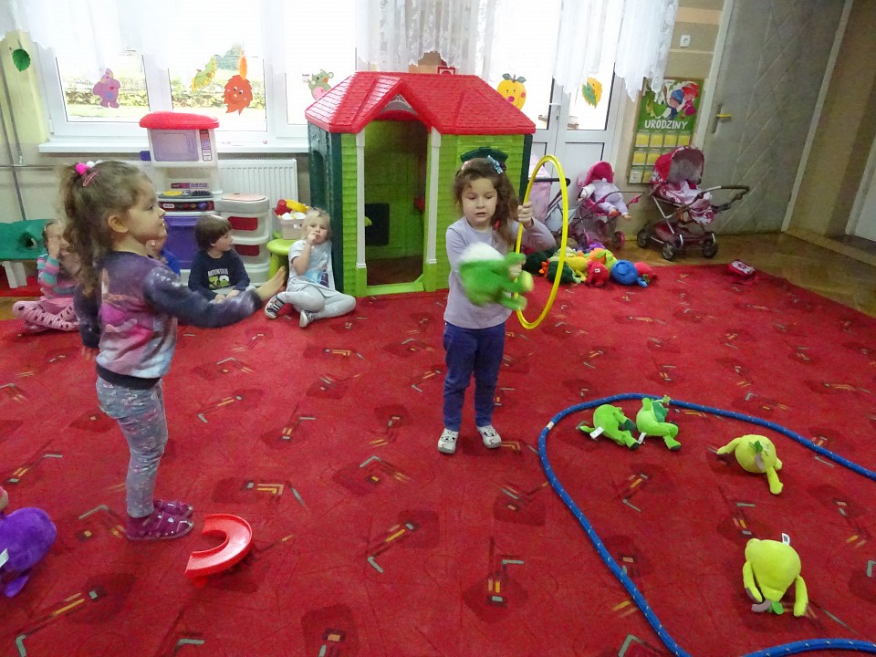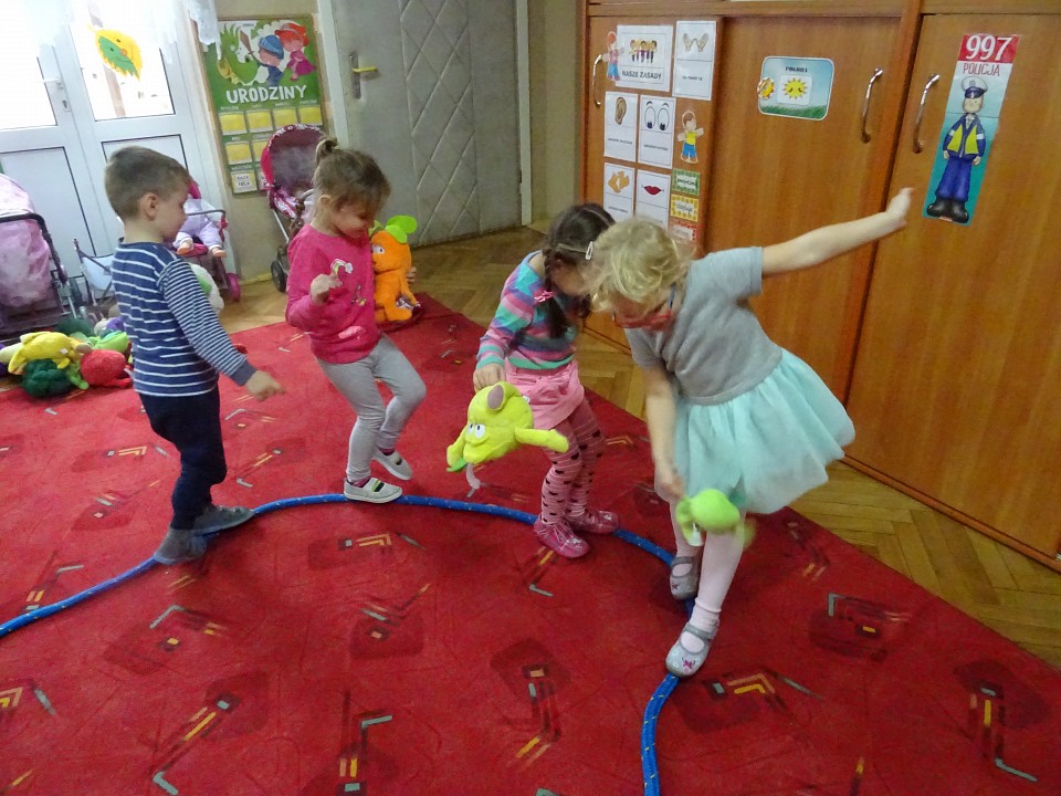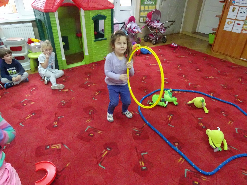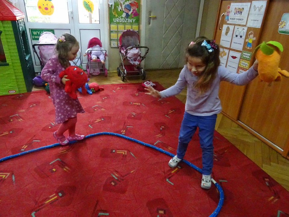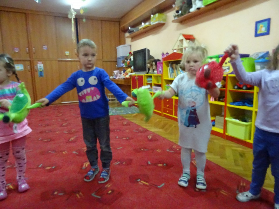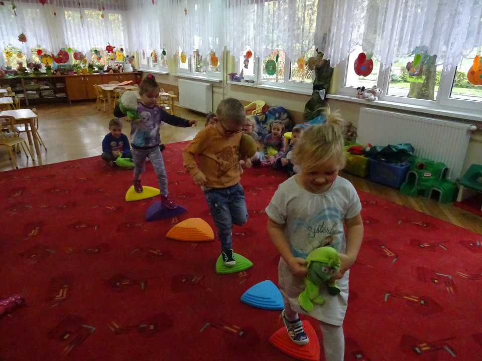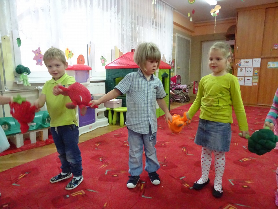 Wszyscy dobrze wiedzą, jak bogate w witaminy są owoce i warzywa. Dlatego MISIAKI chętnie przyniosły w czwartek 12 pażdziernika wszystkie swoje ulubione warzywno - owocowe pluszaki. Poprzez zabawy ze zgromadzonymi Świeżakami, bardziej uświadomiły sobie konieczność dbania o zdrowe odżywianie. Wspólnie z naszymi przyjaciółmi dzieci śpiewały, tańczyły, podskiwały radośnie z chustą Klanza, a także ćwiczyły. Było mnóstwo przytulania, radości i uśmiechu.