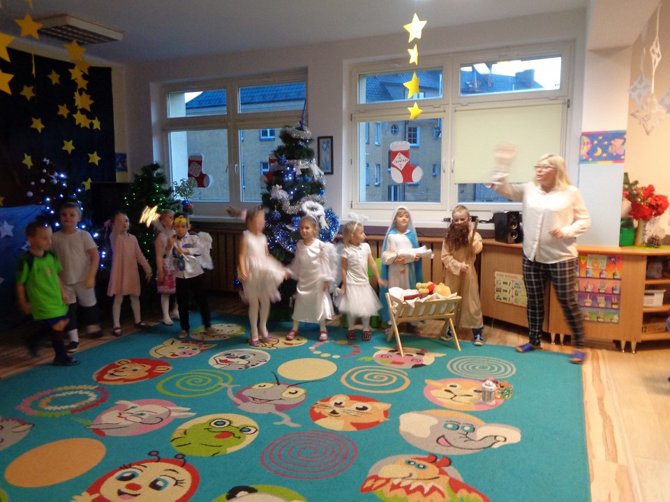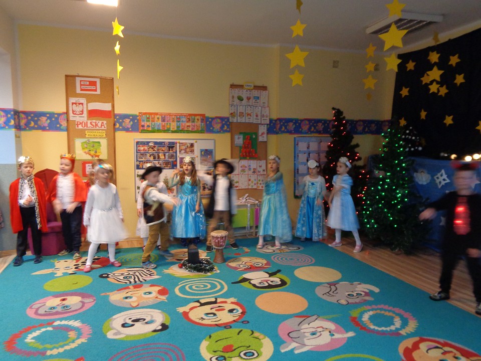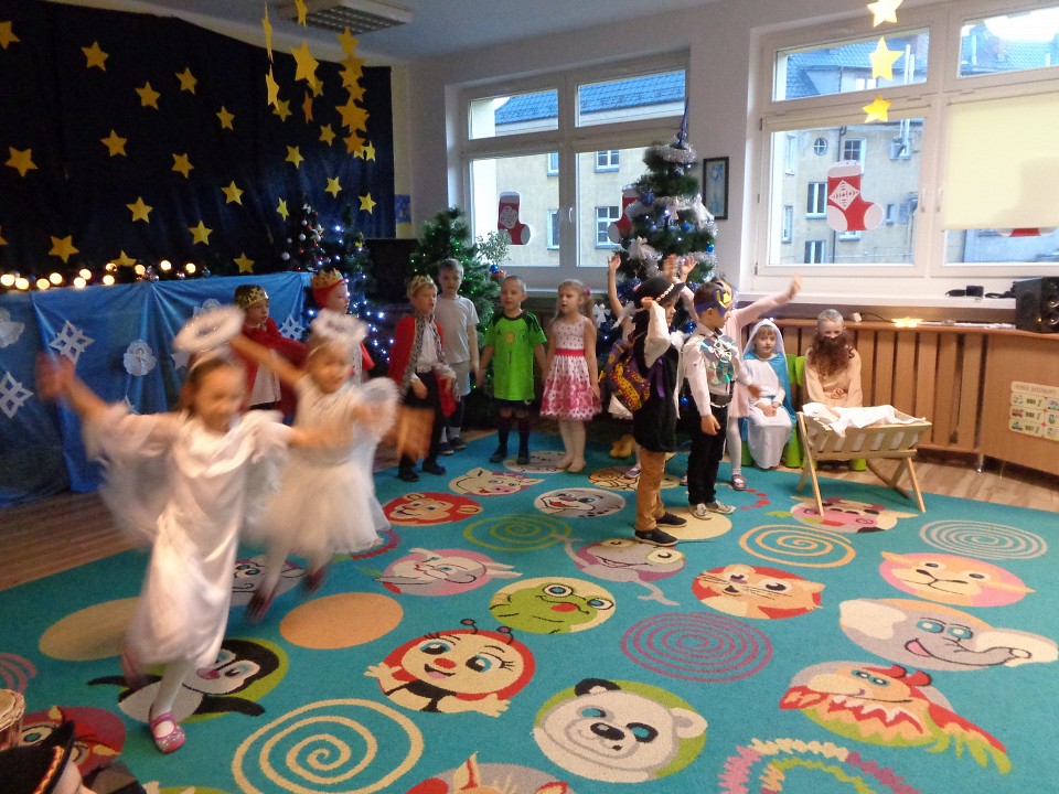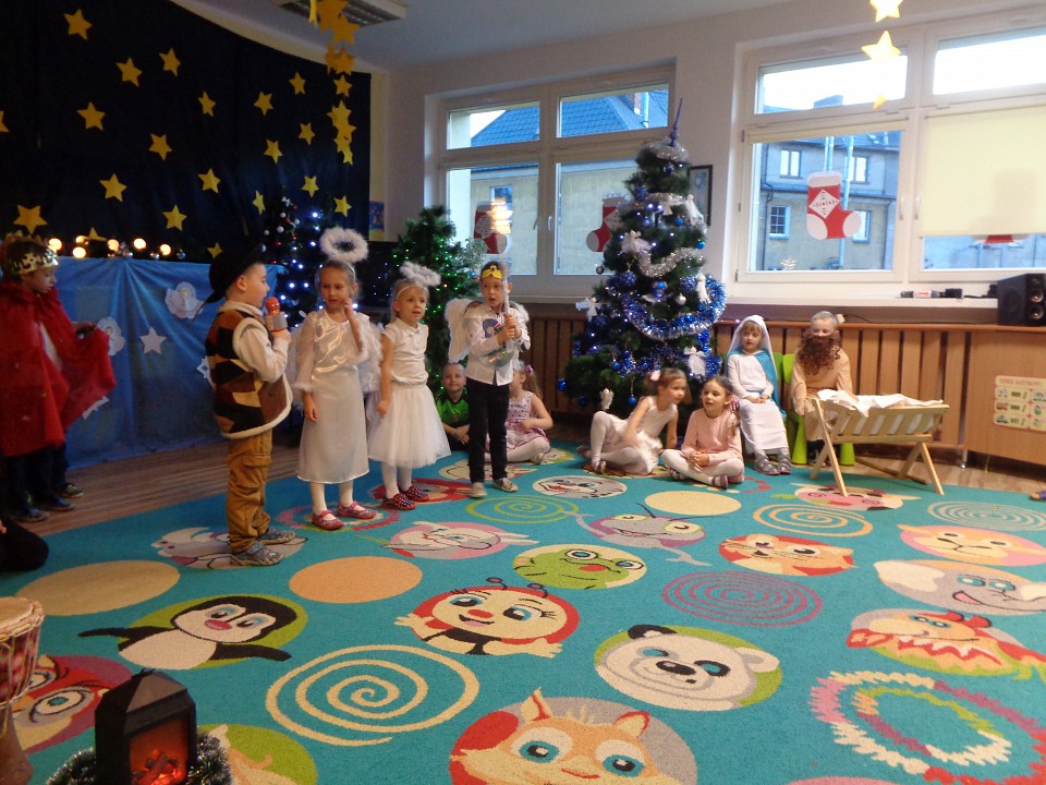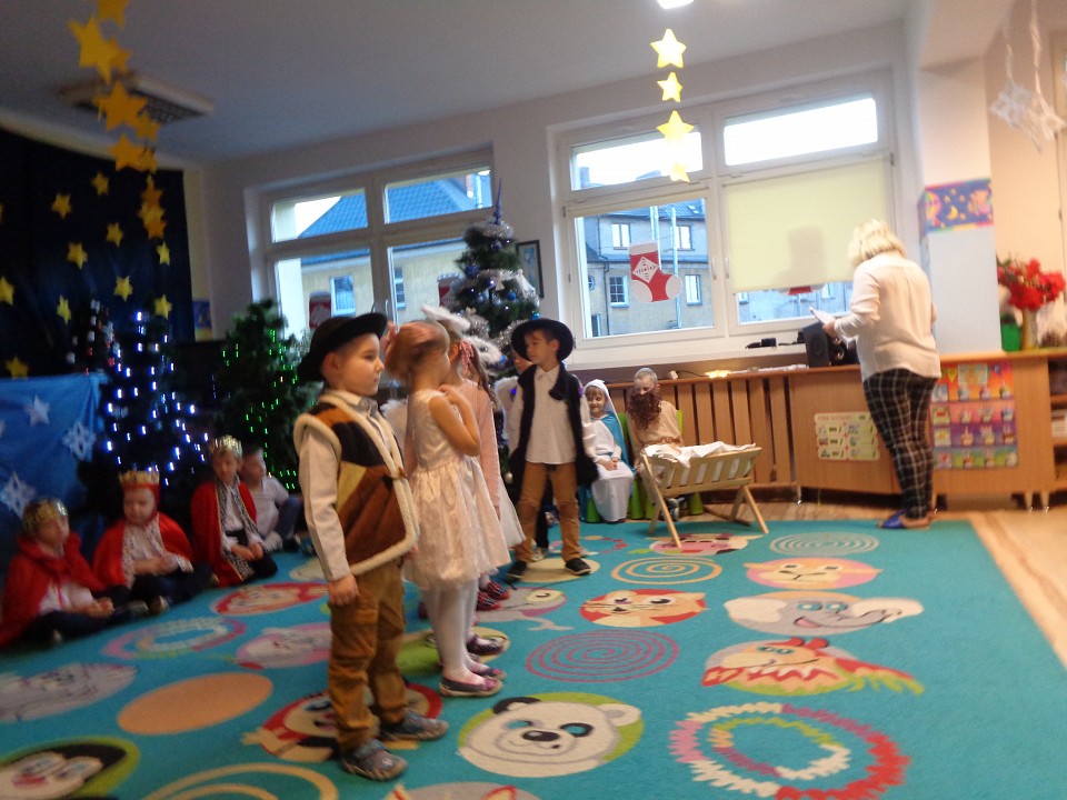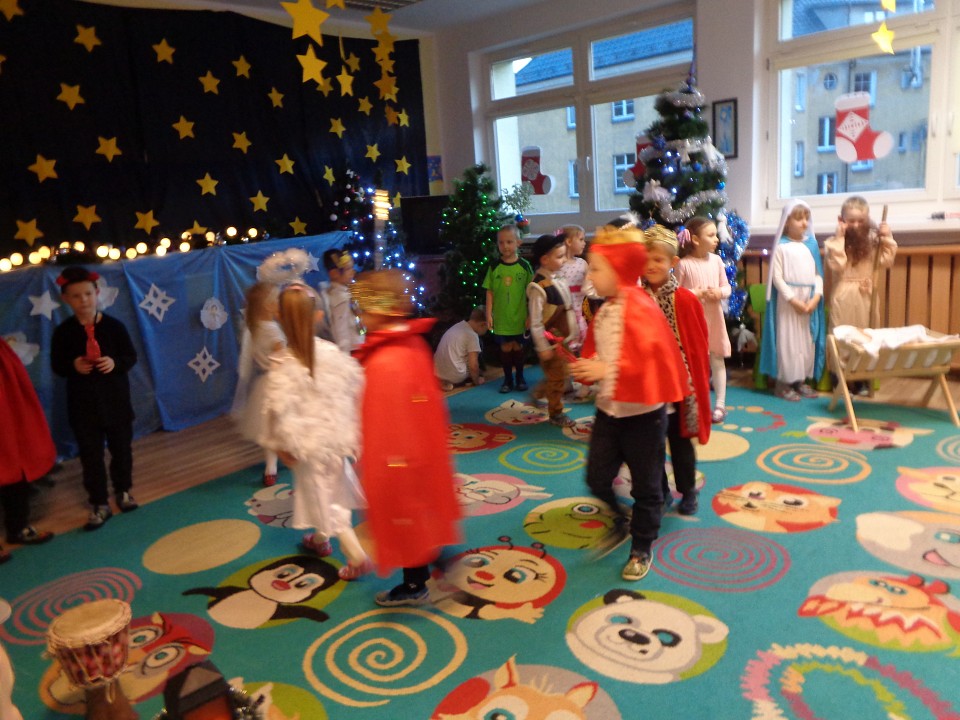 W grupie starszaków odbyły się Jasełka. Historię Bożego Narodzenia dzieci z grupy ŻABEK przedstawiły specjalnie jako prezent dla swoich rodziców. Inscenizacja Jasełek przeplatana była kolędami i piosenkami świątecznymi wkomponowanymi w całość przedstawienia. Dzięki zaangażowaniu i pomocy rodziców, dzieci wystąpiły w ciekawych strojach przygotowanych odpowiednio do odgrywanej roli. Nasi aktorzy tego dnia otrzymali wiele pochwał i braw.