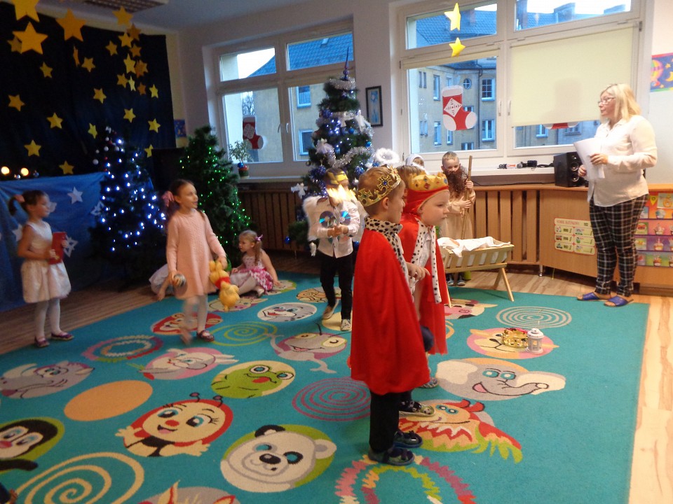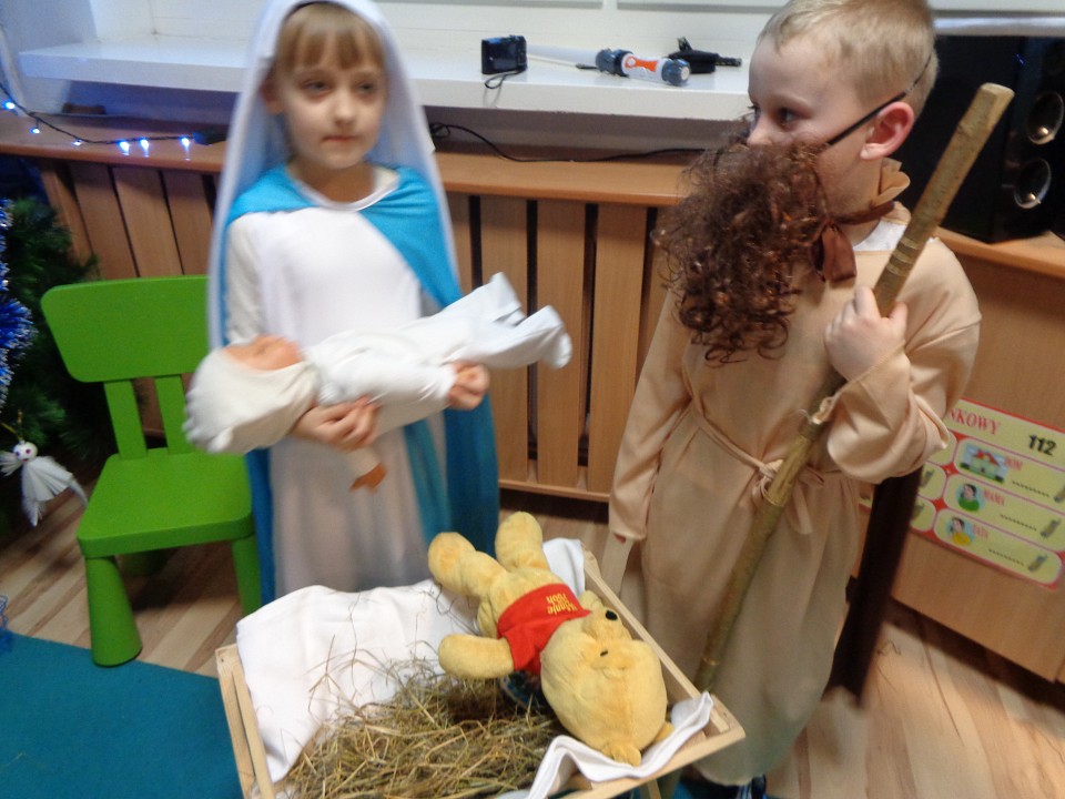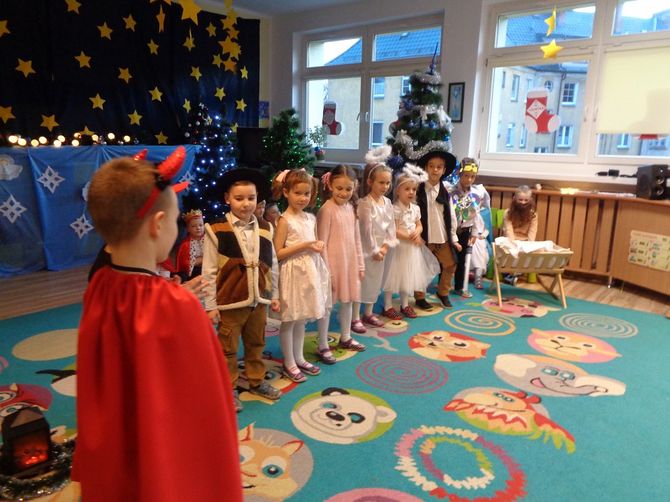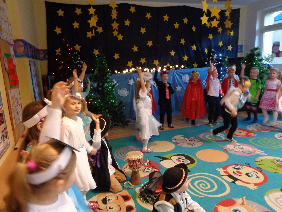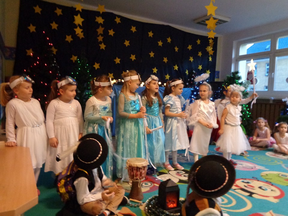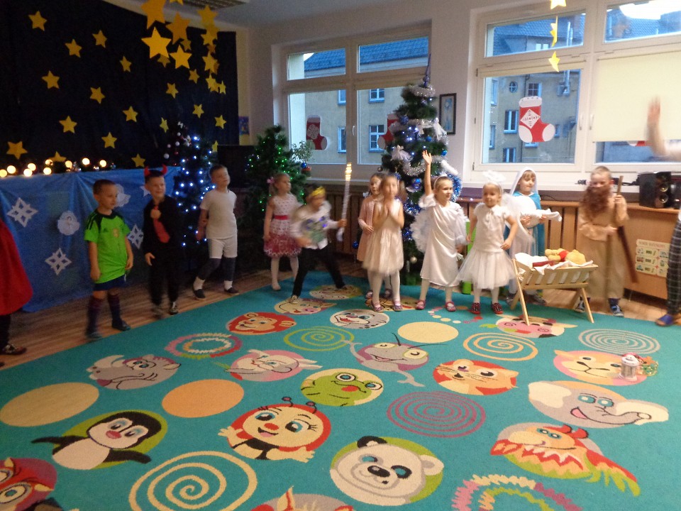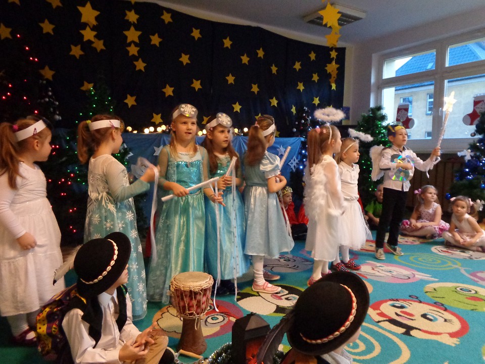 W grupie starszaków odbyły się Jasełka. Historię Bożego Narodzenia dzieci z grupy ŻABEK przedstawiły specjalnie jako prezent dla swoich rodziców. Inscenizacja Jasełek przeplatana była kolędami i piosenkami świątecznymi wkomponowanymi w całość przedstawienia. Dzięki zaangażowaniu i pomocy rodziców, dzieci wystąpiły w ciekawych strojach przygotowanych odpowiednio do odgrywanej roli. Nasi aktorzy tego dnia otrzymali wiele pochwał i braw.