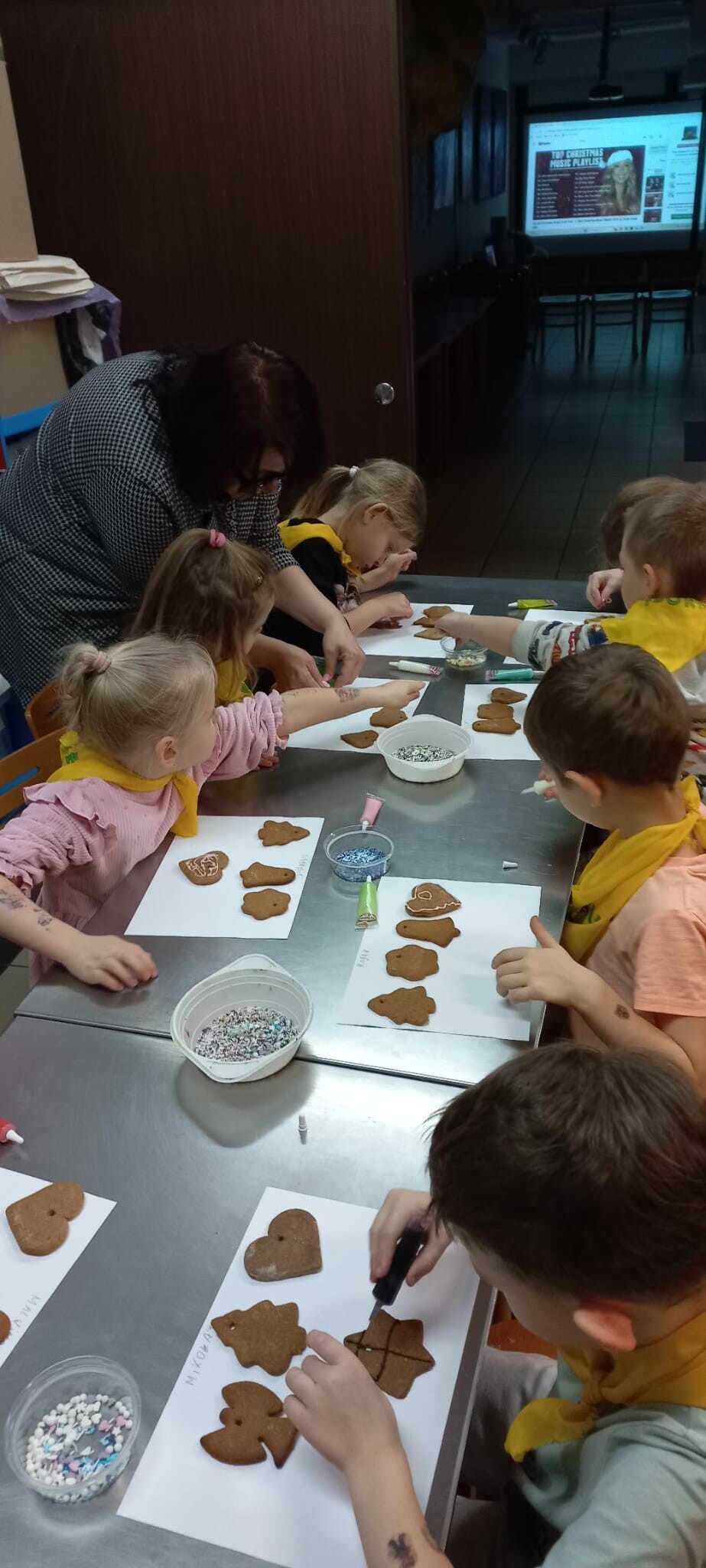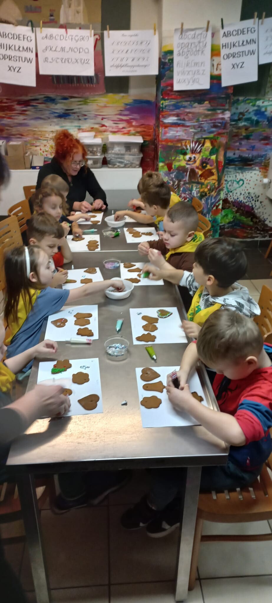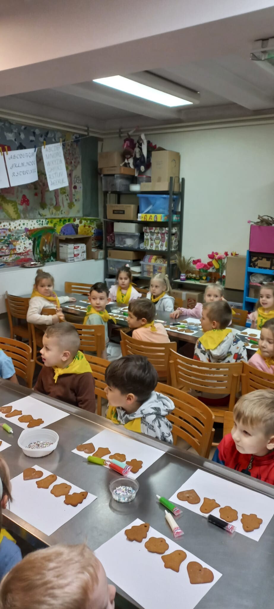W dniu 10 grudnia 2025 r. dzieci z grupy „KRASNOLUDKI” uczestniczyły w warsztatach zdobienia pierników bożonarodzeniowych. Zajęcia odbyły się w Muzeum w Lęborku i stanowiły atrakcyjną formę wprowadzenia w świąteczny nastrój. Podczas warsztatów dzieci poznały tradycje związane z wypiekiem pierników oraz samodzielnie dekorowały słodkie wypieki, rozwijając kreatywność i zdolności manualne. Spotkanie przebiegło w miłej, świątecznej atmosferze i dostarczyło dzieciom wielu pozytywnych wrażeń.