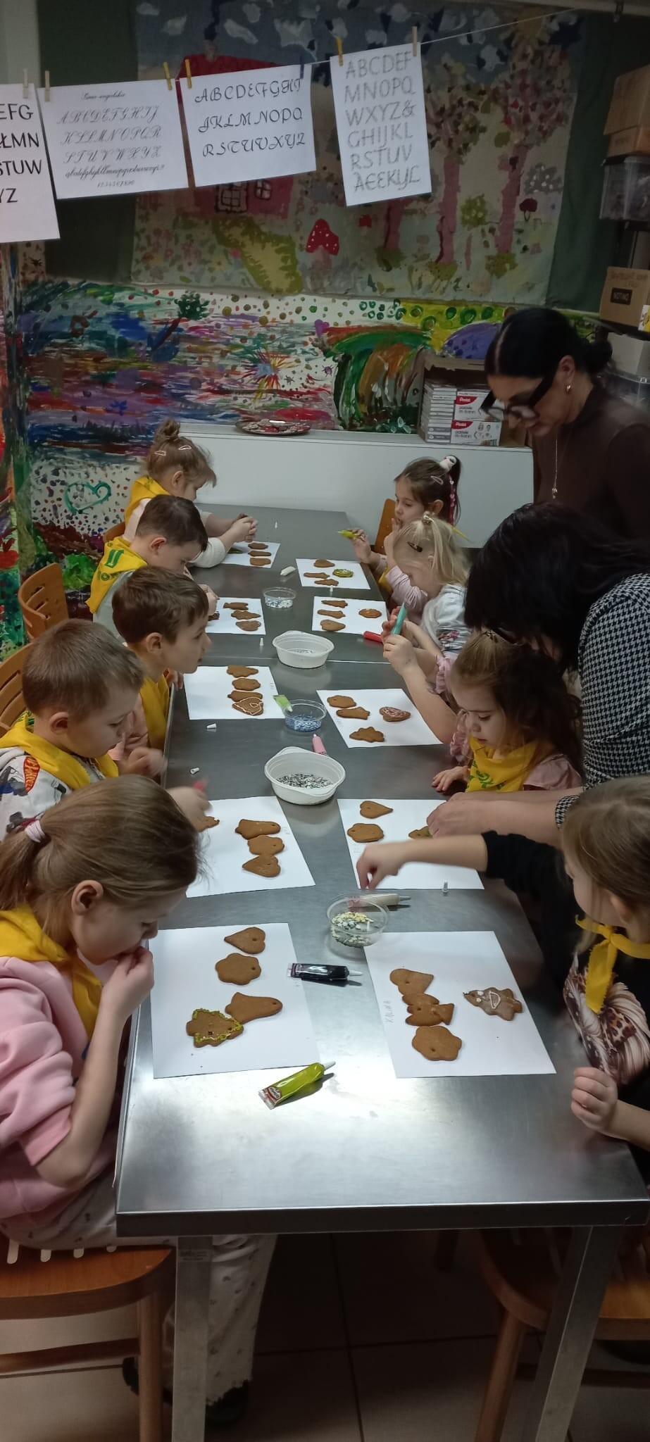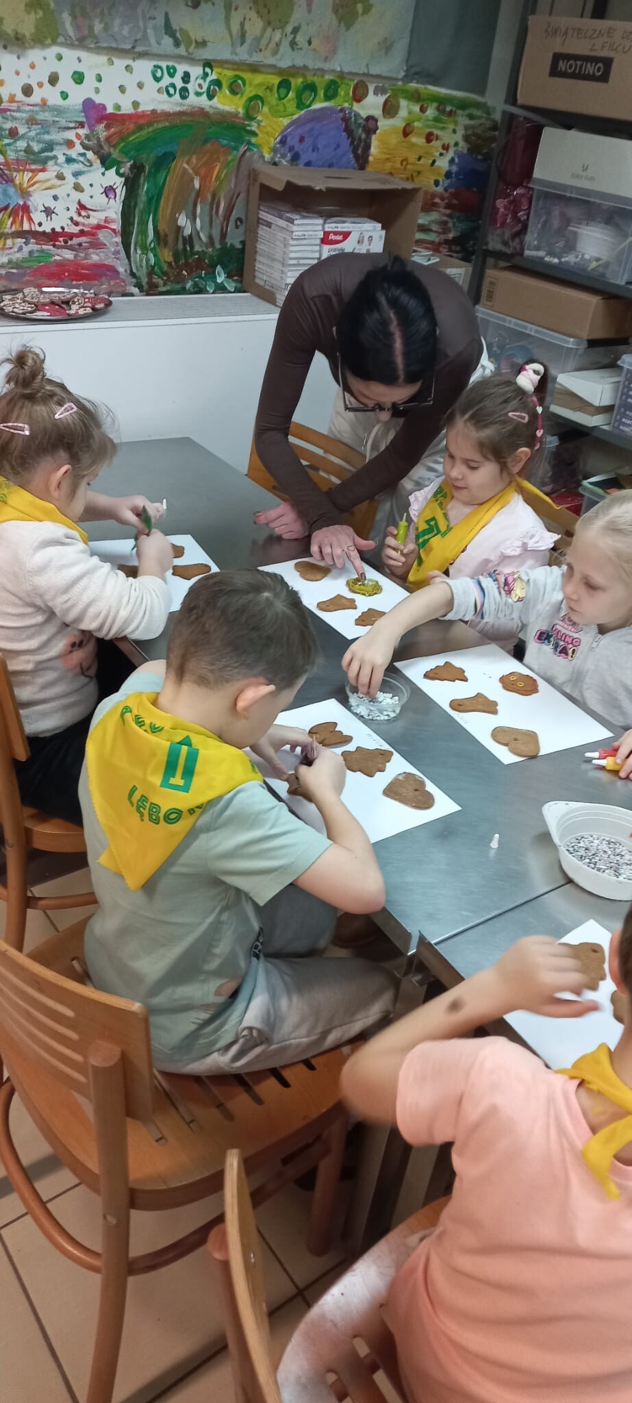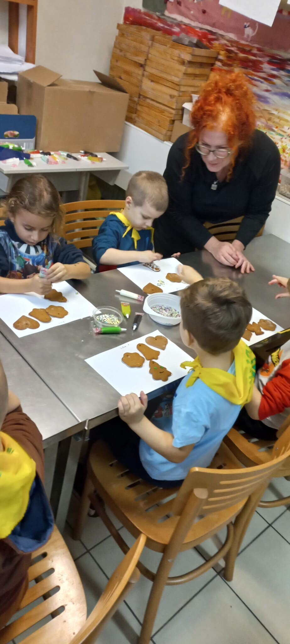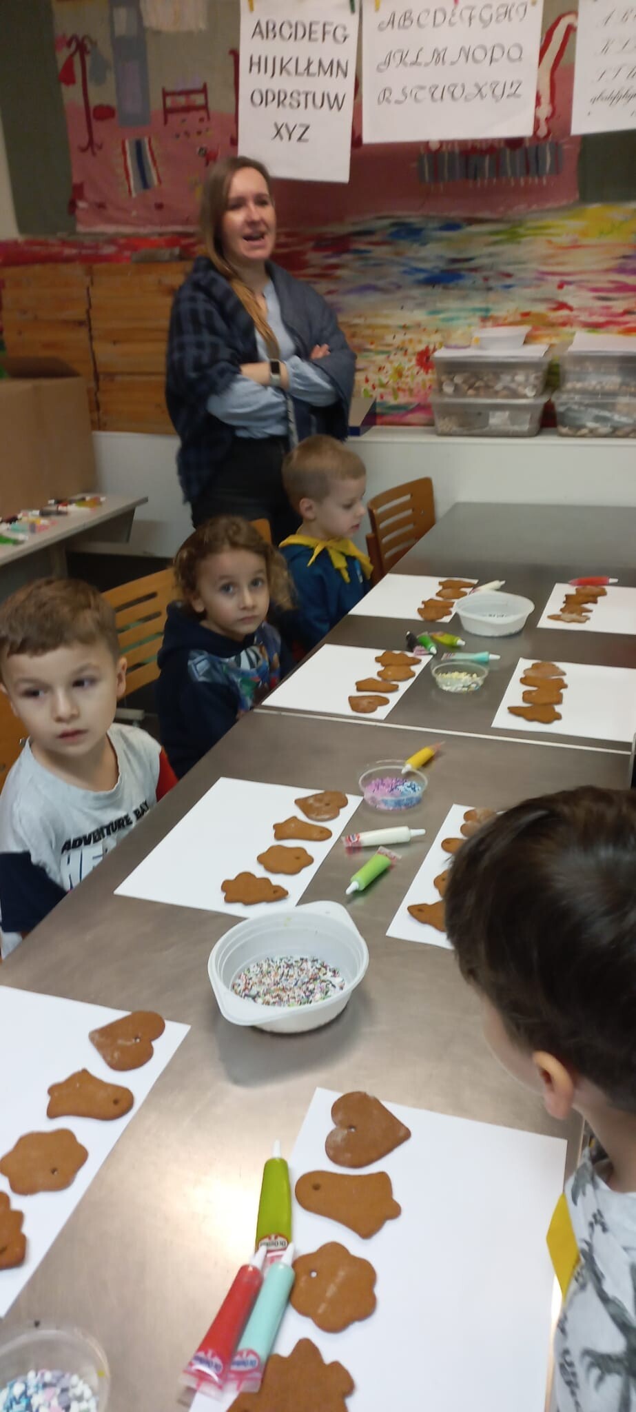 W dniu 10 grudnia 2025 r. dzieci z grupy „KRASNOLUDKI” uczestniczyły w warsztatach zdobienia pierników bożonarodzeniowych. Zajęcia odbyły się w Muzeum w Lęborku i stanowiły atrakcyjną formę wprowadzenia w świąteczny nastrój. Podczas warsztatów dzieci poznały tradycje związane z wypiekiem pierników oraz samodzielnie dekorowały słodkie wypieki, rozwijając kreatywność i zdolności manualne. Spotkanie przebiegło w miłej, świątecznej atmosferze i dostarczyło dzieciom wielu pozytywnych wrażeń.