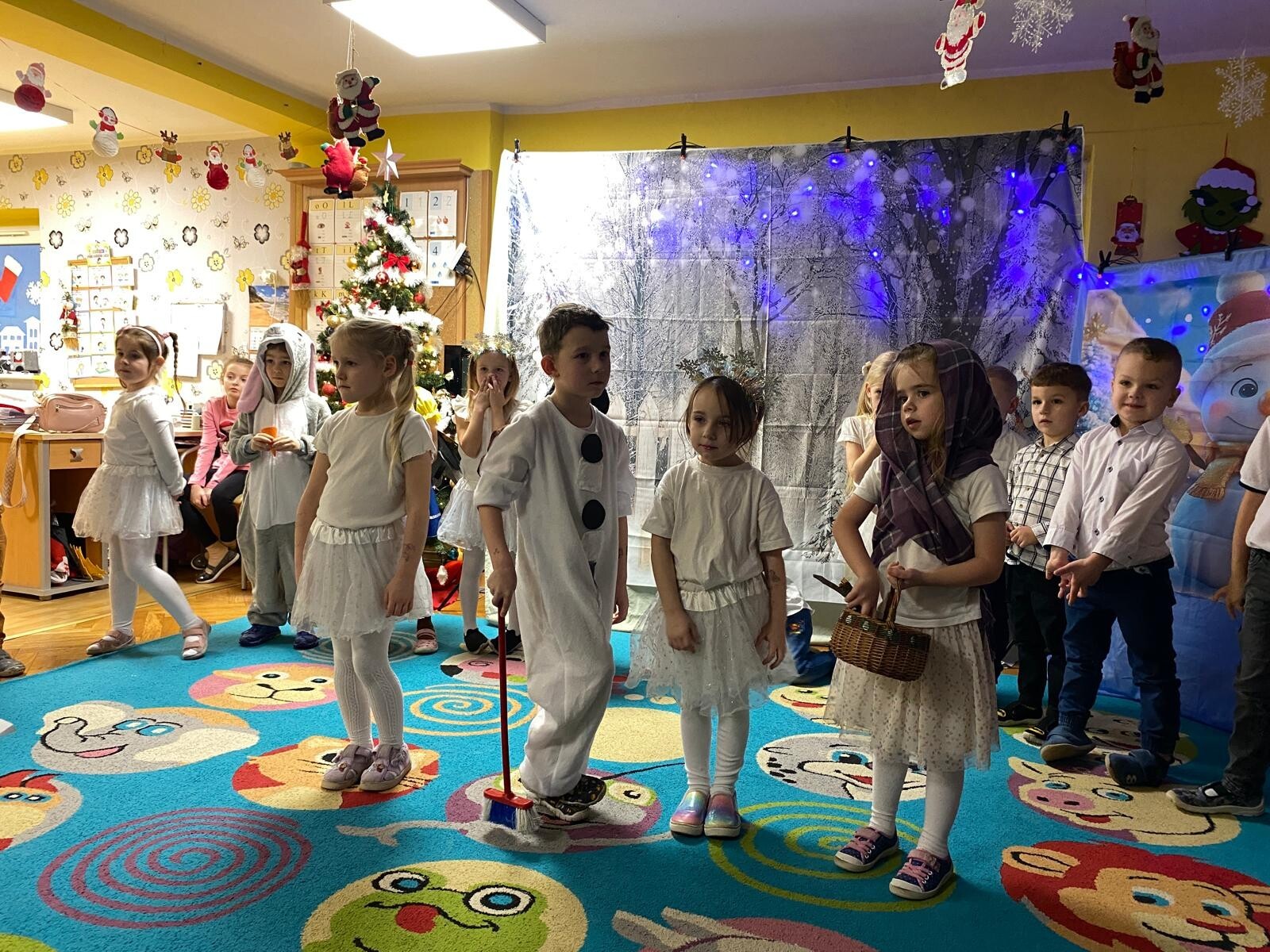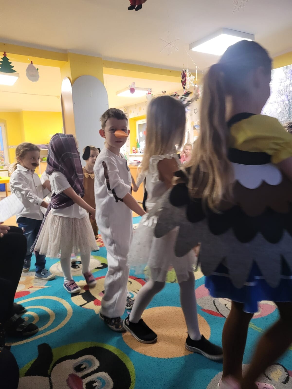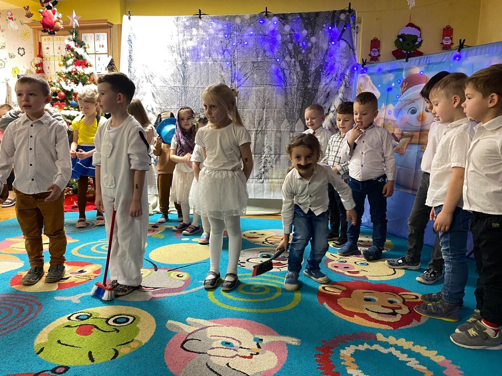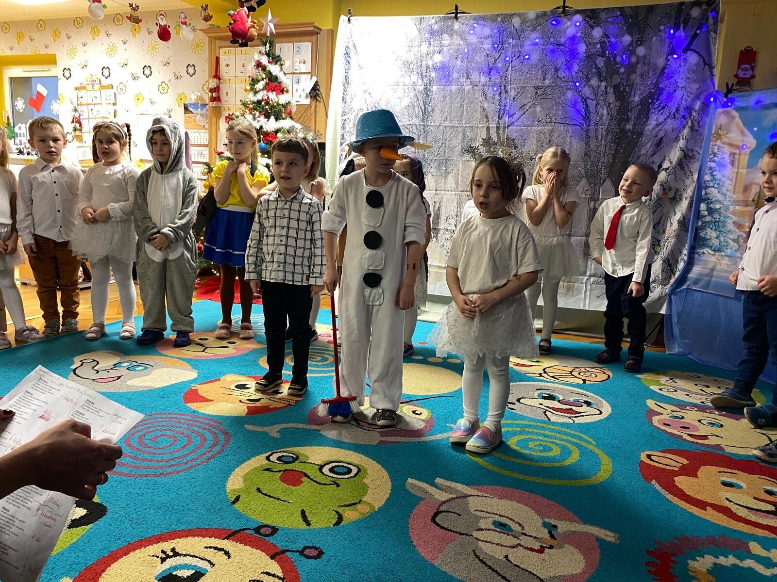 Dnia 12 grudnia w grupie „Krasnoludki” odbyły się warsztaty świąteczne z udziałem rodziców. Spotkanie rozpoczęło się częścią artystyczną, podczas której dzieci zaprezentowały przedstawienie pt. „O bałwanku, co miał złote serce”, a także wykonały świąteczne piosenki i tańce.