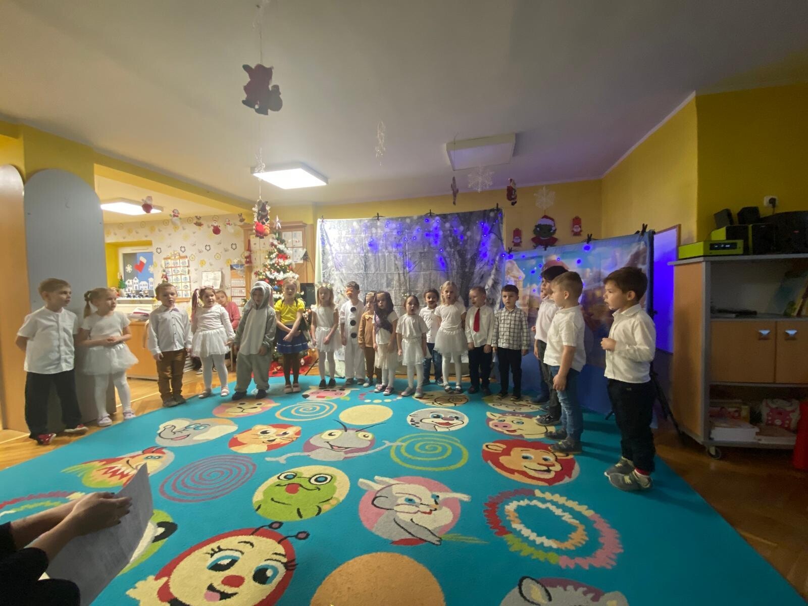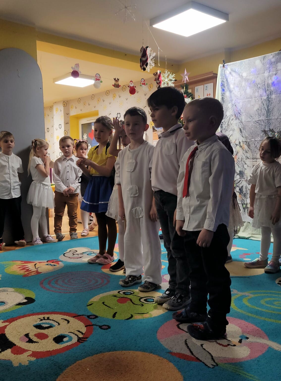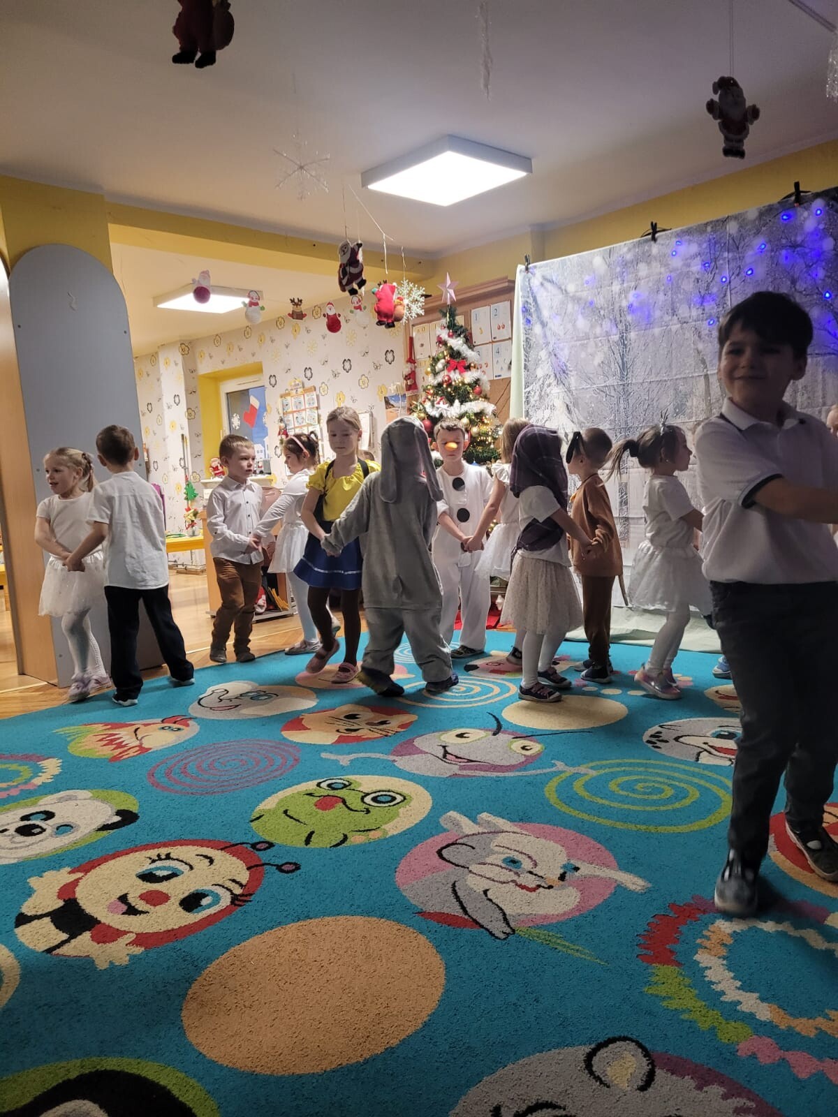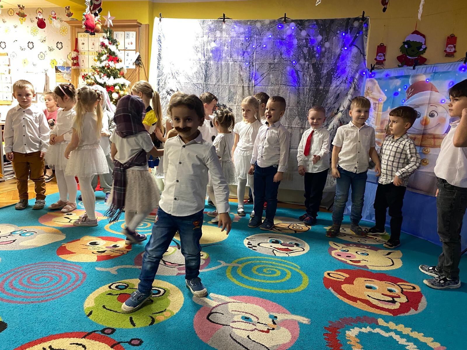 Dnia 12 grudnia w grupie „Krasnoludki” odbyły się warsztaty świąteczne z udziałem rodziców. Spotkanie rozpoczęło się częścią artystyczną, podczas której dzieci zaprezentowały przedstawienie pt. „O bałwanku, co miał złote serce”, a także wykonały świąteczne piosenki i tańce.