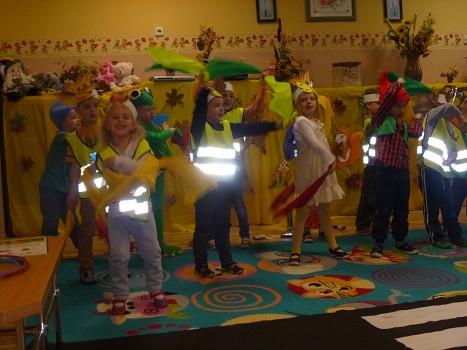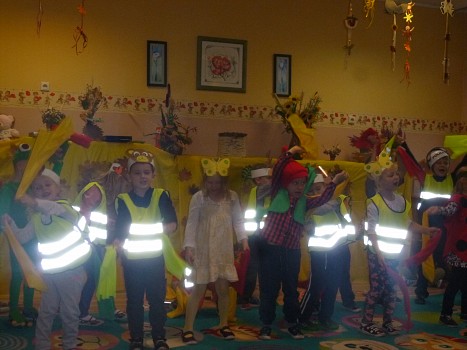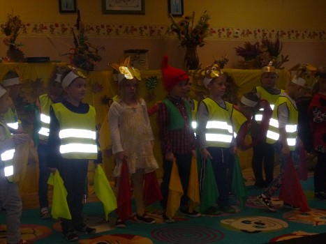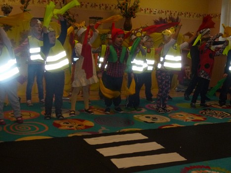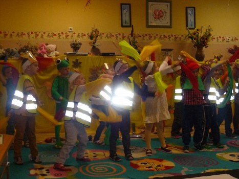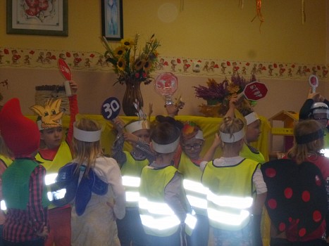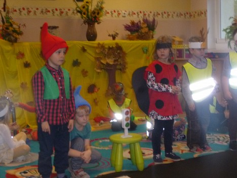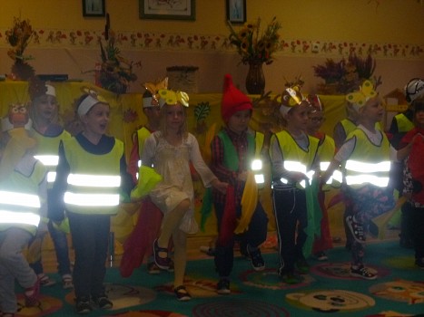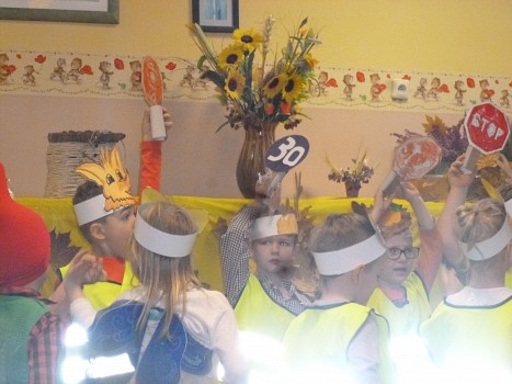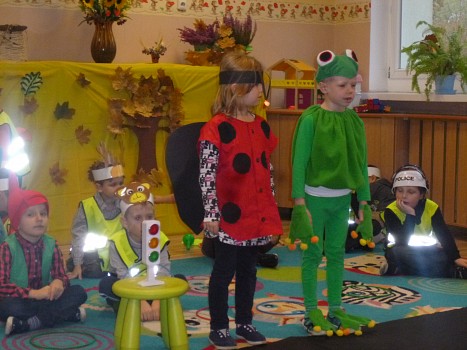 W środę 26 października ŻABKI przedstawiły inscenizację pt.,, LEŚNE BEZPIECZEŃSTWO ''. Było to podsumowanie treści, które dzieci wcześniej zdobyły z wychowania komunikacyjnego. Starszaki śpiewały piosenki, recytowały wiersze oraz pięknie tańczyły.
