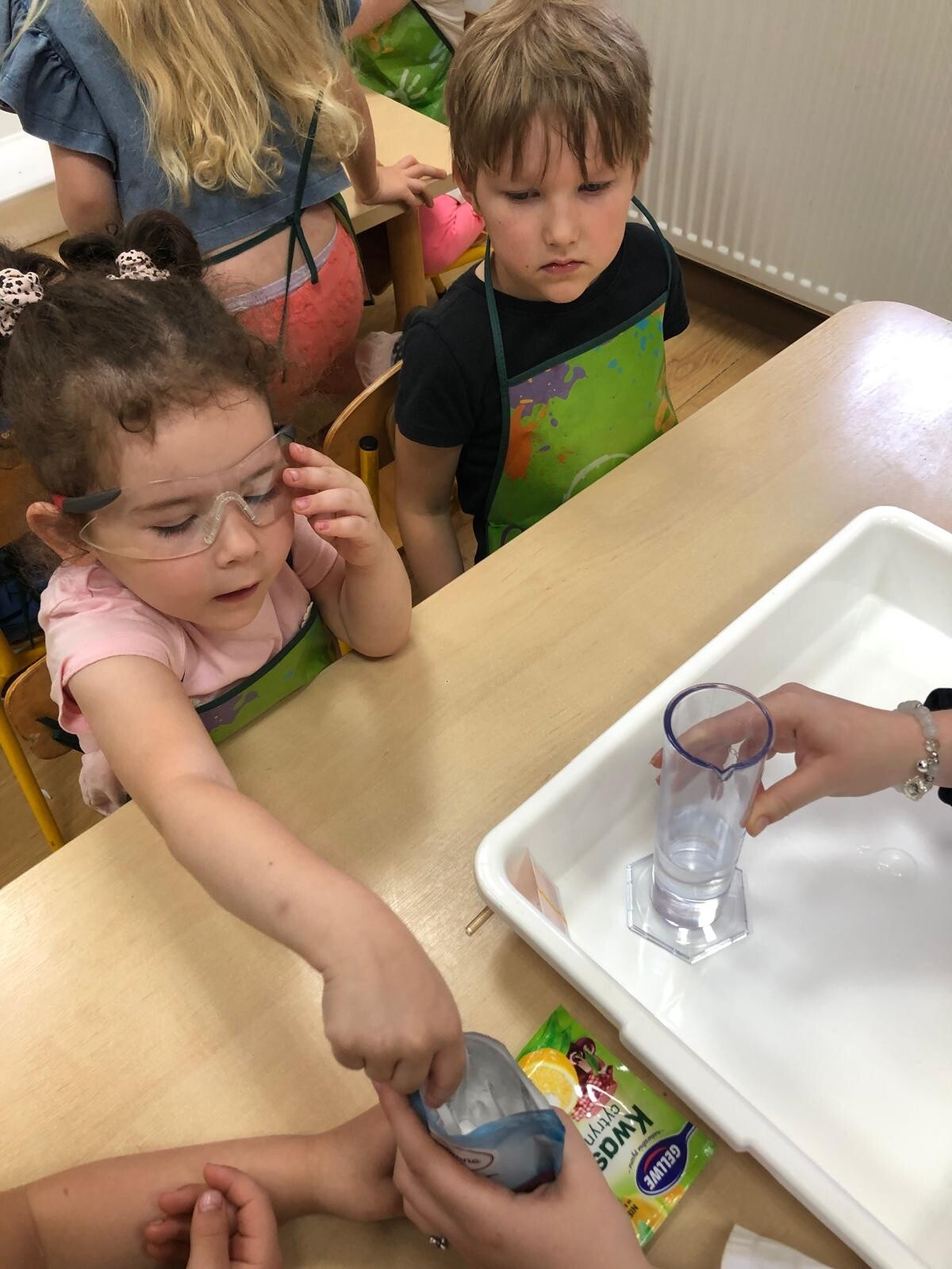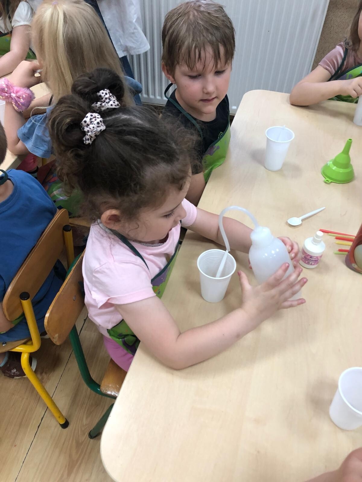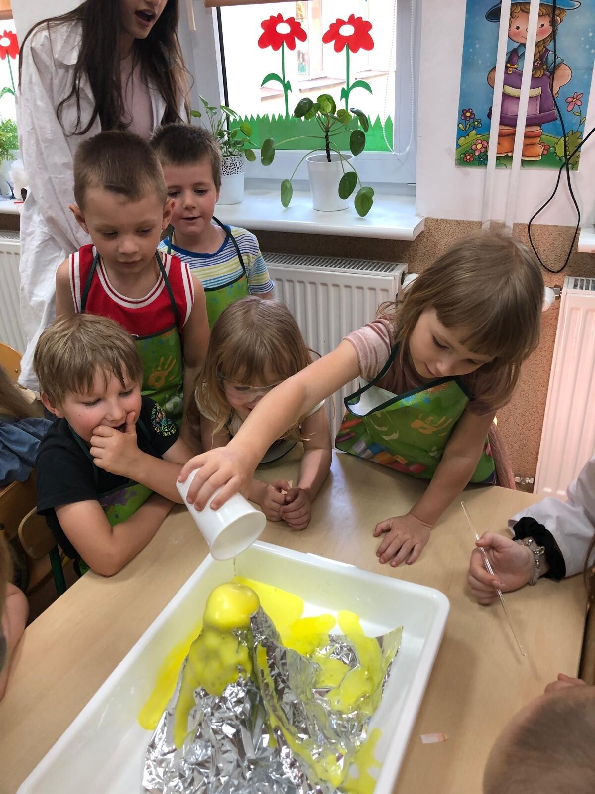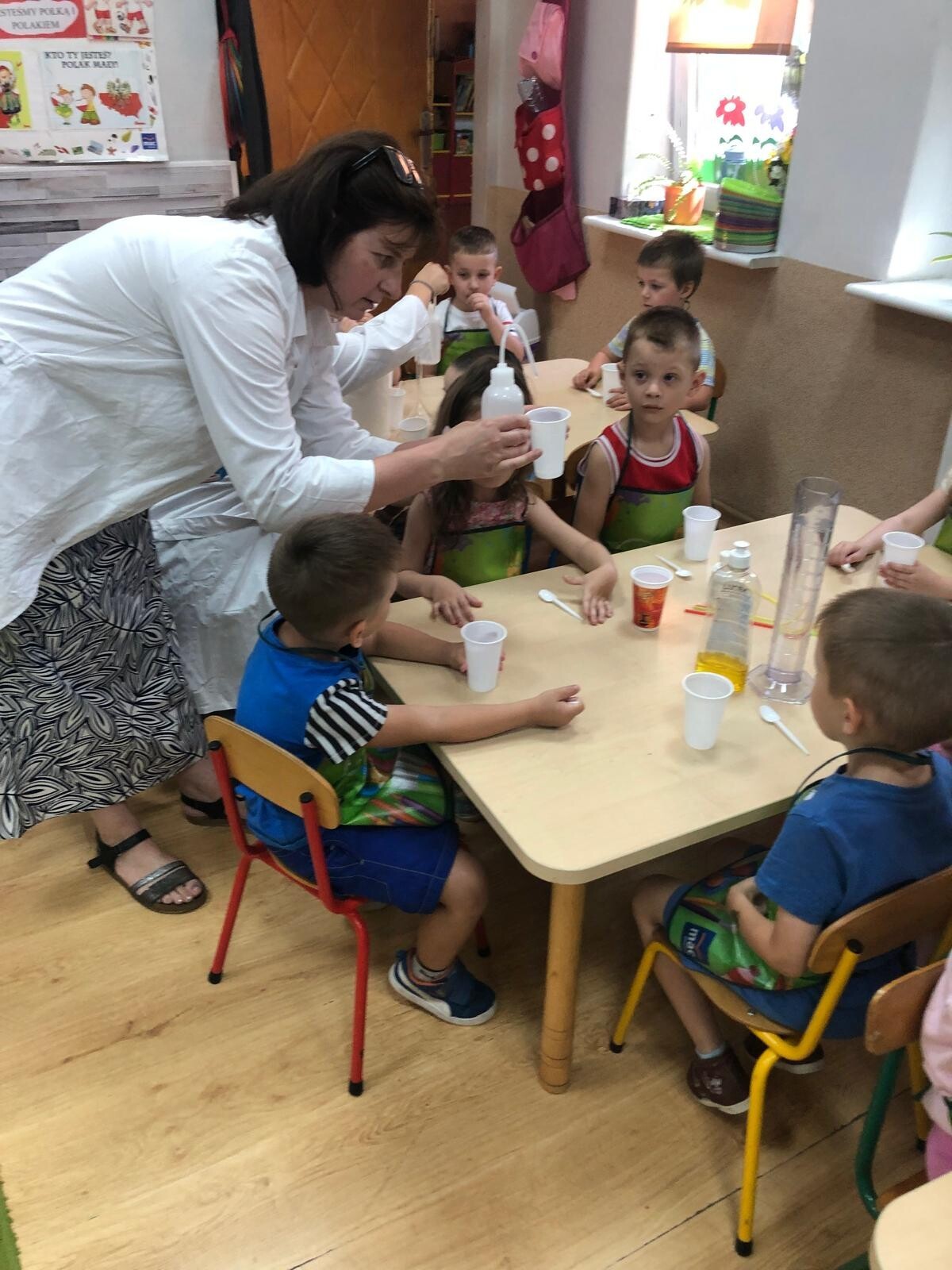 Dzieci z grupy Motylków i Kotków uczestniczyły w zabawach badawczych zorganizowanych przez mamę Adasia i Piotrusia Panią Agnieszkę oraz uczennice ze Szkoły nr8 w Lęborku. Dzieci mogły poczuć się prawdziwymi odkrywcami podczas zabaw badawczych. Mieszały mikstury, z zainteresowaniem obserwowały, zadawały pytania. Mali badacze byli niezwykle zainteresowani wszystkimi działaniami, była to dla nich ciekawa zabawa i przygoda. Wykonane eksperymenty z pewnością były okazją do pogłębienia wiedzy o fascynującym świecie.
