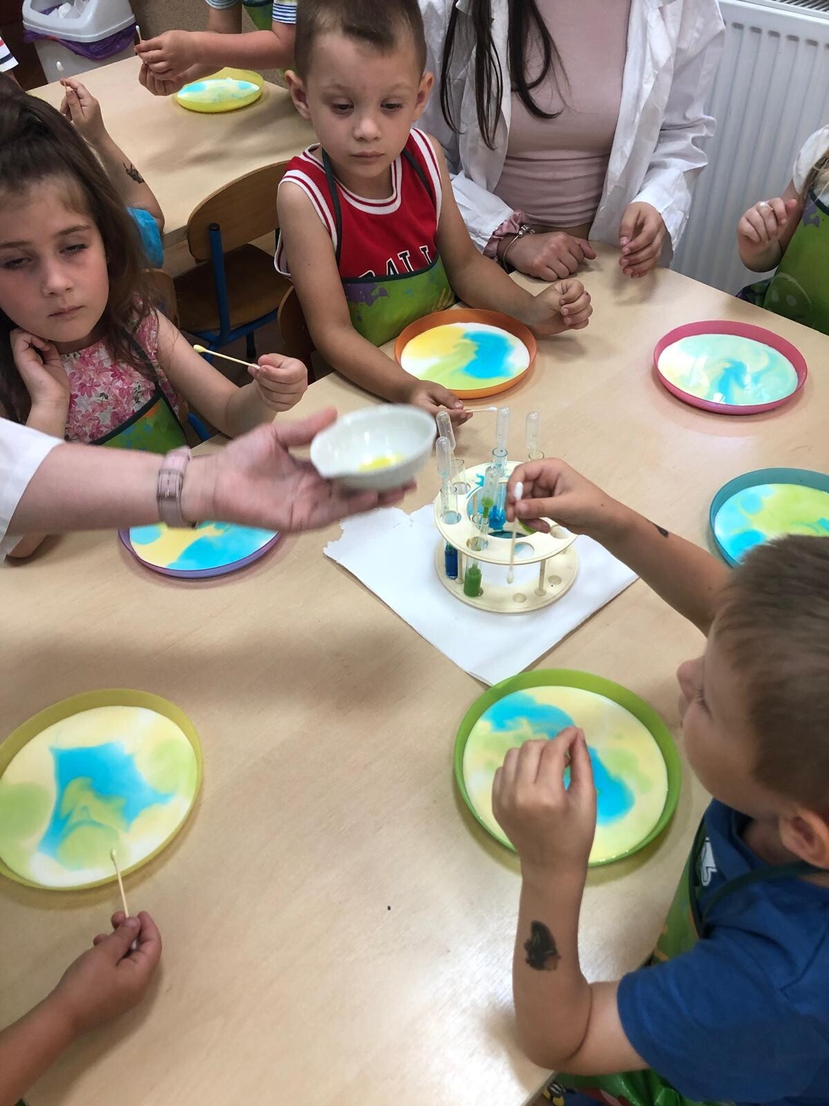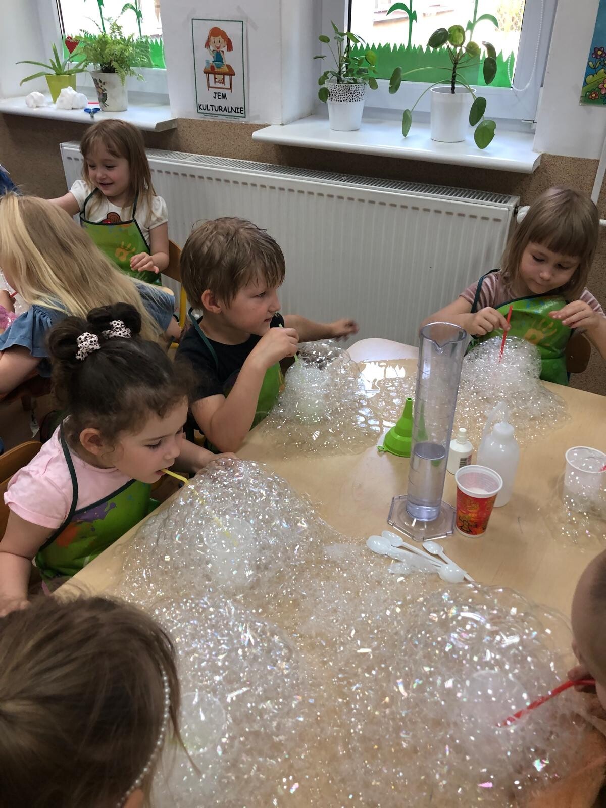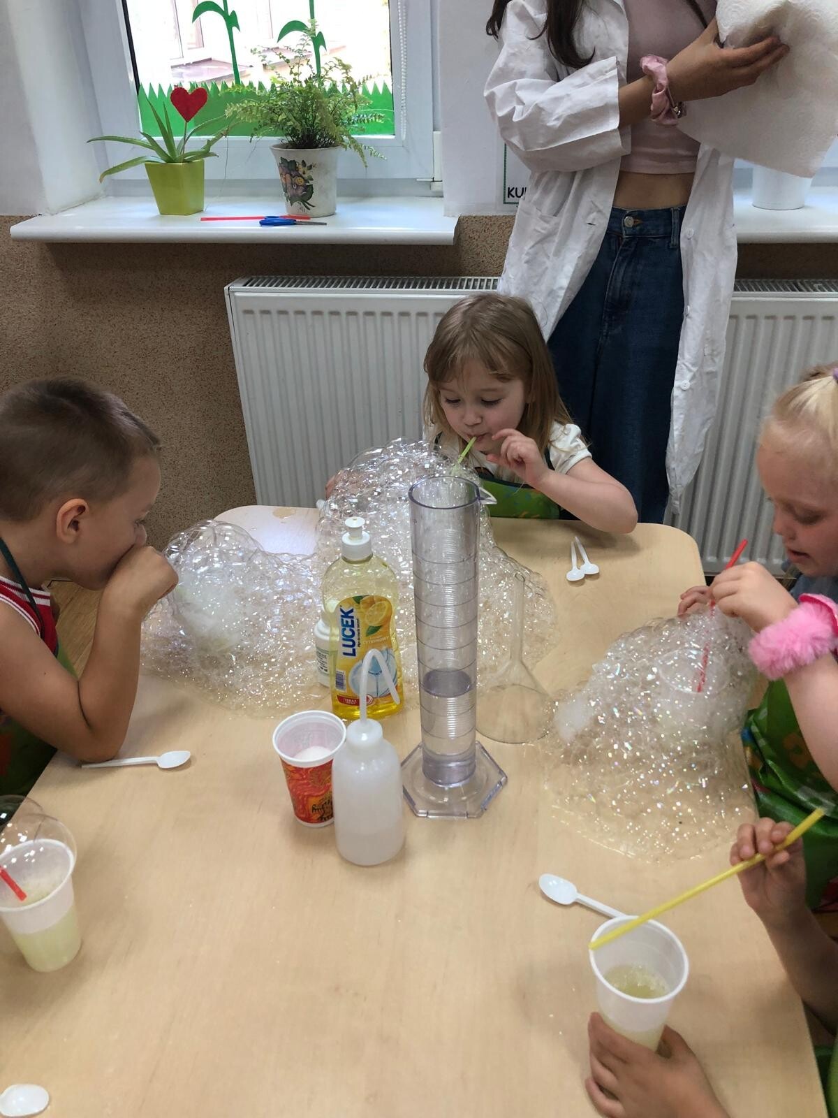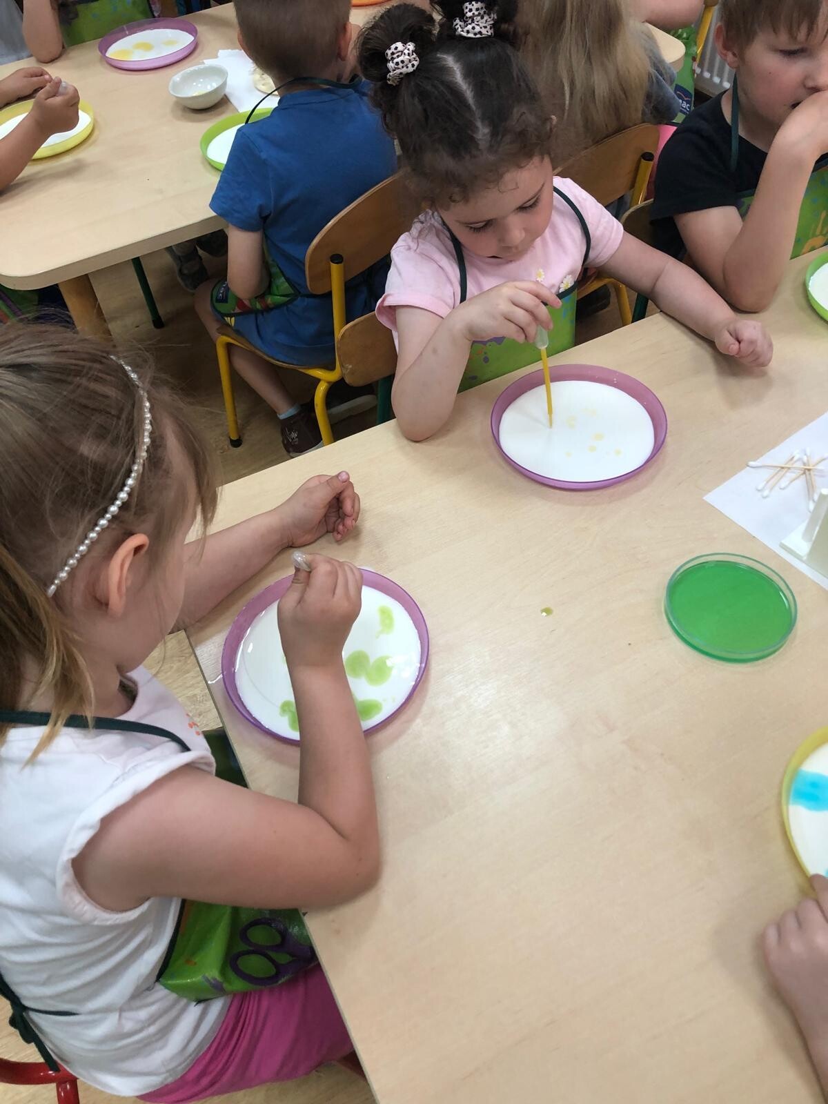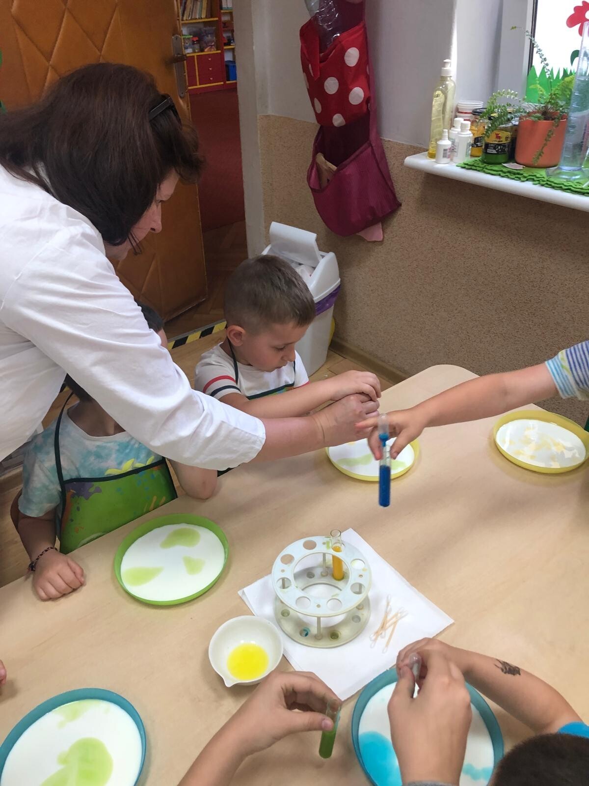 Dzieci z grupy Motylków i Kotków uczestniczyły w zabawach badawczych zorganizowanych przez mamę Adasia i Piotrusia Panią Agnieszkę oraz uczennice ze Szkoły nr8 w Lęborku. Dzieci mogły poczuć się prawdziwymi odkrywcami podczas zabaw badawczych. Mieszały mikstury, z zainteresowaniem obserwowały, zadawały pytania. Mali badacze byli niezwykle zainteresowani wszystkimi działaniami, była to dla nich ciekawa zabawa i przygoda. Wykonane eksperymenty z pewnością były okazją do pogłębienia wiedzy o fascynującym świecie.