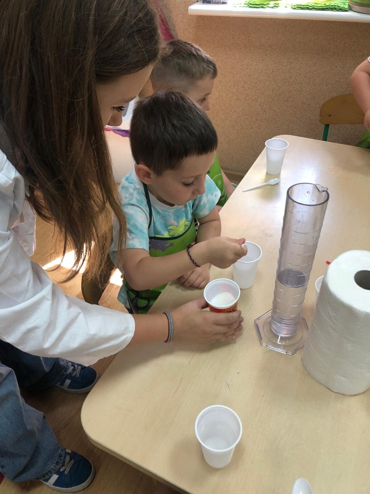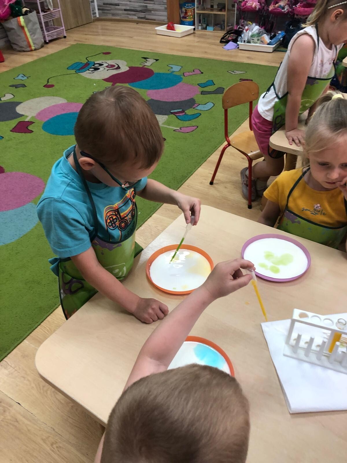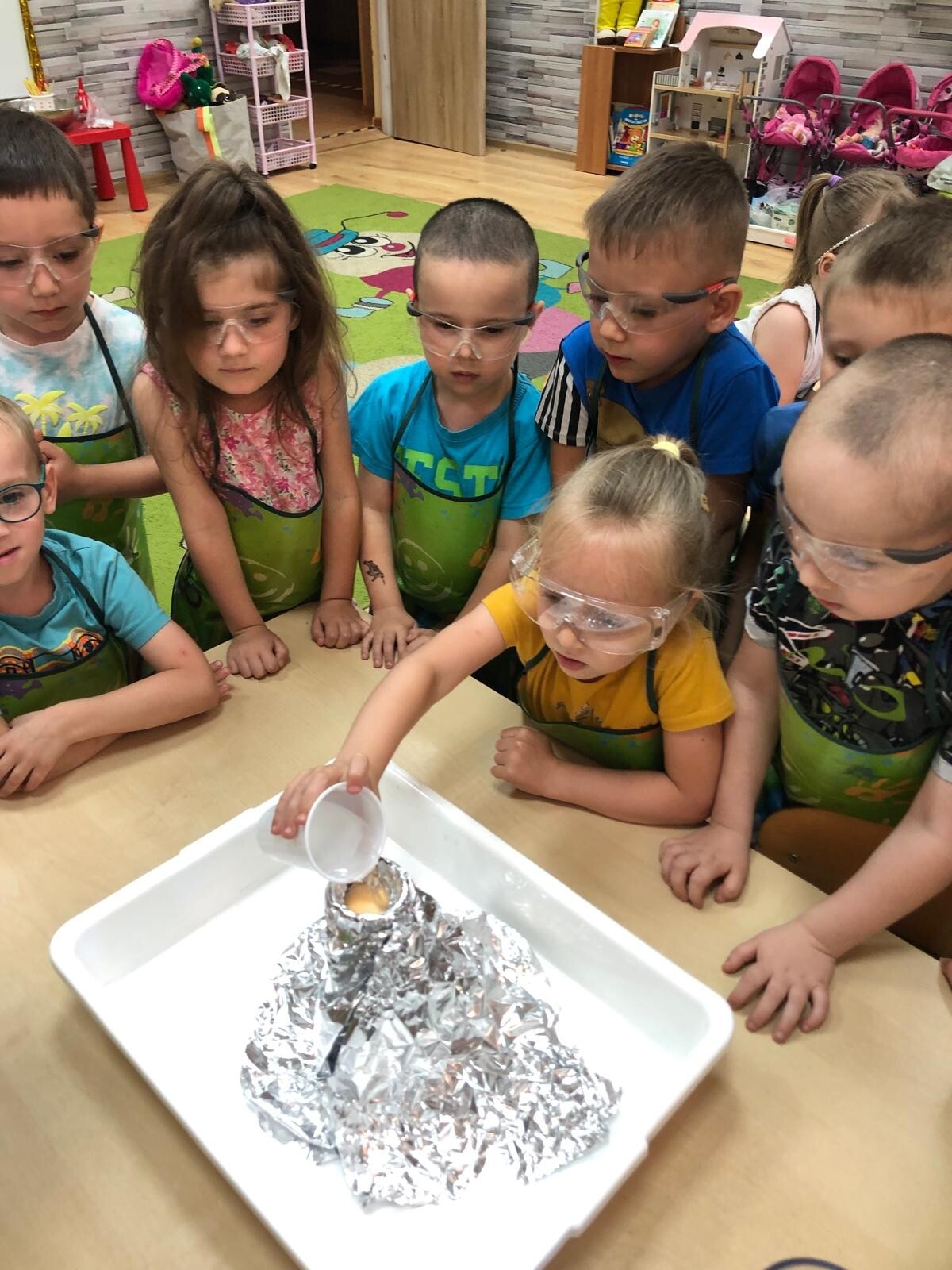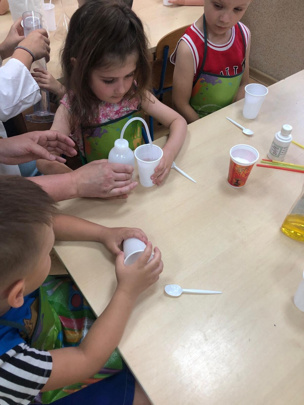 Dzieci z grupy Motylków i Kotków uczestniczyły w zabawach badawczych zorganizowanych przez mamę Adasia i Piotrusia Panią Agnieszkę oraz uczennice ze Szkoły nr8 w Lęborku. Dzieci mogły poczuć się prawdziwymi odkrywcami podczas zabaw badawczych. Mieszały mikstury, z zainteresowaniem obserwowały, zadawały pytania. Mali badacze byli niezwykle zainteresowani wszystkimi działaniami, była to dla nich ciekawa zabawa i przygoda. Wykonane eksperymenty z pewnością były okazją do pogłębienia wiedzy o fascynującym świecie.