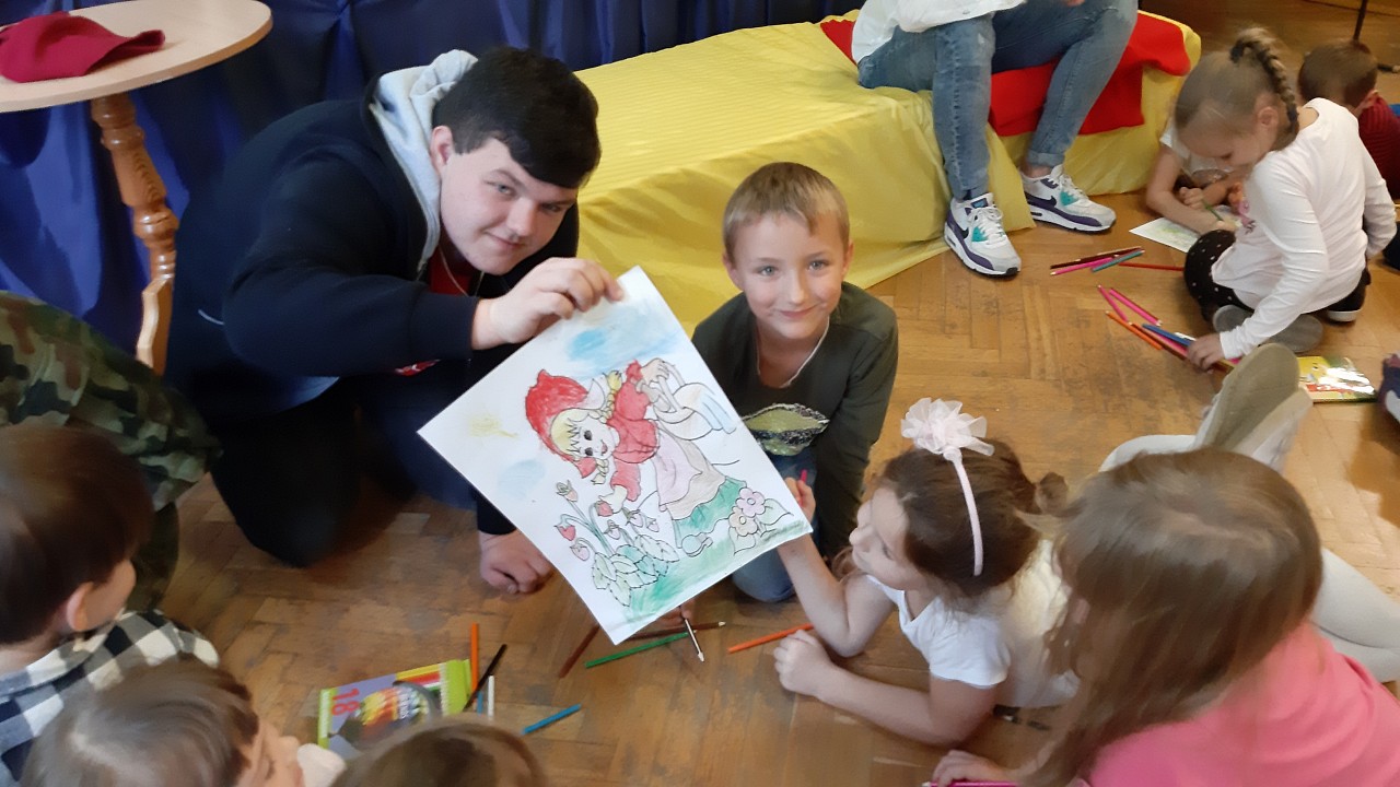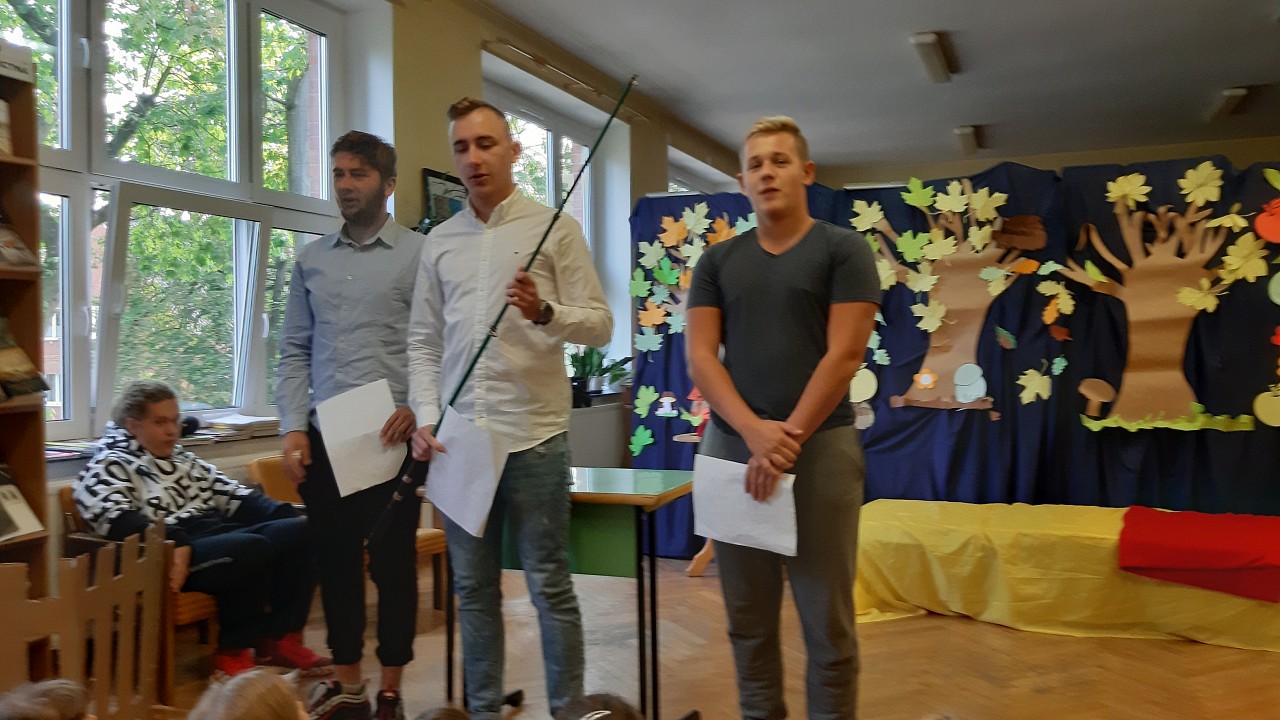 W piątek 27 września w ramach ogólnopolskiej akcji Cała Polska Czyta Dzieciom MISIAKI gościły w bibliotece Zespołu Szkół Mechaniczno - Informatycznych. W bardzo miłej atmosferze dzieci wysłuchały bajki o Czerwonym Kapturku połączonej z inscenizacją, przygotowanej przez uczniów tej szkoły, a następnie odpowiadały na pytania związane z treścią bajki. Świetnie sobie poradziły, a nawet znalazły morał : ,, Zawsze należy słuchać rodziców ''. Ale to nie koniec zabawy. Dzieci wysłuchały również inscenizacji wiersza pt. ,, Paweł i Gaweł '' oraz poznały instrument muzyczny - klarnet. Po przedstawieniu na dzieci czekała kolorowanka związana z tematem bajki oraz słodki poczęstunek.
