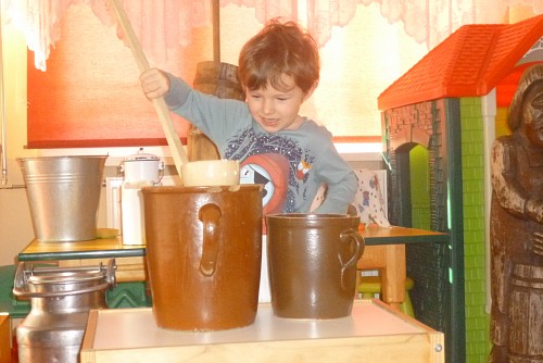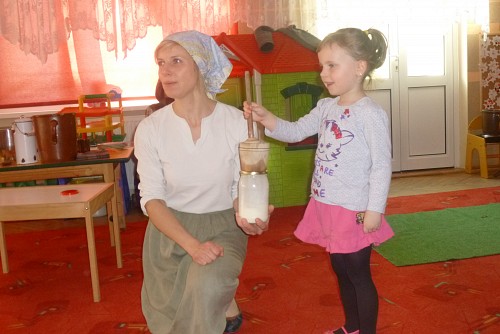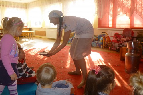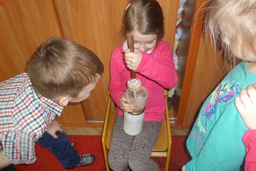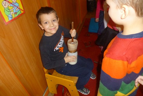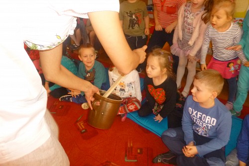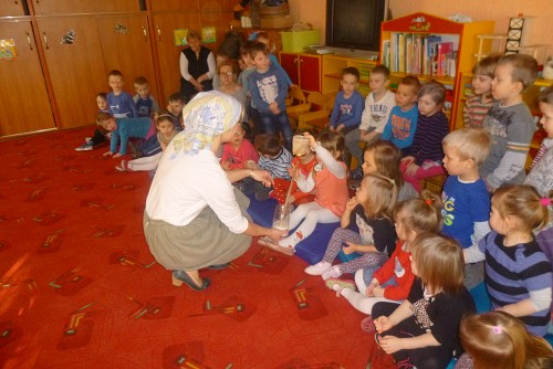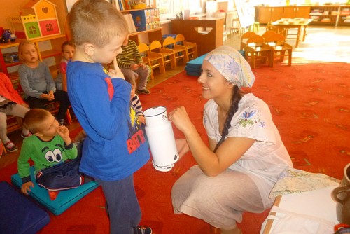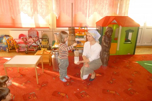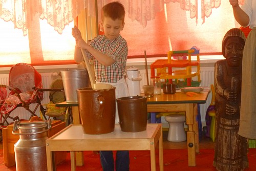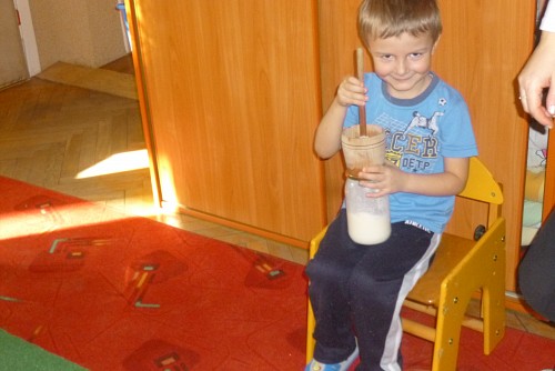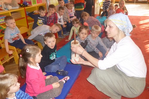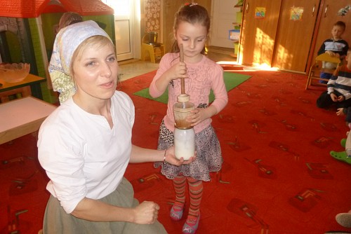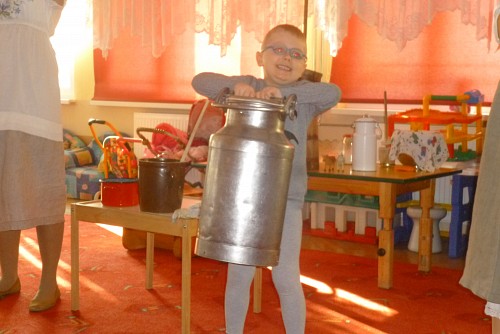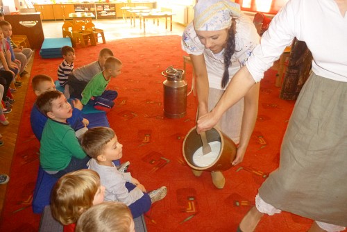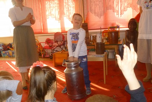 Wychodząc naprzeciw potrzebom małego dziecka, chcąc zaspokoić jego ciekawość i w praktyczny sposób uzupełnić program nauczania przedszkolnego, gospodynie z ,, ZAGRODY POWROTY \'\' zorganizowałyu nas w przedszkolu w środę 25 lutego spotkanie edukacyjne pt.,, Mleczna Droga \'\'. Wszystko zaczęło się bardzo ciekawie. Bajka o maśle, opowieści o wiejskiej zagrodzie, zwierzętach i zwyczajach tam panujących. Dzieci miały okazję poznać sprzęt gospodarstwa domowego, choć sprzed wielu lat, nadal niezawodny i bardzo potrzebny w wiejskiej chacie. Z wielkim zainteresowaniem przyglądały się również, w jaki sposób powstaje masło oraz twaróg, zanim trafi na nasze stoły. Na dużą uwagę zasługuje fakt, że dzieci samodzielnie wykonały masło w małej, specjalnie w tym celu skonstruowanej maselnicy.