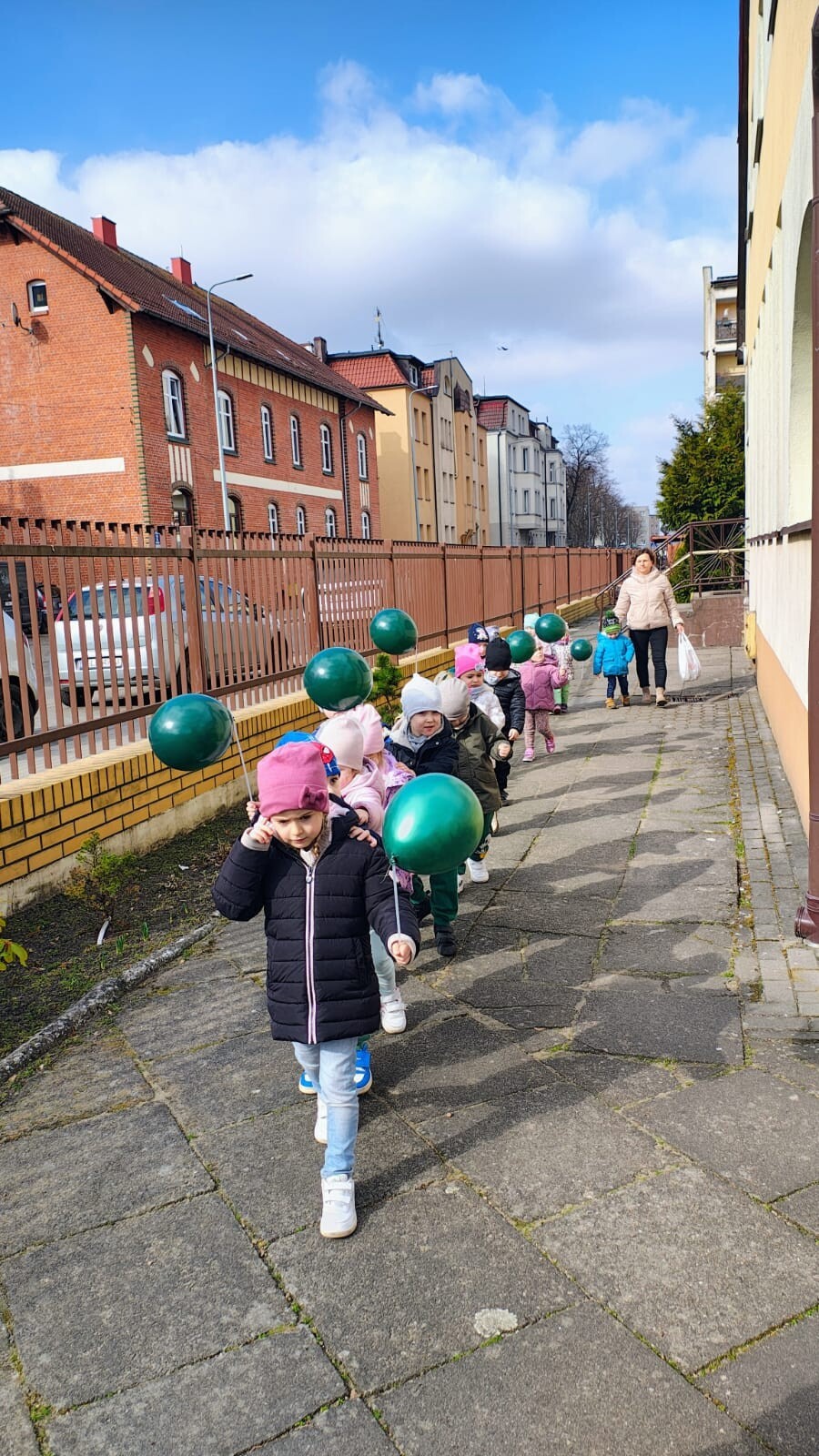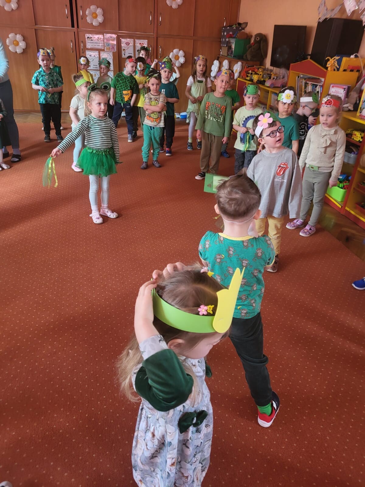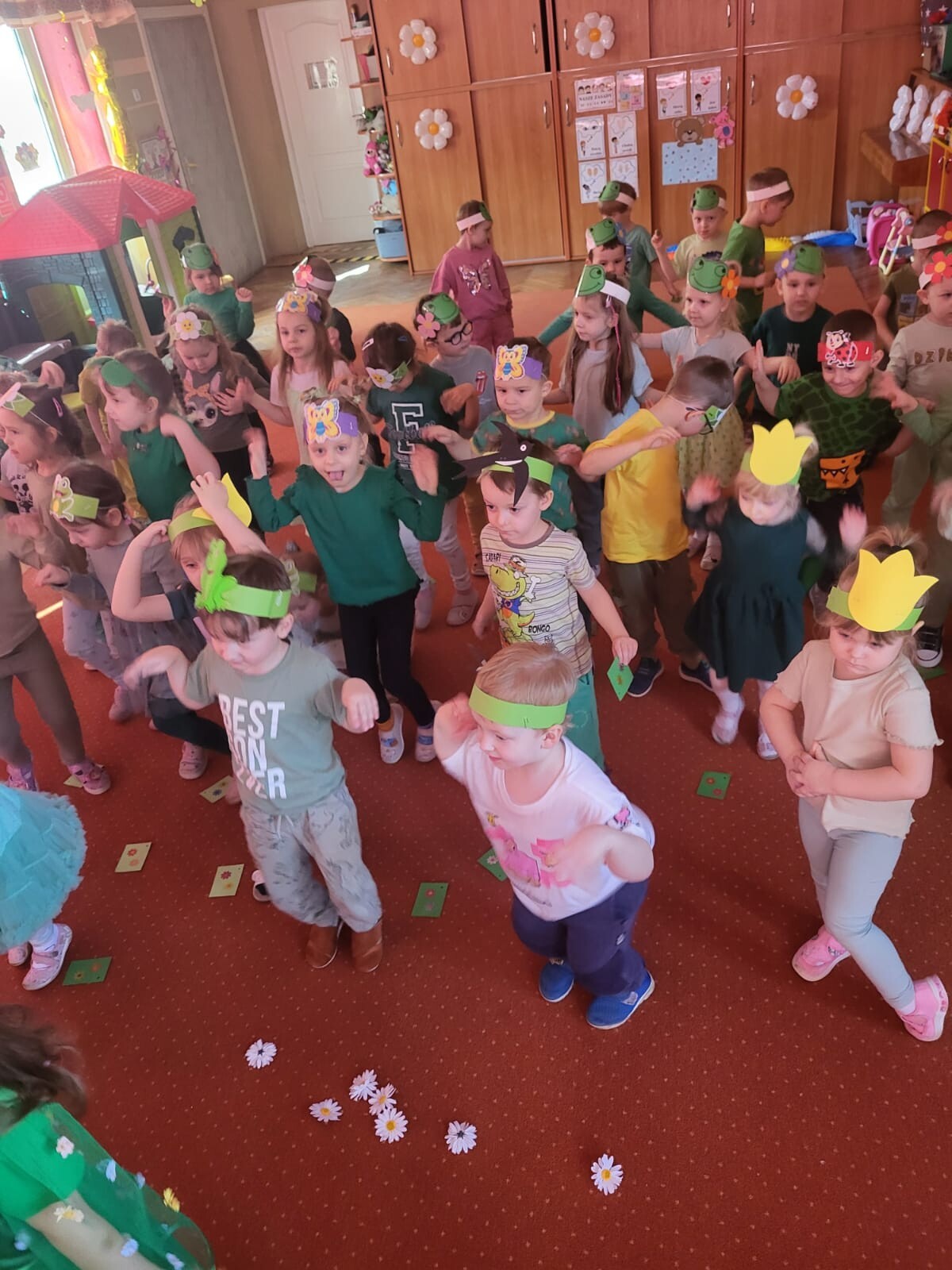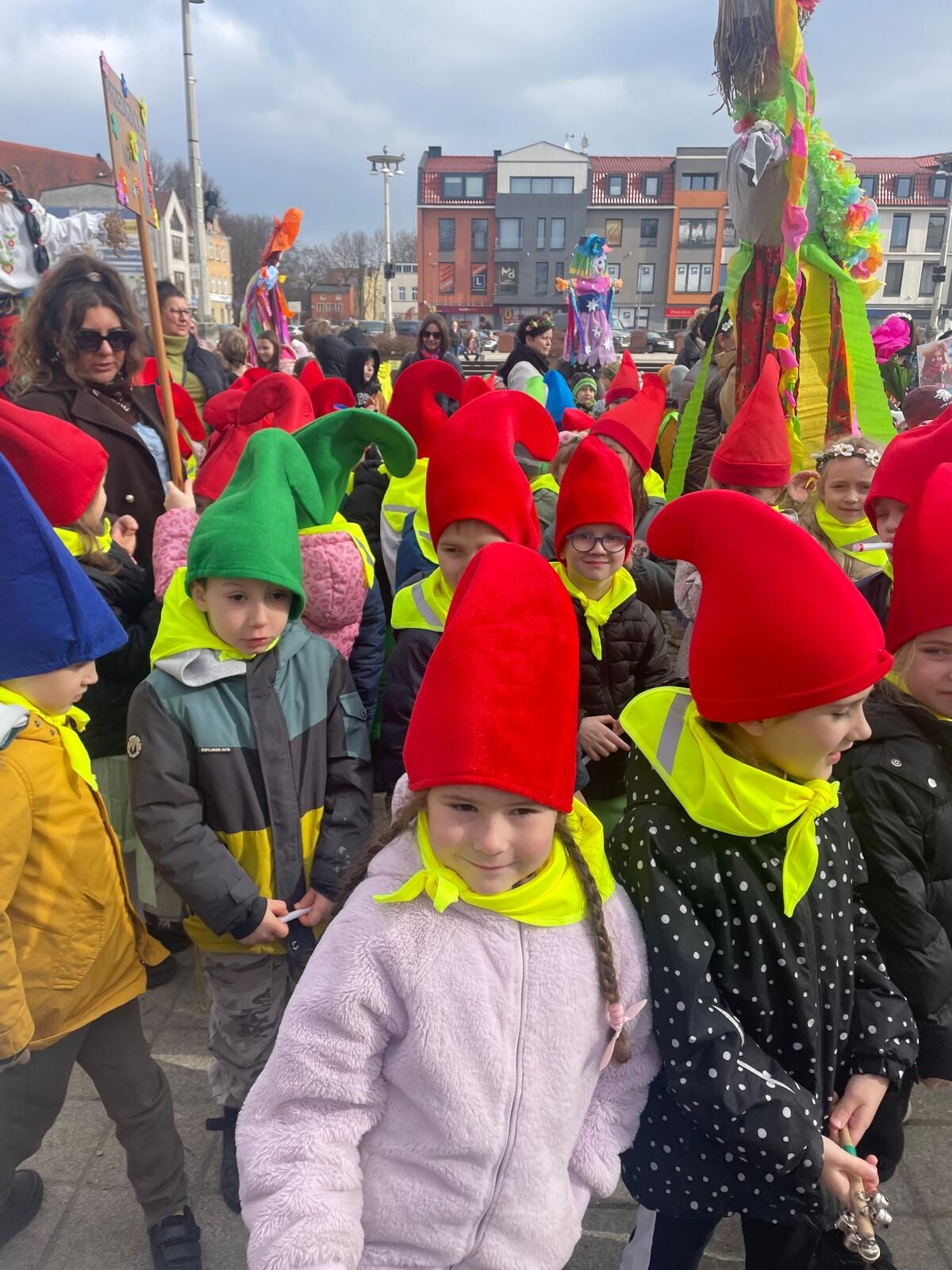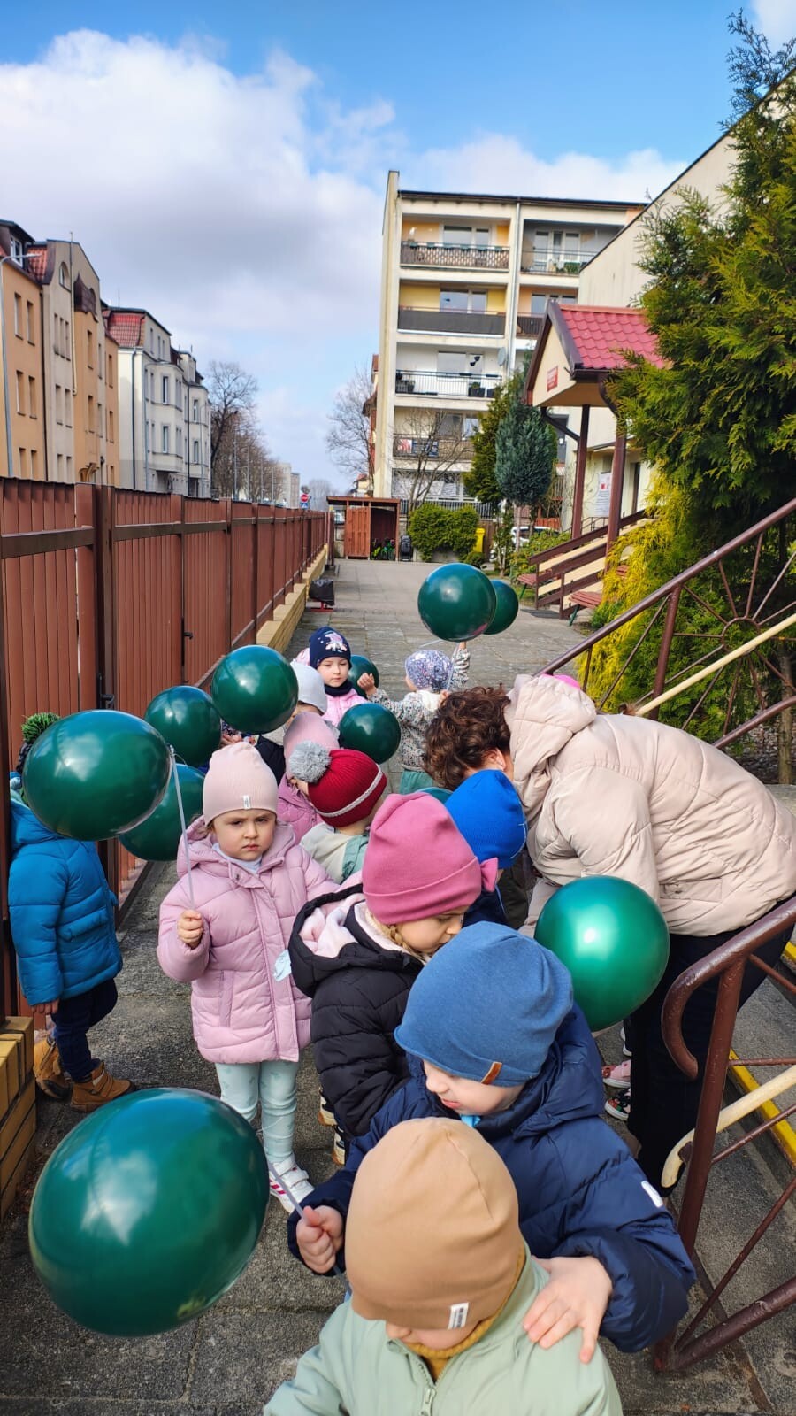 Tego dnia tradycyjnie - wszystkie przedszkolaki przyszły do przedszkola ubrane na zielono. Było baaardzo wesoło. Zabawy tematyczne zorganizowane z okazji zbliżającej się wiosny, sprawiły wszystkim wiele radości. Na uwagę zasługuje przedstawienie wiosenne w wykonaniu nauczycielek grup najmłodszych pt.,, Przyjście wiosny ''. Przedszkolaki odbyły również spacer po korytarzach przedszkola, ogrodu przedszkolnego oraz pobliskiego parku, który połączony był z poszukiwaniem śladów zostawionych przez Panią Wiosnę. Starszaki Marzanną udały się na Plac Pokoju i następnie przemaszerowały ulicą Staromiejską, zbierając od przechodniów nagromadzoną przez cały rok złą energię. Później wraz z Marzanną popłynęła ona do morza. Oczywiście nie zabrakło śpiewu oraz chóralnego odganiania zimy.