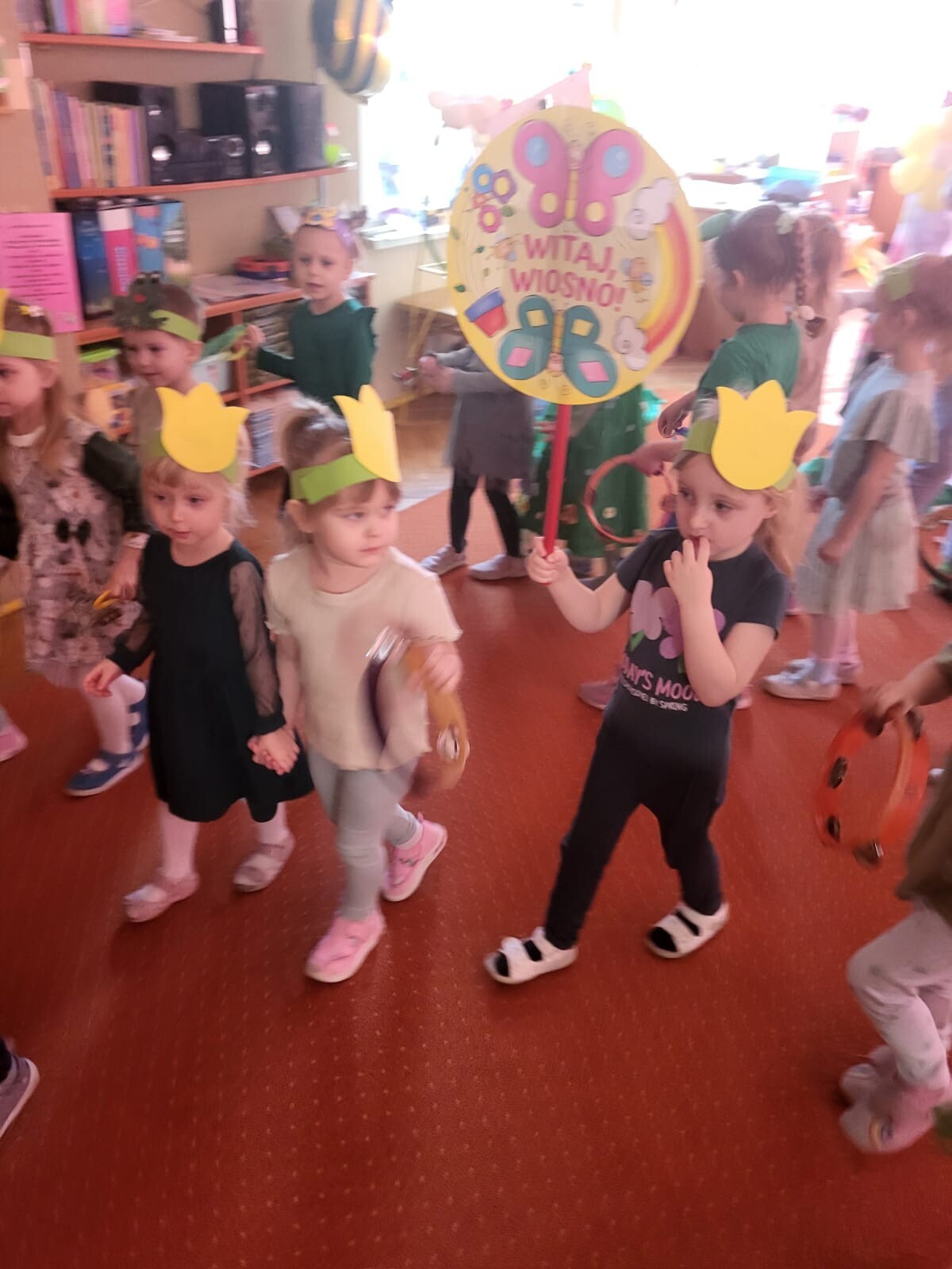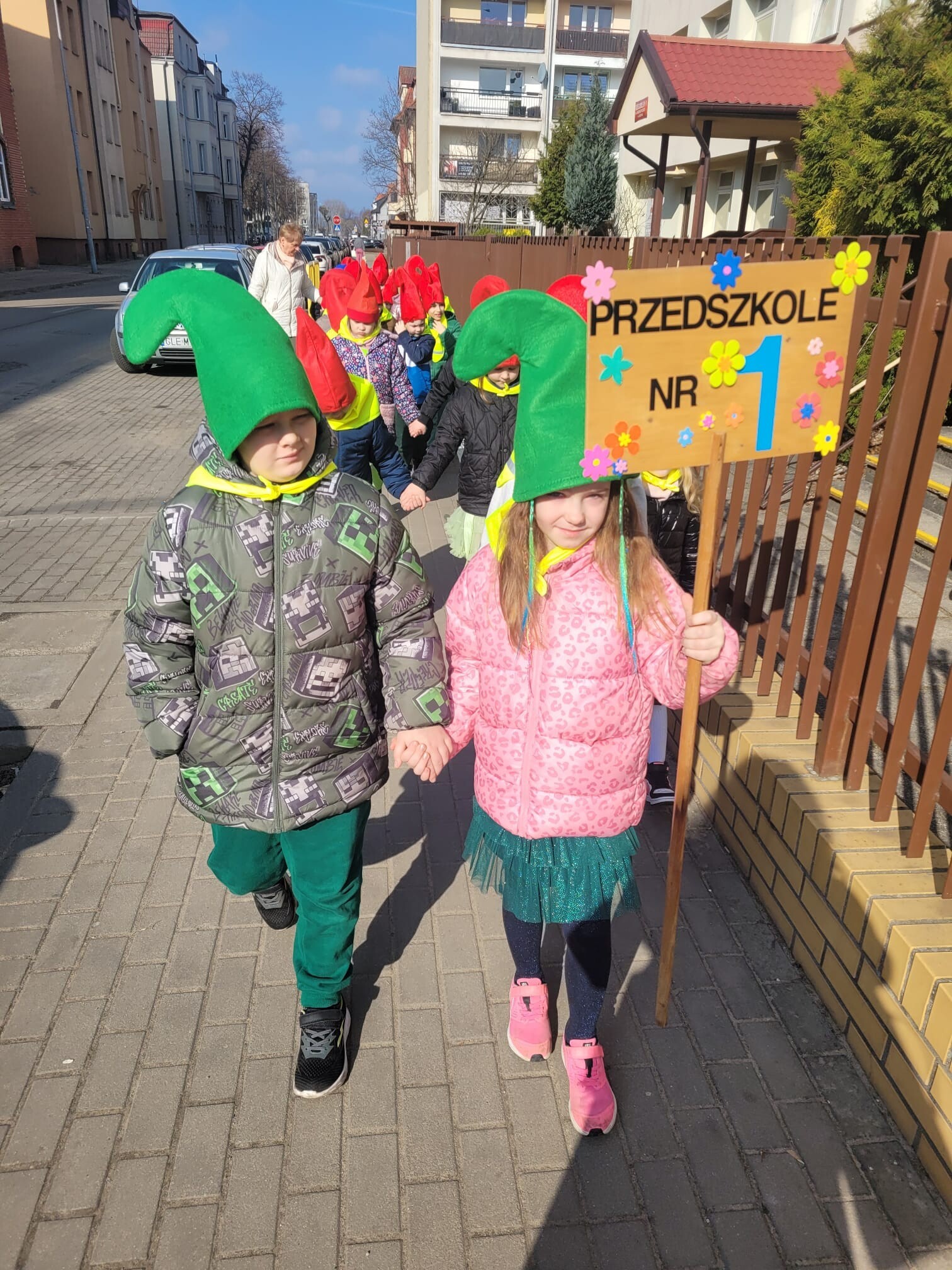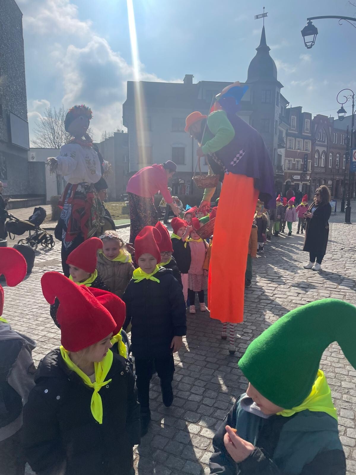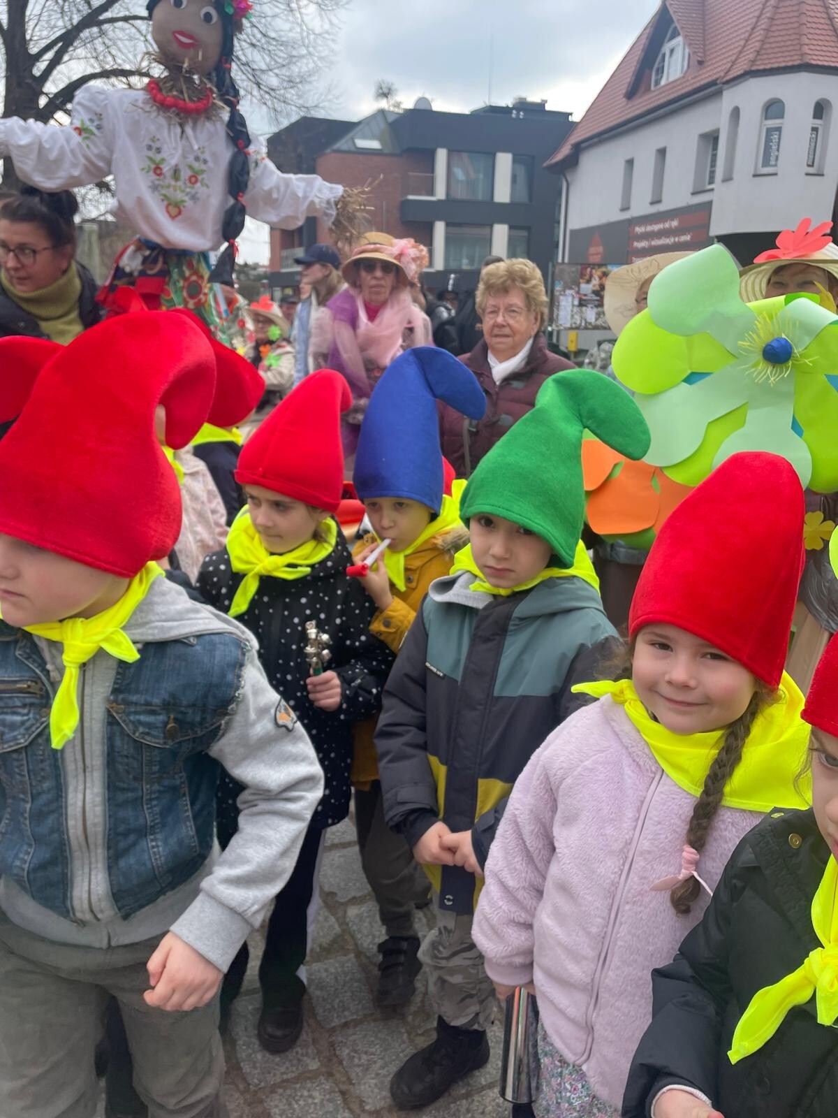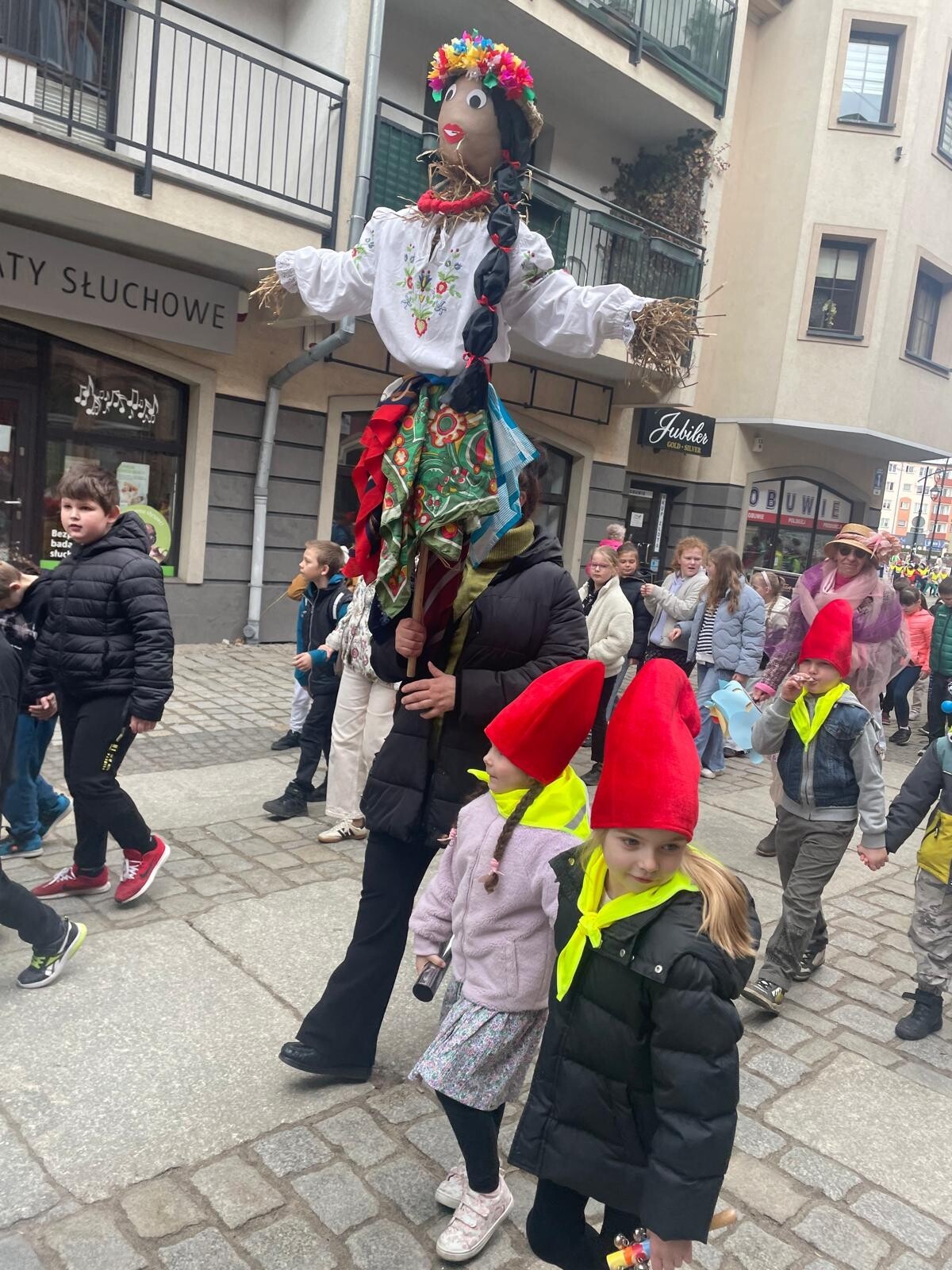 Tego dnia tradycyjnie - wszystkie przedszkolaki przyszły do przedszkola ubrane na zielono. Było baaardzo wesoło. Zabawy tematyczne zorganizowane z okazji zbliżającej się wiosny, sprawiły wszystkim wiele radości. Na uwagę zasługuje przedstawienie wiosenne w wykonaniu nauczycielek grup najmłodszych pt.,, Przyjście wiosny ''. Przedszkolaki odbyły również spacer po korytarzach przedszkola, ogrodu przedszkolnego oraz pobliskiego parku, który połączony był z poszukiwaniem śladów zostawionych przez Panią Wiosnę. Starszaki Marzanną udały się na Plac Pokoju i następnie przemaszerowały ulicą Staromiejską, zbierając od przechodniów nagromadzoną przez cały rok złą energię. Później wraz z Marzanną popłynęła ona do morza. Oczywiście nie zabrakło śpiewu oraz chóralnego odganiania zimy.