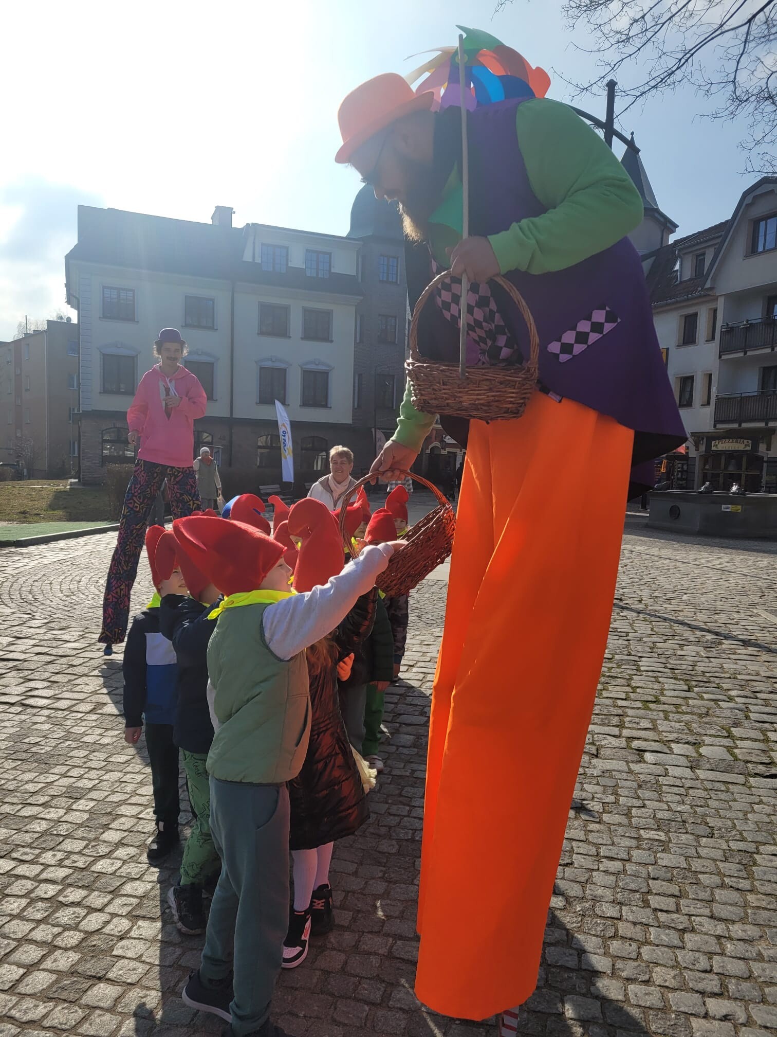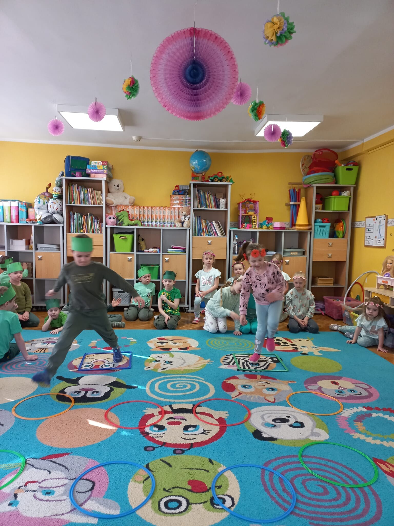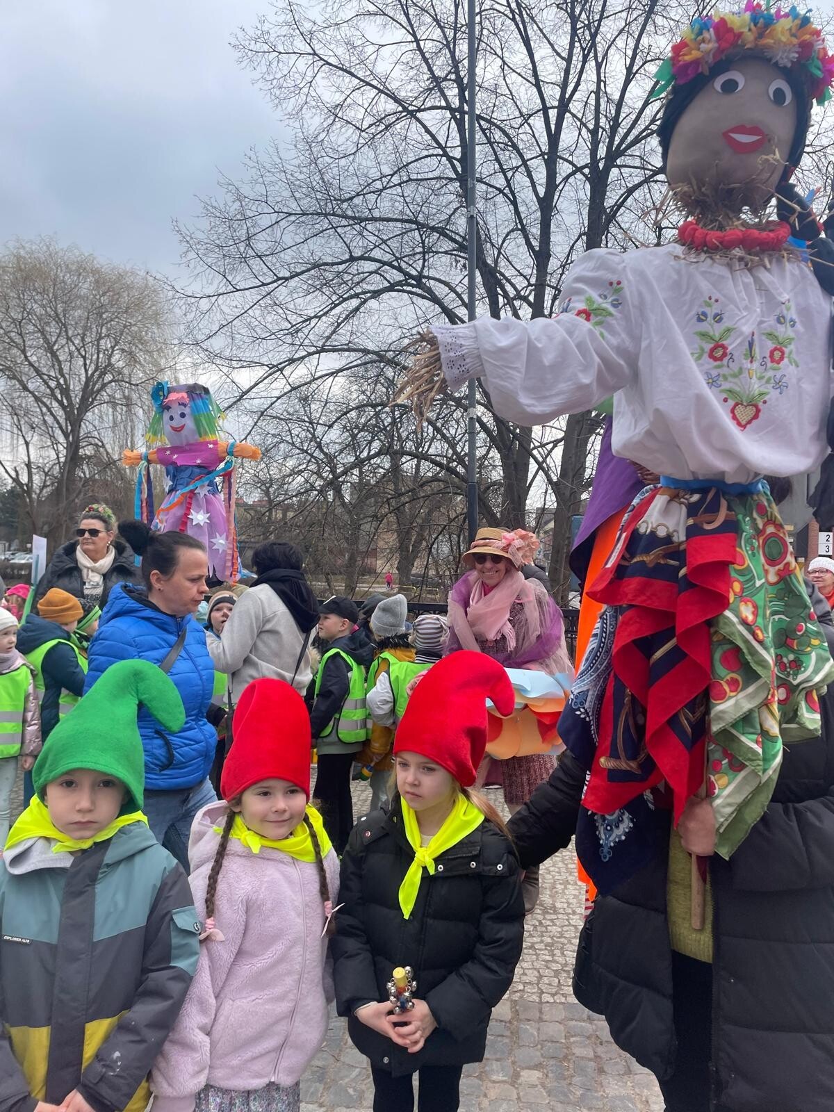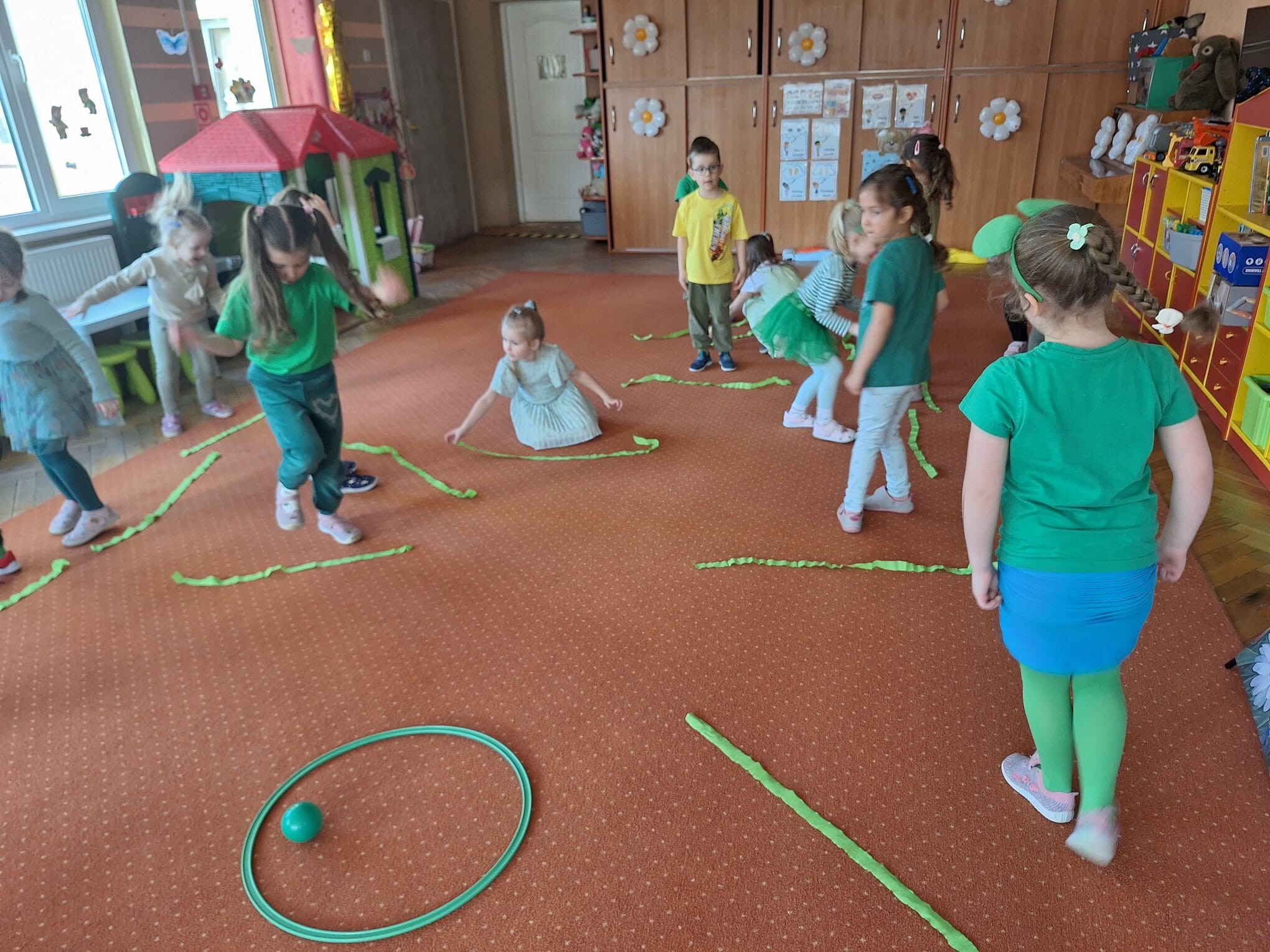 Tego dnia tradycyjnie - wszystkie przedszkolaki przyszły do przedszkola ubrane na zielono. Było baaardzo wesoło. Zabawy tematyczne zorganizowane z okazji zbliżającej się wiosny, sprawiły wszystkim wiele radości. Na uwagę zasługuje przedstawienie wiosenne w wykonaniu nauczycielek grup najmłodszych pt.,, Przyjście wiosny ''. Przedszkolaki odbyły również spacer po korytarzach przedszkola, ogrodu przedszkolnego oraz pobliskiego parku, który połączony był z poszukiwaniem śladów zostawionych przez Panią Wiosnę. Starszaki Marzanną udały się na Plac Pokoju i następnie przemaszerowały ulicą Staromiejską, zbierając od przechodniów nagromadzoną przez cały rok złą energię. Później wraz z Marzanną popłynęła ona do morza. Oczywiście nie zabrakło śpiewu oraz chóralnego odganiania zimy.