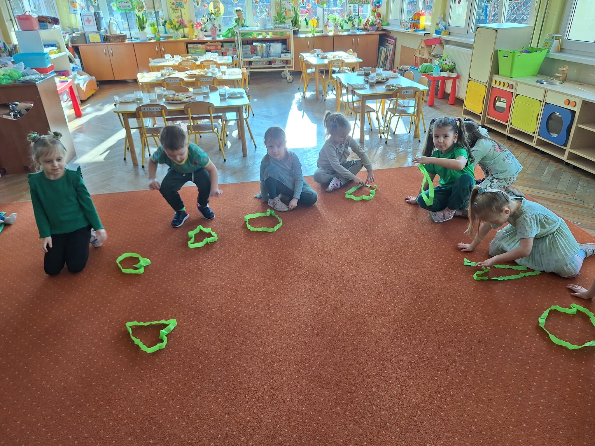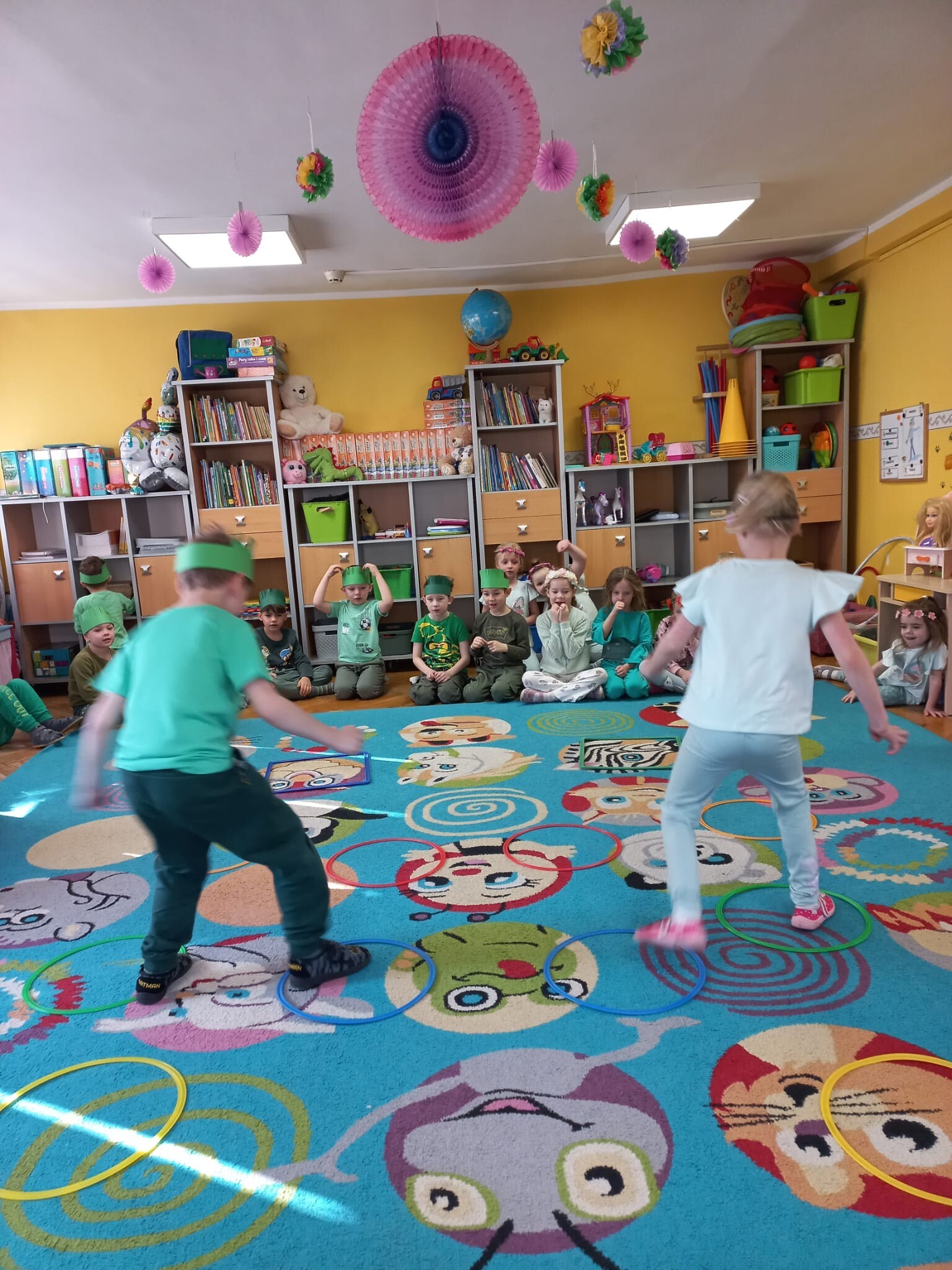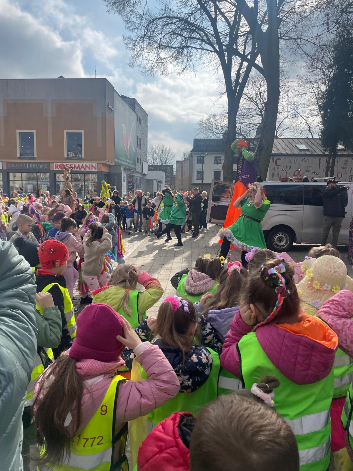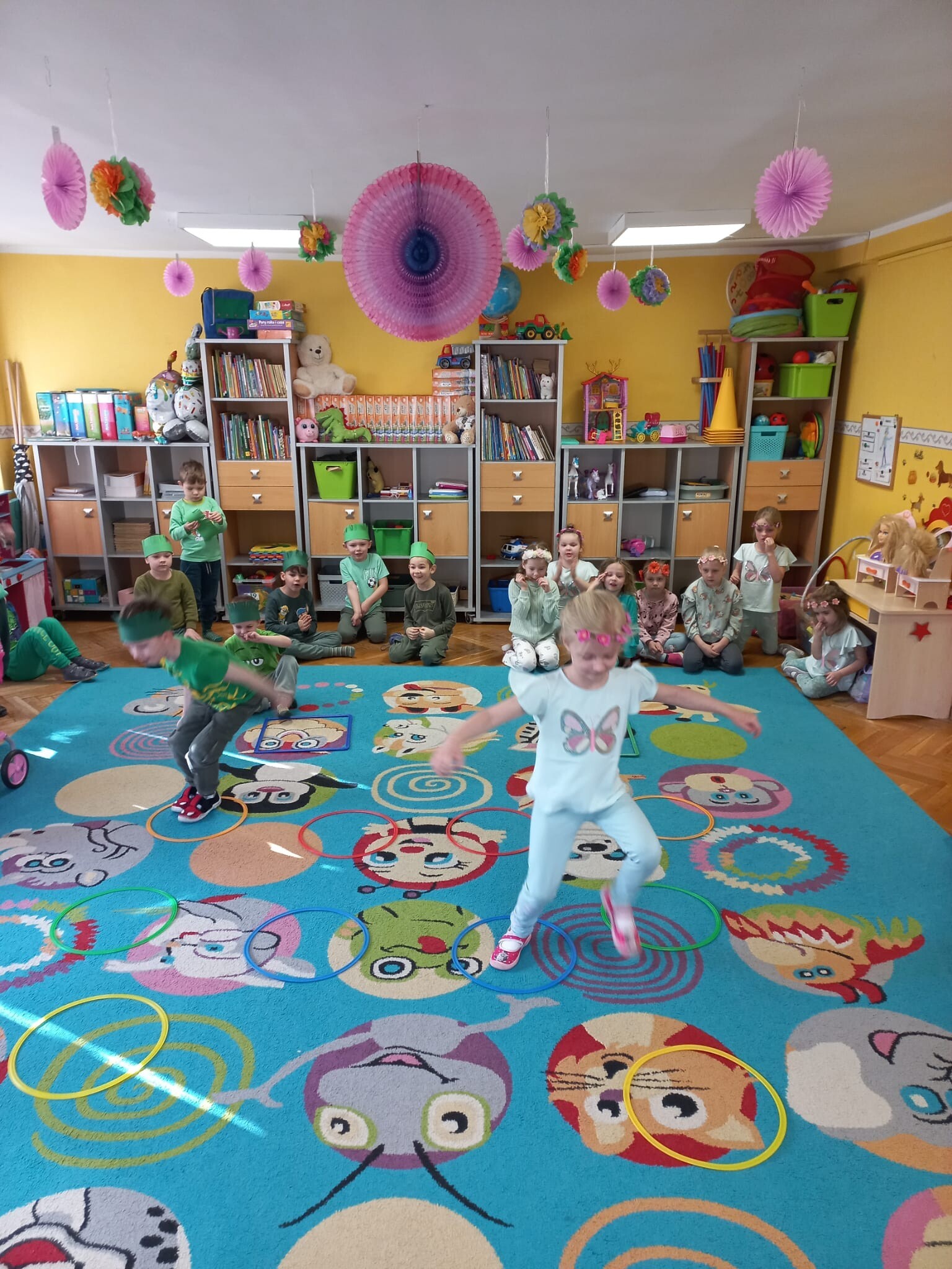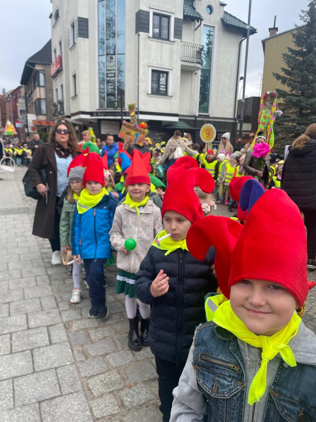 Tego dnia tradycyjnie - wszystkie przedszkolaki przyszły do przedszkola ubrane na zielono. Było baaardzo wesoło. Zabawy tematyczne zorganizowane z okazji zbliżającej się wiosny, sprawiły wszystkim wiele radości. Na uwagę zasługuje przedstawienie wiosenne w wykonaniu nauczycielek grup najmłodszych pt.,, Przyjście wiosny ''. Przedszkolaki odbyły również spacer po korytarzach przedszkola, ogrodu przedszkolnego oraz pobliskiego parku, który połączony był z poszukiwaniem śladów zostawionych przez Panią Wiosnę. Starszaki Marzanną udały się na Plac Pokoju i następnie przemaszerowały ulicą Staromiejską, zbierając od przechodniów nagromadzoną przez cały rok złą energię. Później wraz z Marzanną popłynęła ona do morza. Oczywiście nie zabrakło śpiewu oraz chóralnego odganiania zimy.