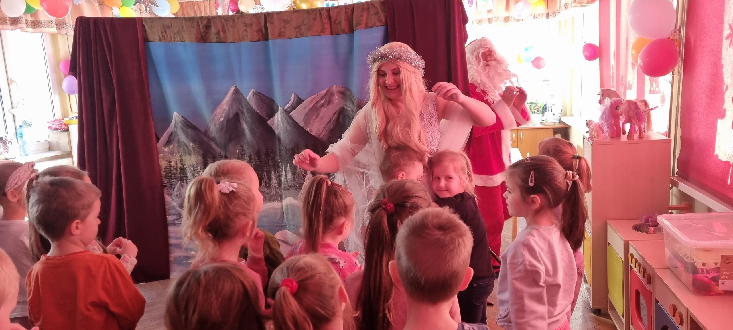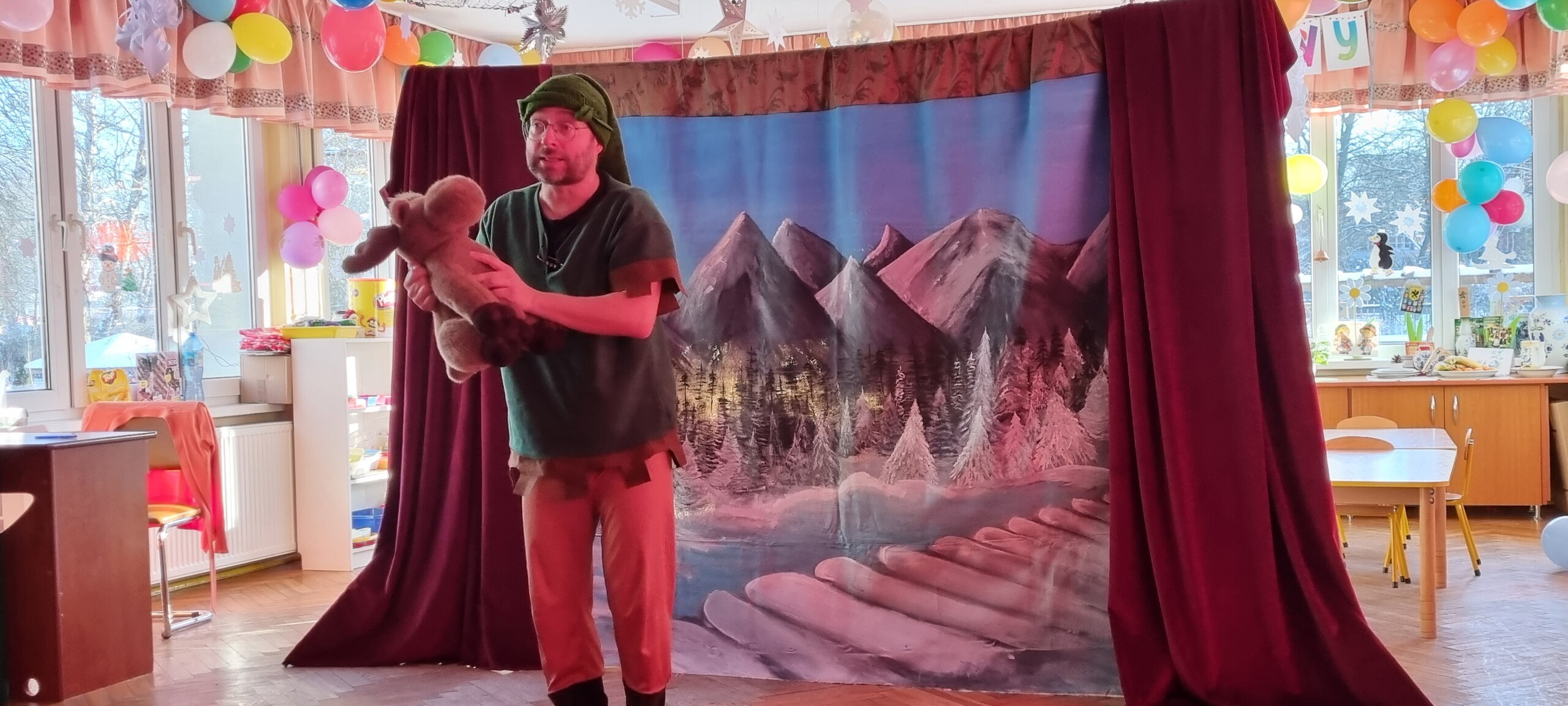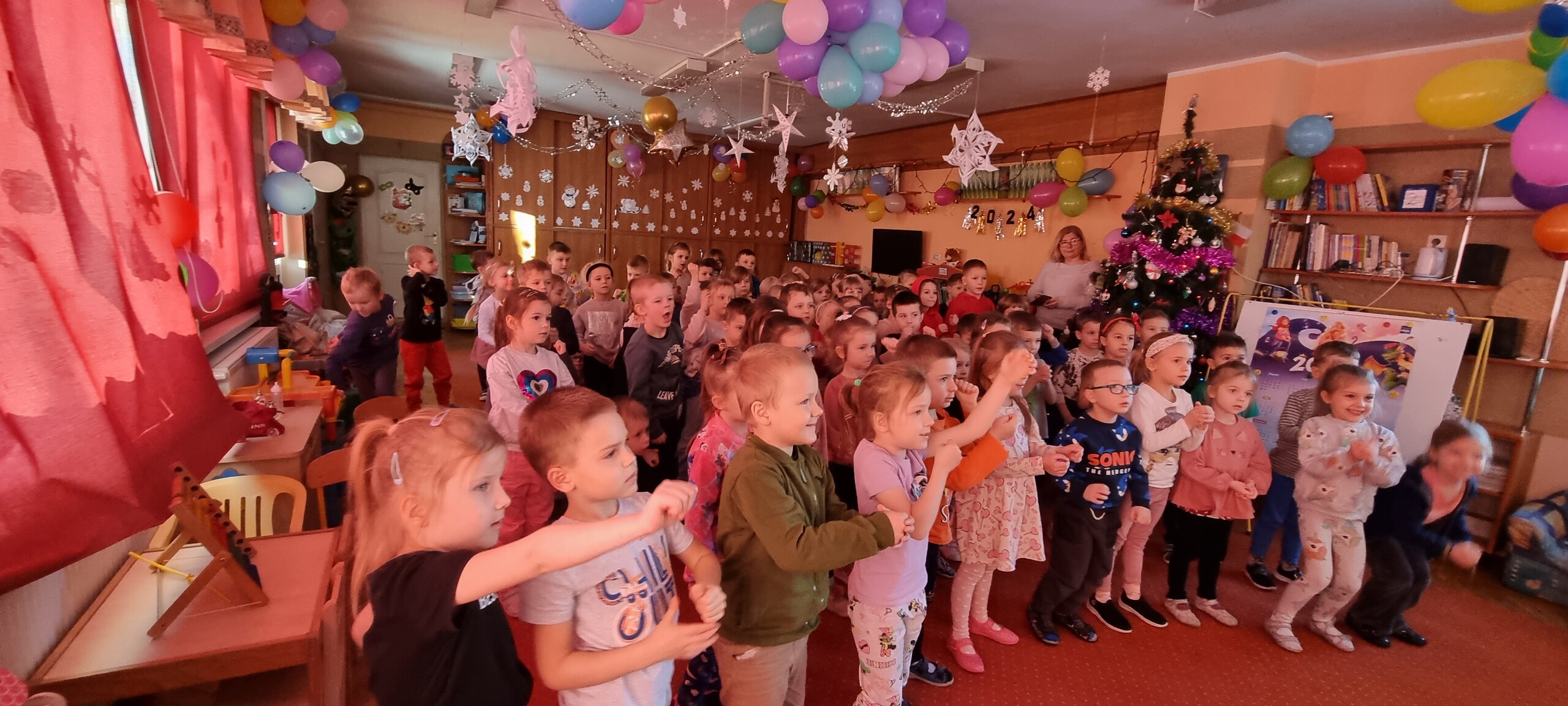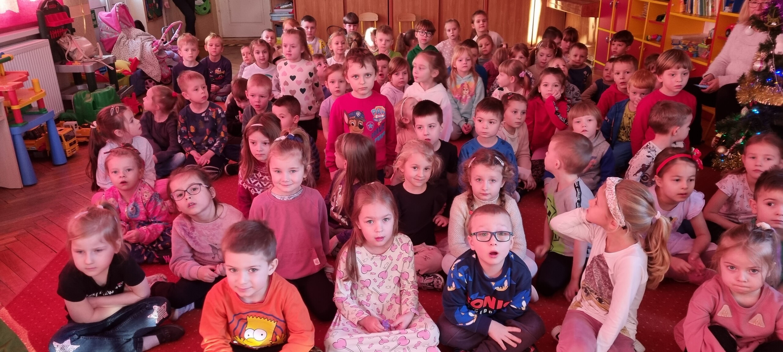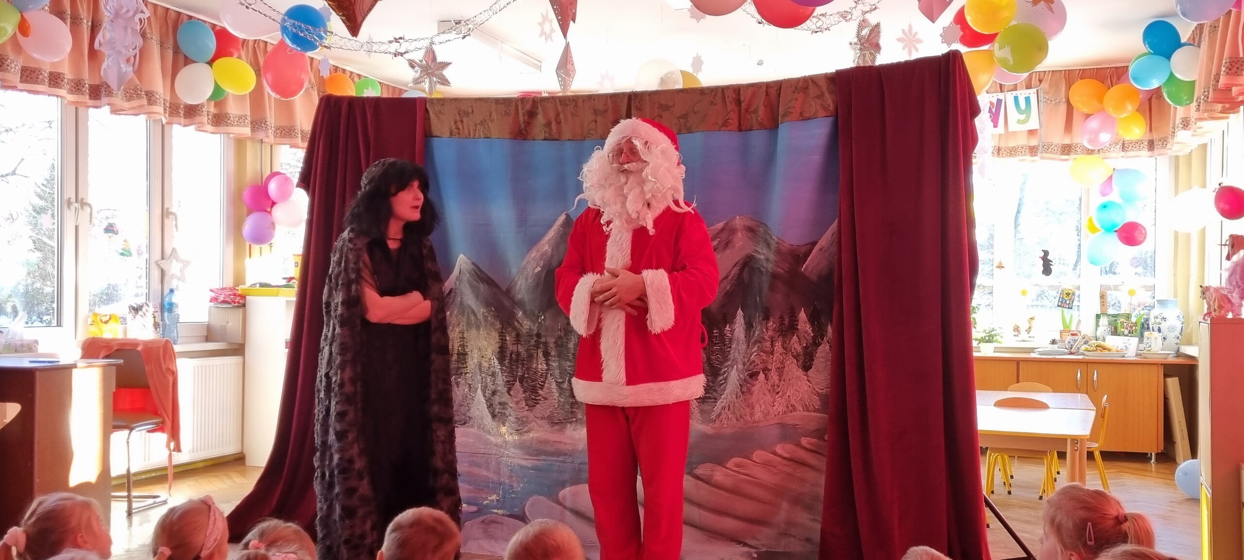 W poniedziałek 8 stycznia nasze przedszkole odwiedzili artyści z Teatru WIDOWISKO z Krakowa. Dzieci obejrzały przedstawienie świąteczne pt. ,, OPOWIEŚCI z LAPONII ''. Głównymi bohaterami był Elf i dziewczynka Zosia, którzy połączyli swoje siły w poszukiwaniu Mikołaja. Dzieci również wzięły aktywny udział w przedstawieniu, gdyż za sprawą serduszek przepełnionych miłością, udało się odnaleźć Świętego Mikołaja oraz magię Świąt.