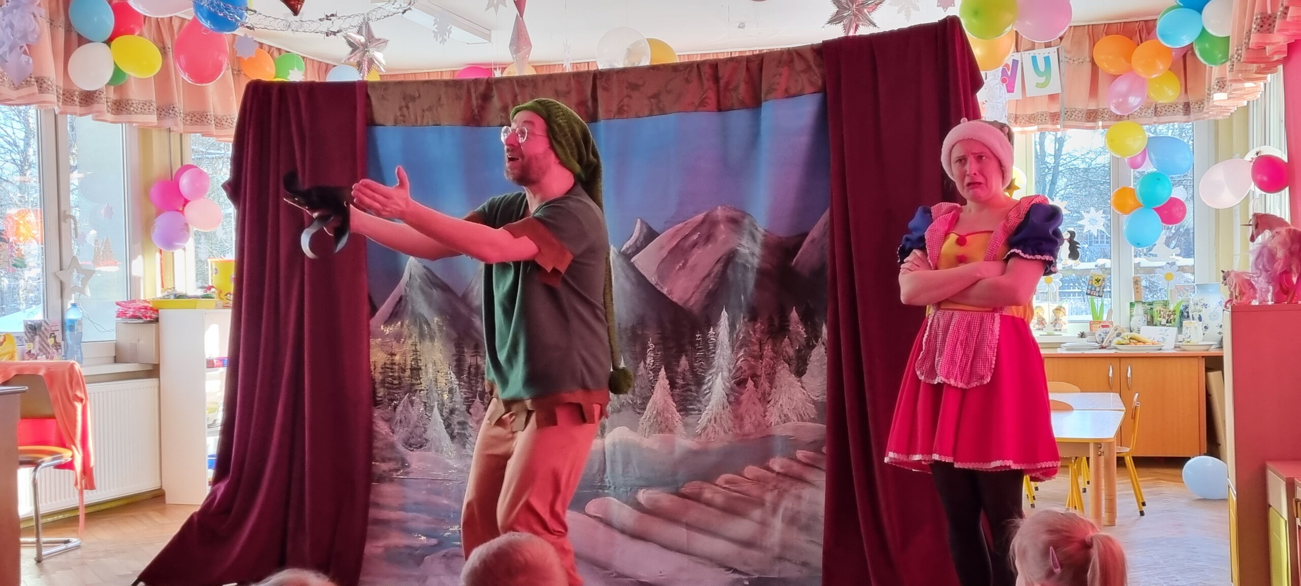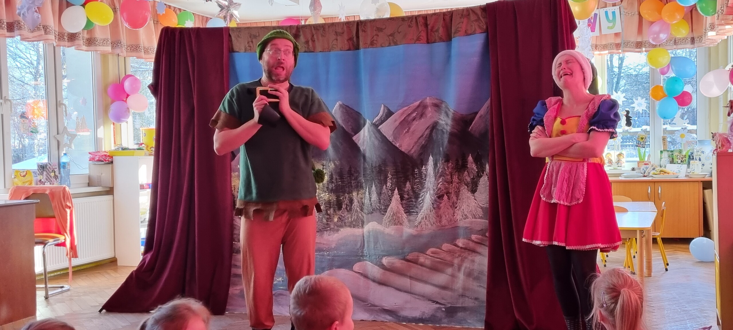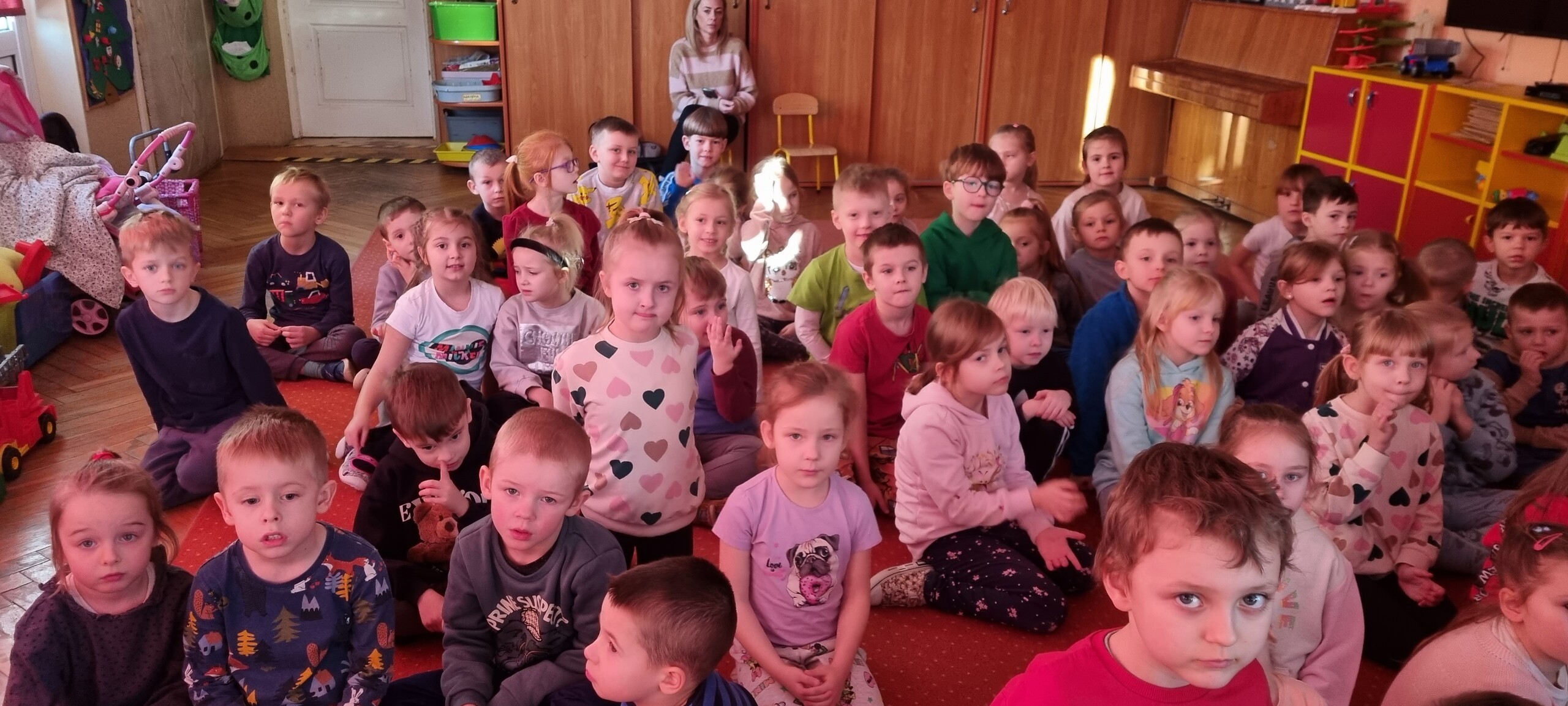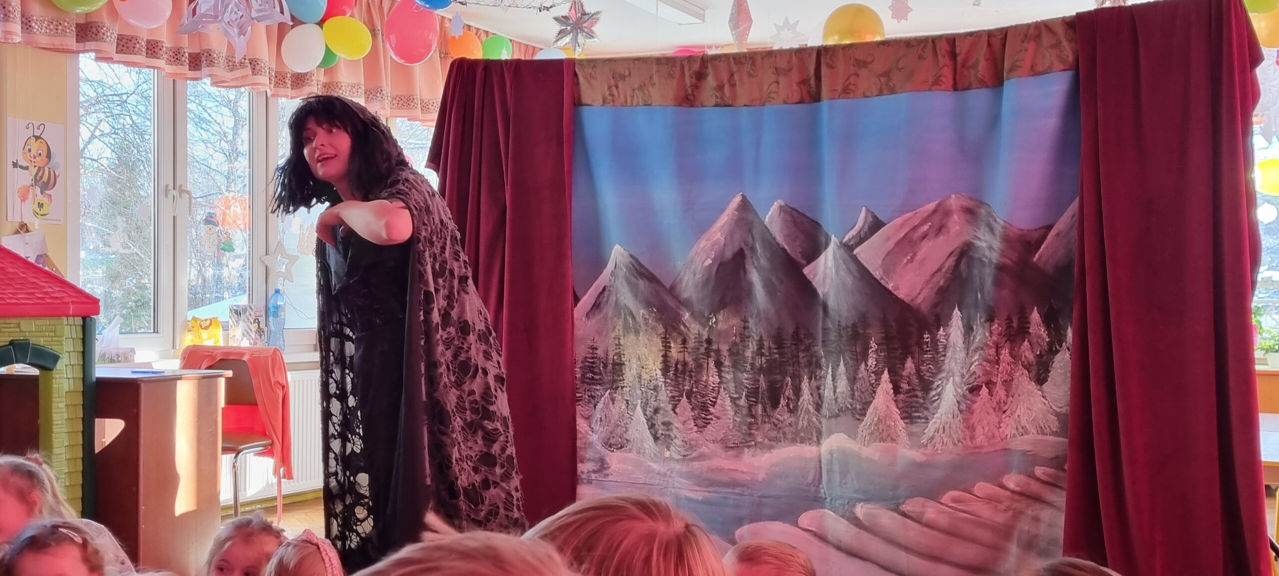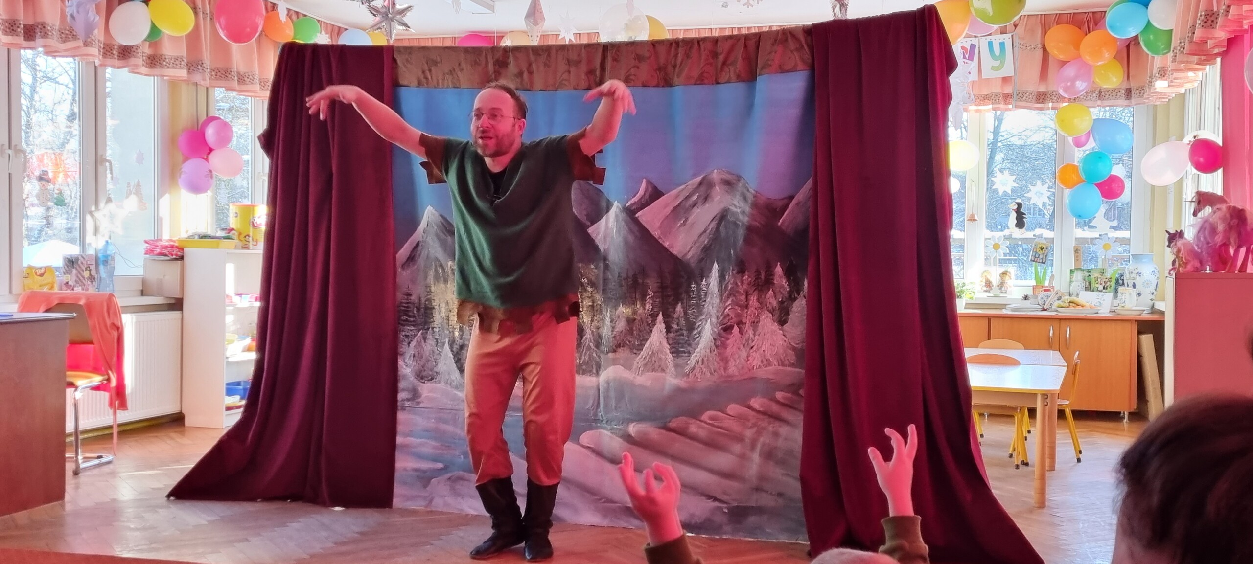 W poniedziałek 8 stycznia nasze przedszkole odwiedzili artyści z Teatru WIDOWISKO z Krakowa. Dzieci obejrzały przedstawienie świąteczne pt. ,, OPOWIEŚCI z LAPONII ''. Głównymi bohaterami był Elf i dziewczynka Zosia, którzy połączyli swoje siły w poszukiwaniu Mikołaja. Dzieci również wzięły aktywny udział w przedstawieniu, gdyż za sprawą serduszek przepełnionych miłością, udało się odnaleźć Świętego Mikołaja oraz magię Świąt.