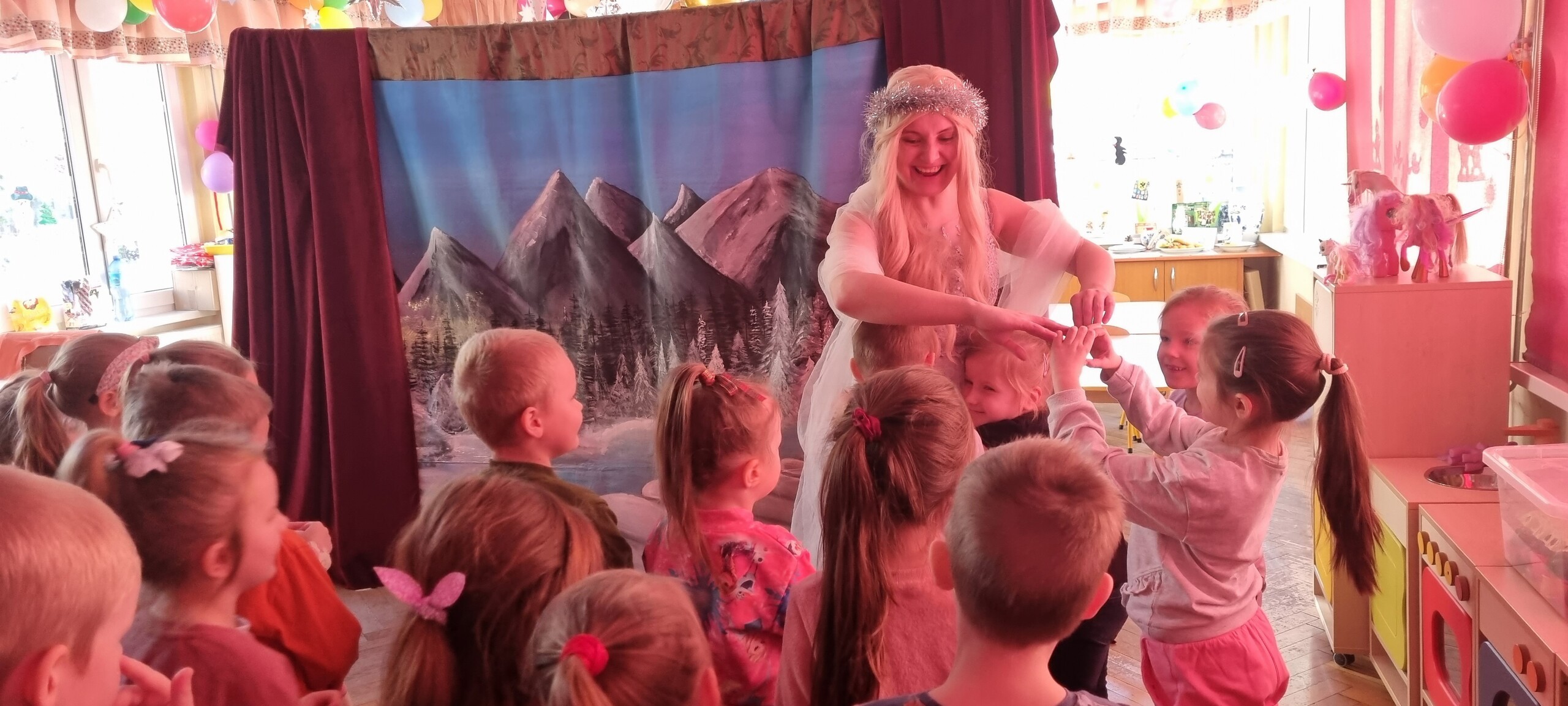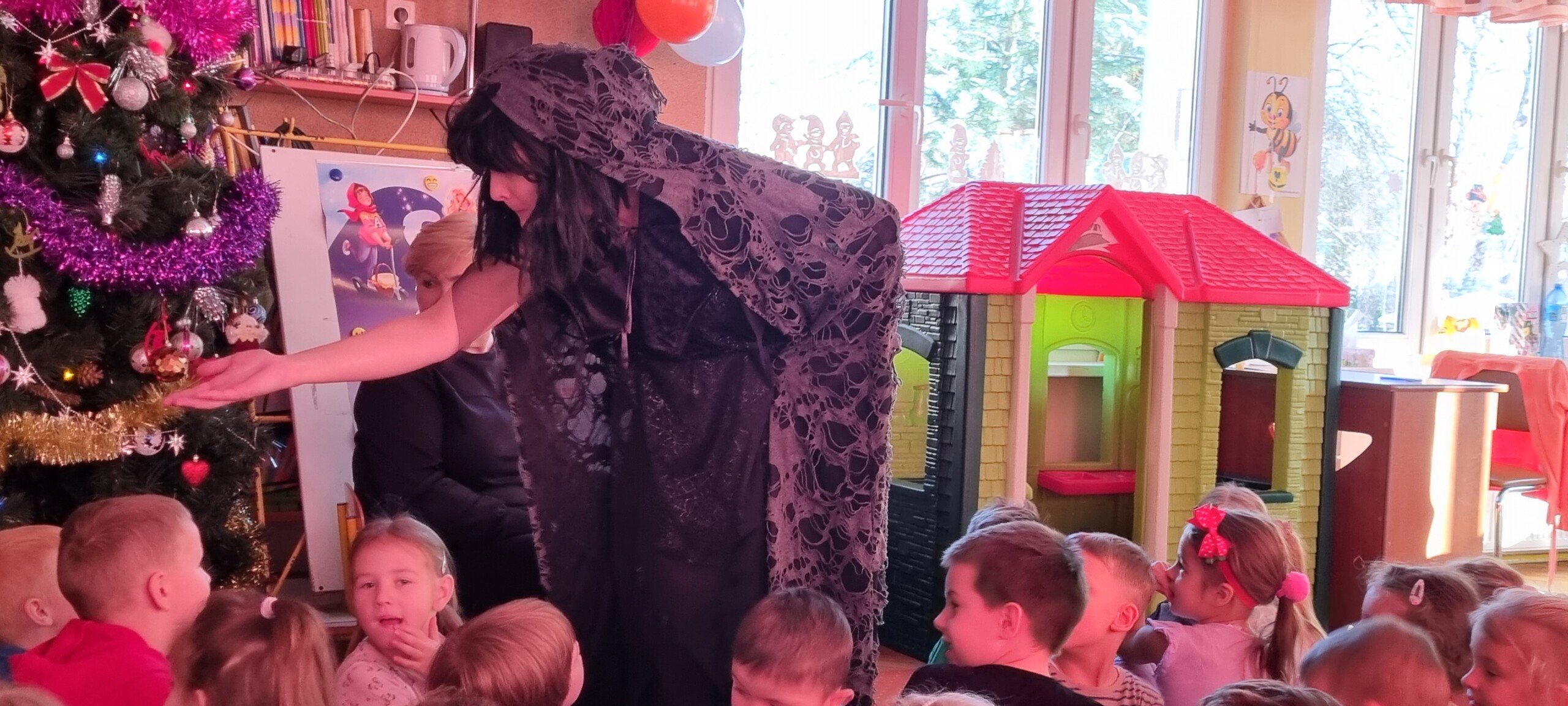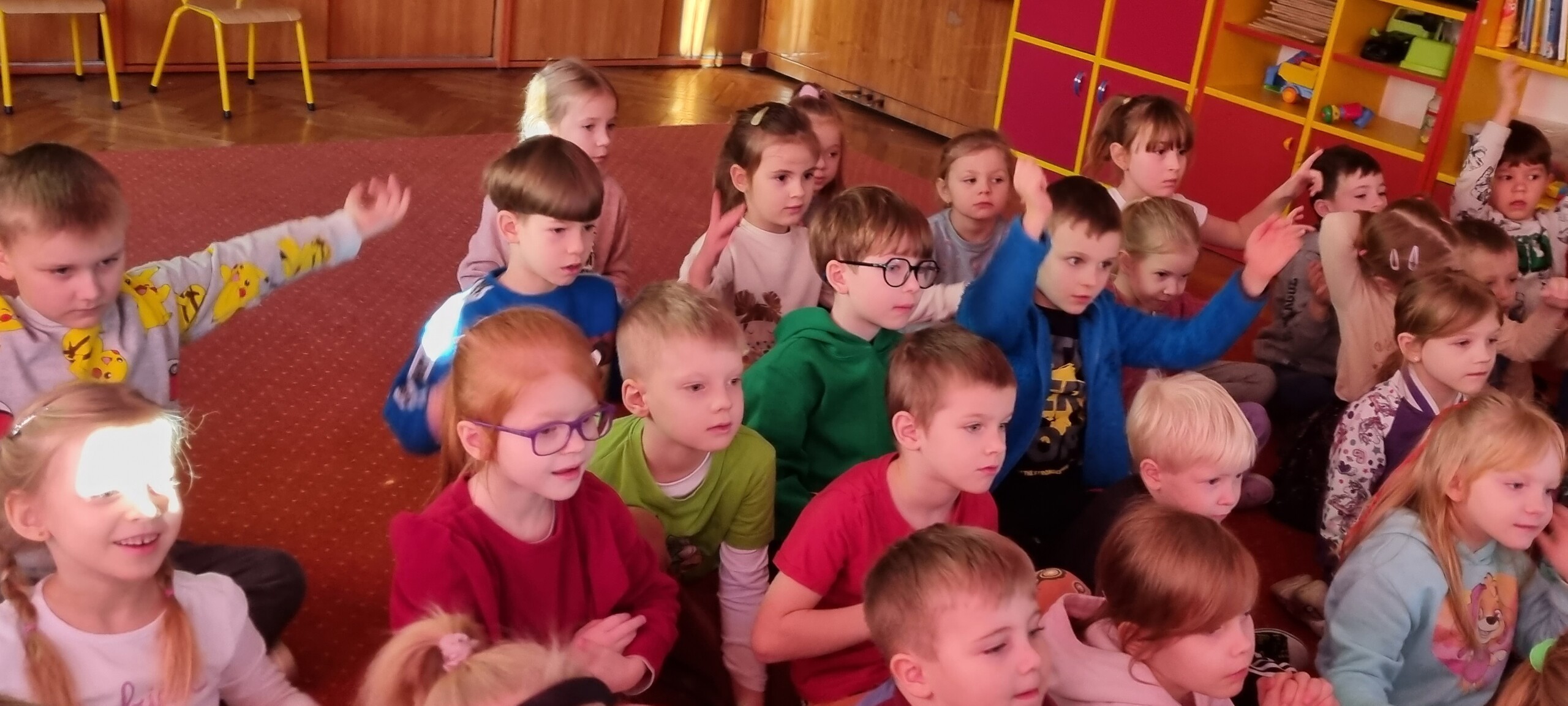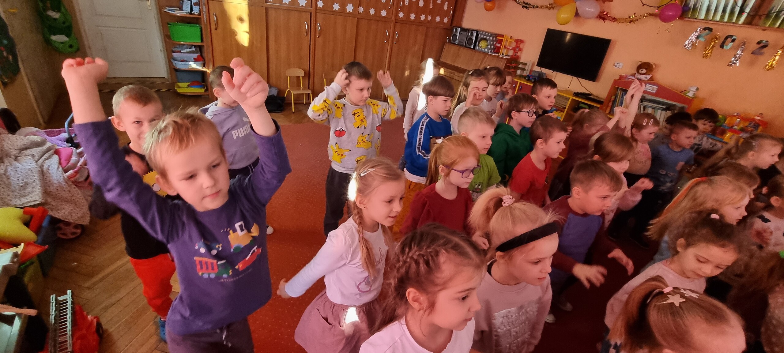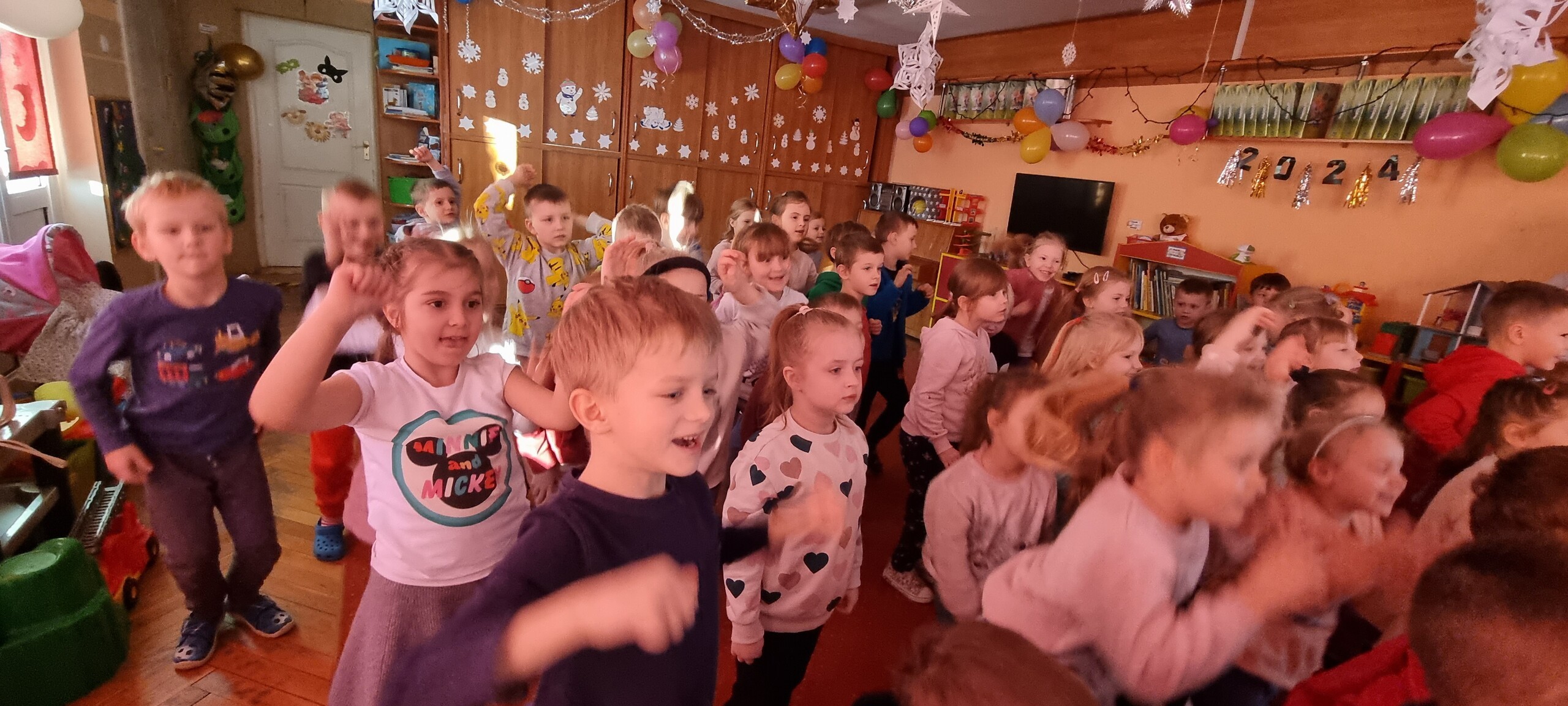 W poniedziałek 8 stycznia nasze przedszkole odwiedzili artyści z Teatru WIDOWISKO z Krakowa. Dzieci obejrzały przedstawienie świąteczne pt. ,, OPOWIEŚCI z LAPONII ''. Głównymi bohaterami był Elf i dziewczynka Zosia, którzy połączyli swoje siły w poszukiwaniu Mikołaja. Dzieci również wzięły aktywny udział w przedstawieniu, gdyż za sprawą serduszek przepełnionych miłością, udało się odnaleźć Świętego Mikołaja oraz magię Świąt.