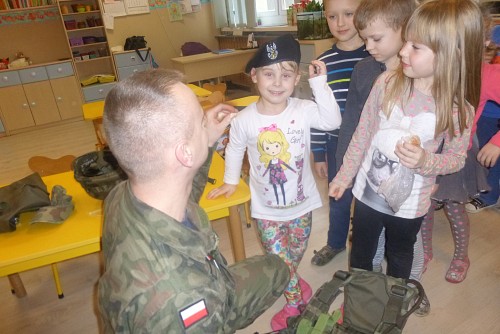 Żołnierska wizyta była bardzo ciekawa i dostarczyła ogromnych wrażeń - zwłaszcza chłopcom. Z pewnością na długo pozostanie w pamięci naszych przedszkolaków.