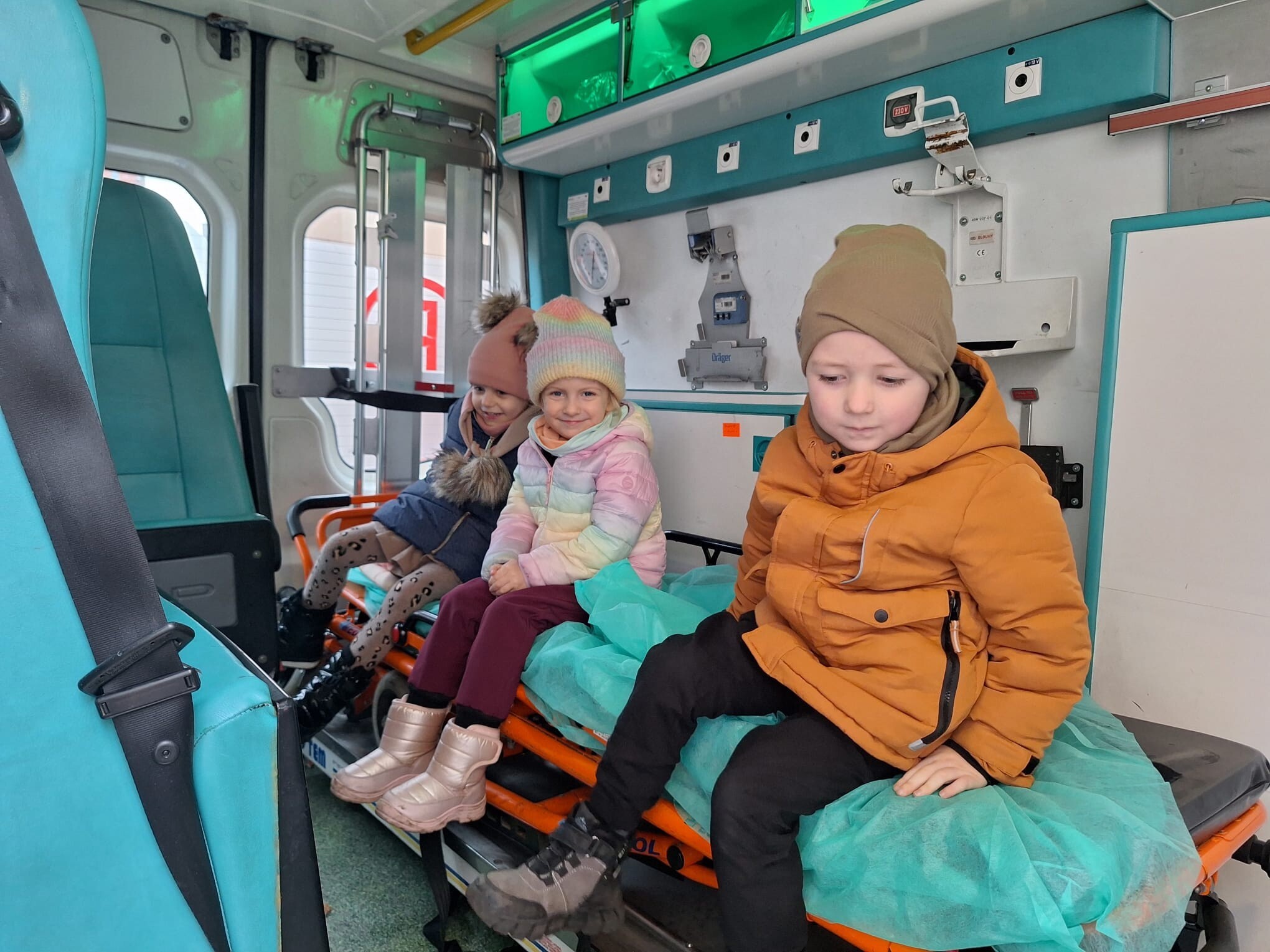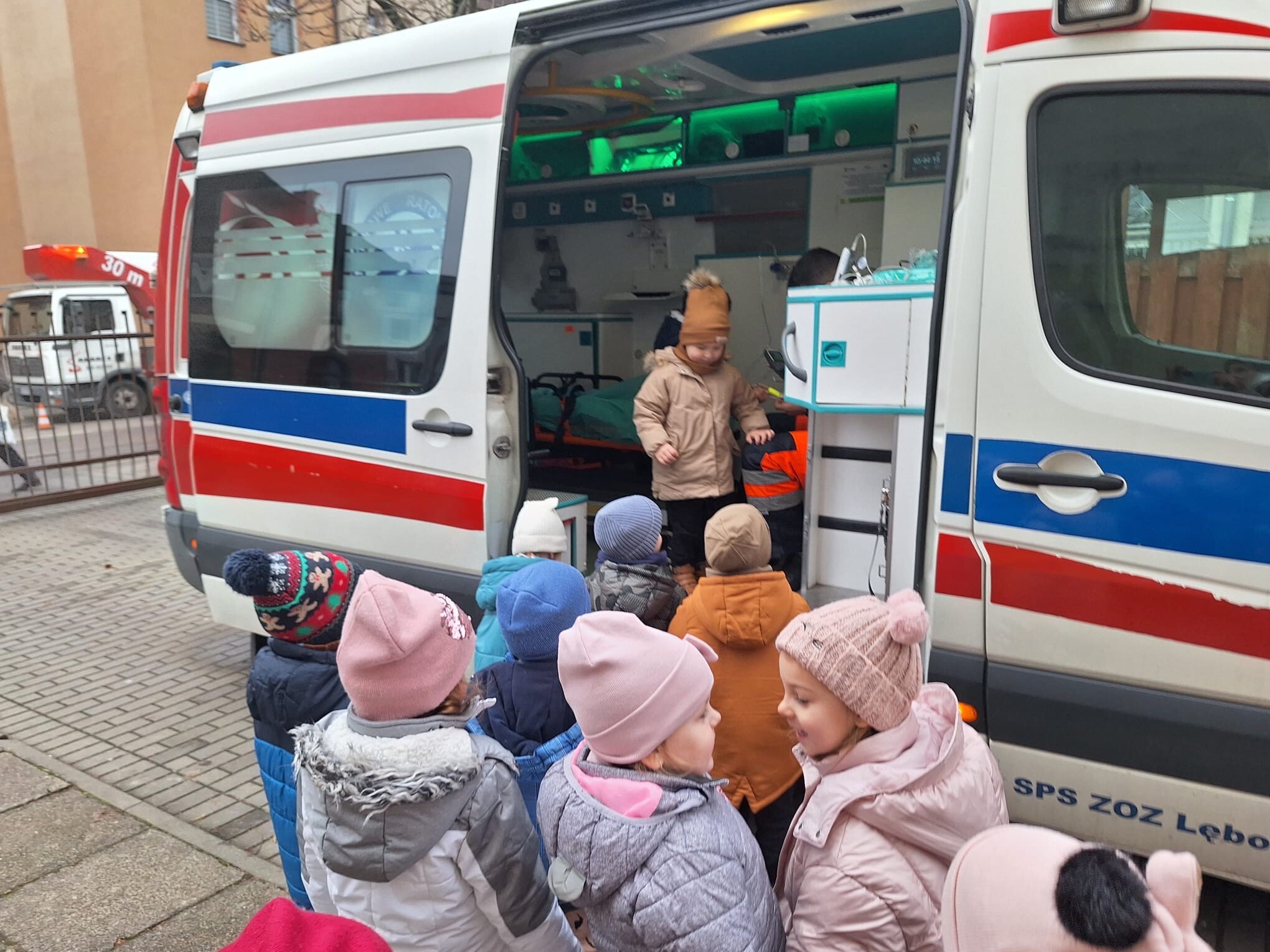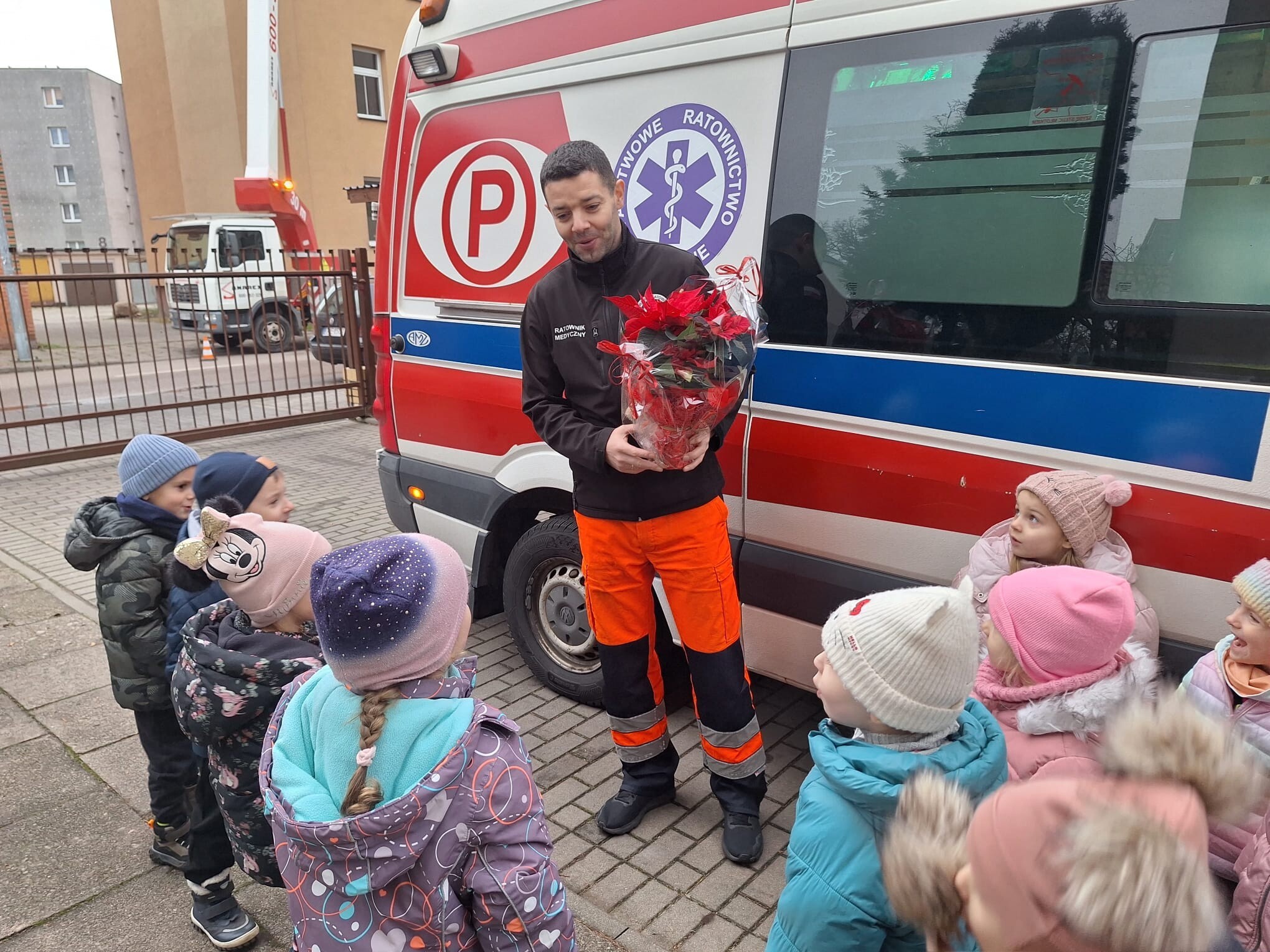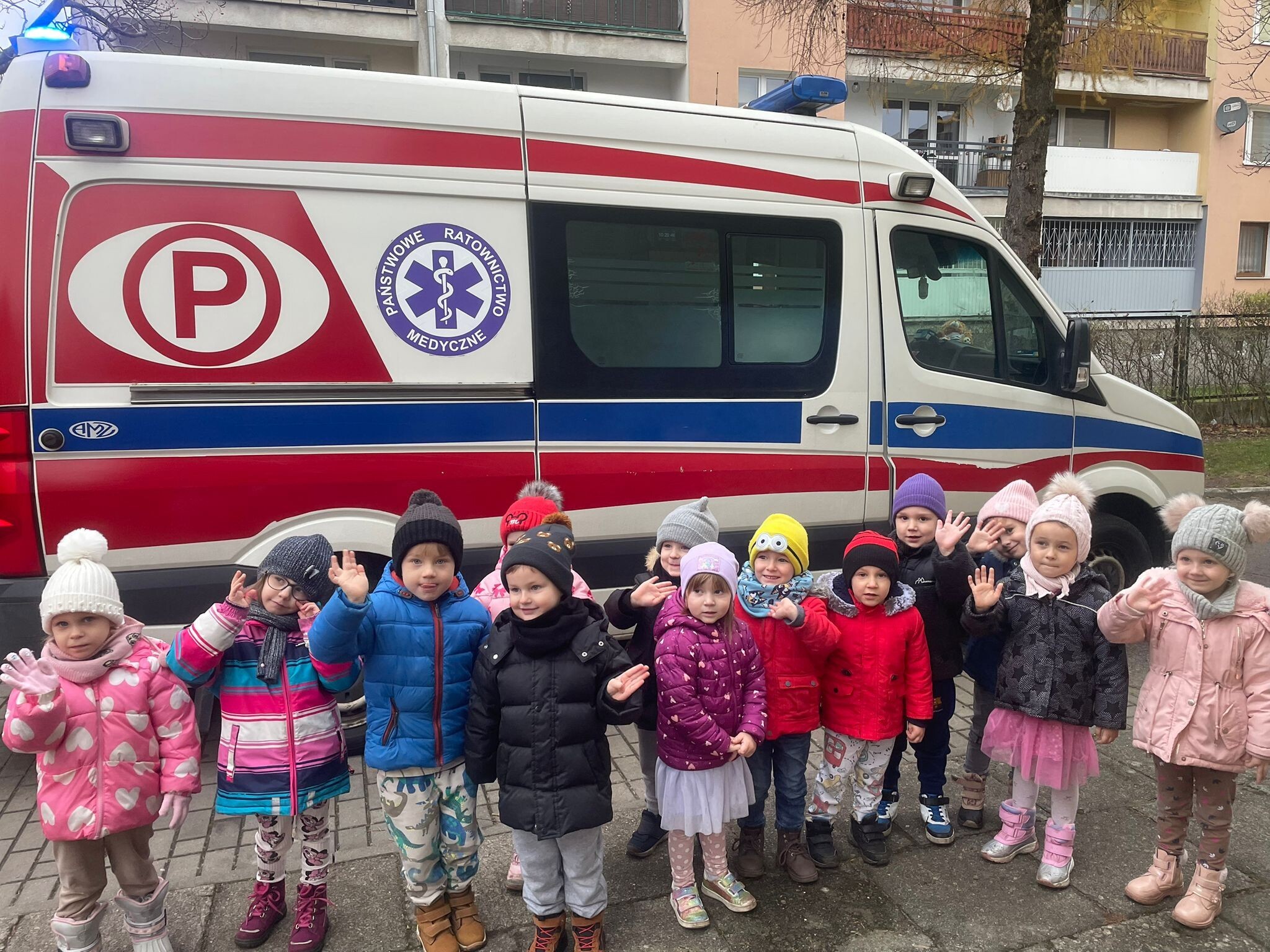 W piątkowe przedpołudnie 12 grudnia gościem w naszym przedszkolu był ratownik medyczny - Pan Robert Żółtowski, tata 5 - letniego Krzysia z grupy Słoneczek. To było nie tylko bardzo miłe, ale przede wszystkim bardzo ważne spotkanie, ponieważ na naszym przedszkolnym placu zabaw pojawiła się karetka pogotowia. Przedszkolaki mogły wejść do wnętrza pojazdu, zobaczyć, jak wyposażona jest karetka, poznać sprzęt medyczny, a co najważniejsze - nauczyć się, kiedy i jak dzwonić po pomoc. Dzieci mogły również posłuchać alarmowego sygnału dźwiękowego i poczuć się choć przez chwilę, jak ratownik medyczny podczas akcji ratowniczej.