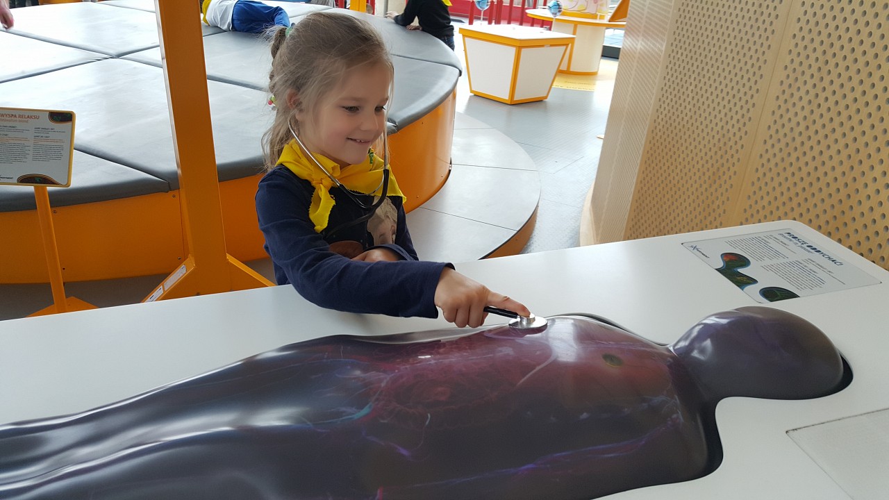 W ,, Hydroświecie '' przedszkolaki miały możliwość zdobycia wiedzy hydrologicznej. Na wystawie wcielając się w role inżynierów, konstruując i wprawiając w ruch skomplikowane mechanizmy, poznały działanie śluzy, tamy, śruby Archimedesa, a nawet miały szansę stworzyć wir wodny. W części zwanej ,, Akcja : człowiek '' dzieci dowiedziały się, jak zbudowane jest ciało ludzkie, jak działają zmysły, mogły też przeprowadzić wirtualną operację. Galeria ,, Drzewo życia'' przybliżyła dzieciom świat przyrody. Mogły na własnej skórze doświadczyć trzęsienia ziemi, a także sprawdzić, jak widzą zwierzęta. Dużym powodzeniem cieszyło się szukanie tropów zwierząt i zjazd z olbrzymiej zjeżdżalni. Wystawa ,, Niewidoczne siły'' udowodniła, że nawet przedszkolaki, które nie znają wzorów i wykresów mogą dziedzinę nauki, jaką jest fizyka starać się zrozumieć. Interaktywne stanowiska pozwoliły dzieciom przyswoić naturę dźwięku czy istotę elektryczności i magnetyzmu.