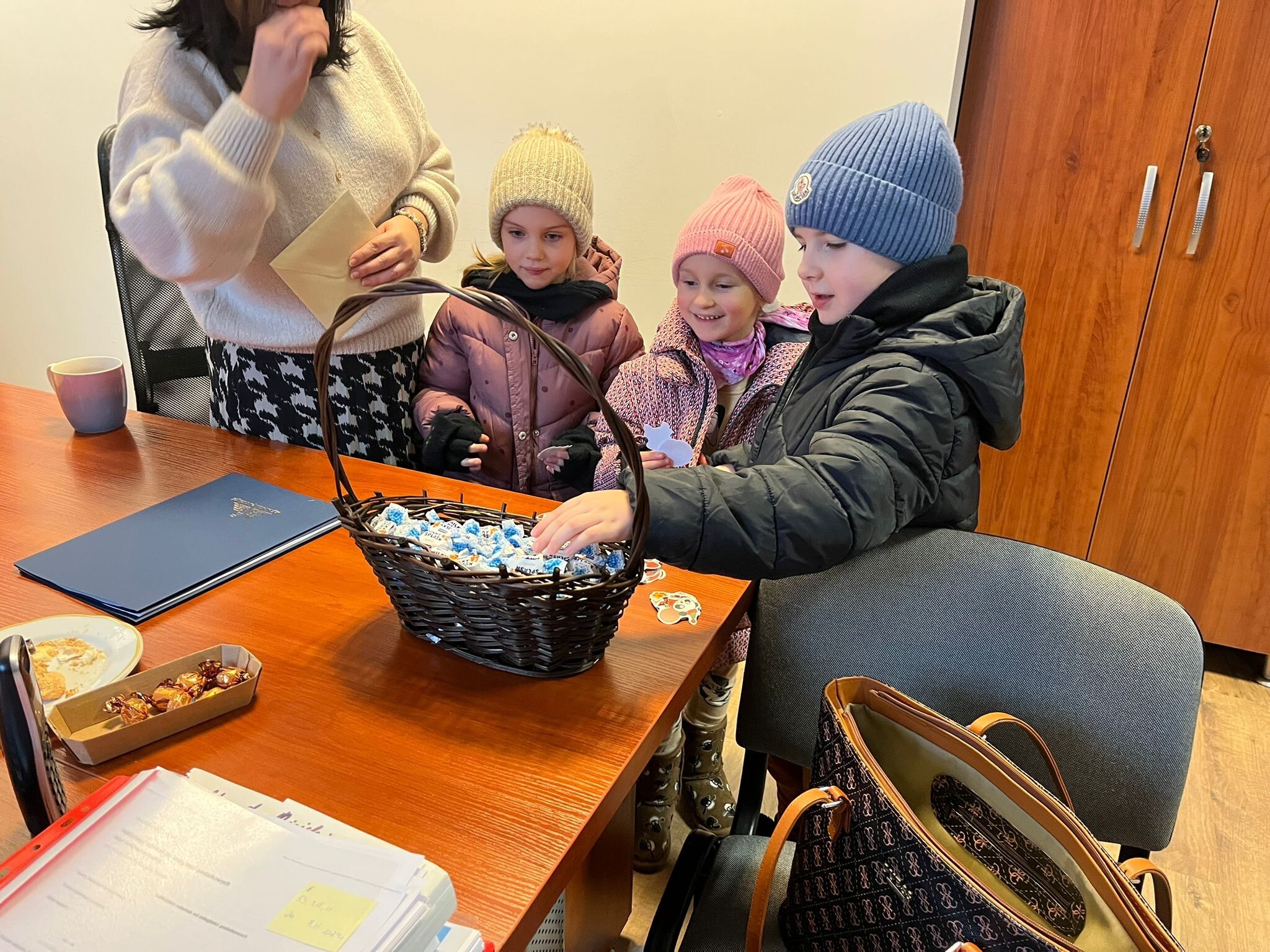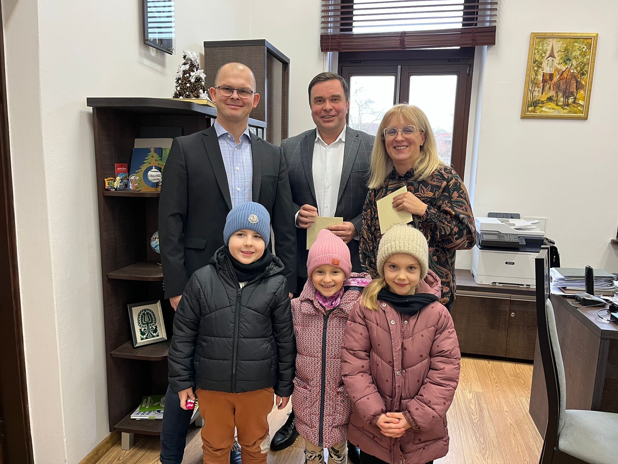 Z życzeniami świątecznymi do Lęborskiego Ratusza udały się najstarsze dzieci z naszego przedszkola. KOTKI, odwiedziły ratusz. W ramach świątecznej wizyty przedszkolaki złożyły kartki samodzielnie wykonane i świąteczne życzenia Burmistrzowi Miasta Jarosławowi Litwin, zastępcy burmistrza Krzysztofowi Król oraz Panią z wydziału oświaty. Pan Burmistrz również wszystkim życzył WESOŁYCH ŚWIĄT.