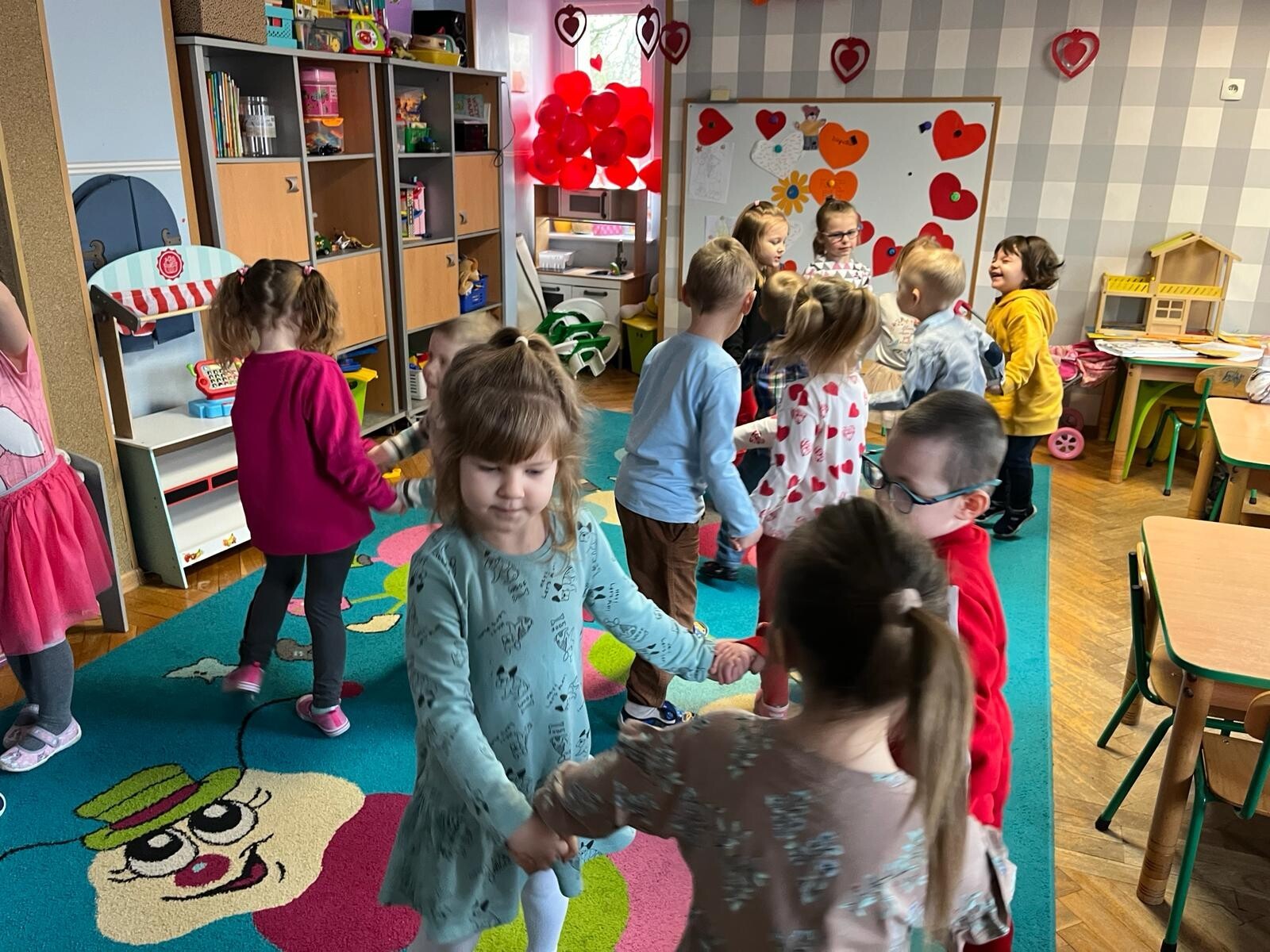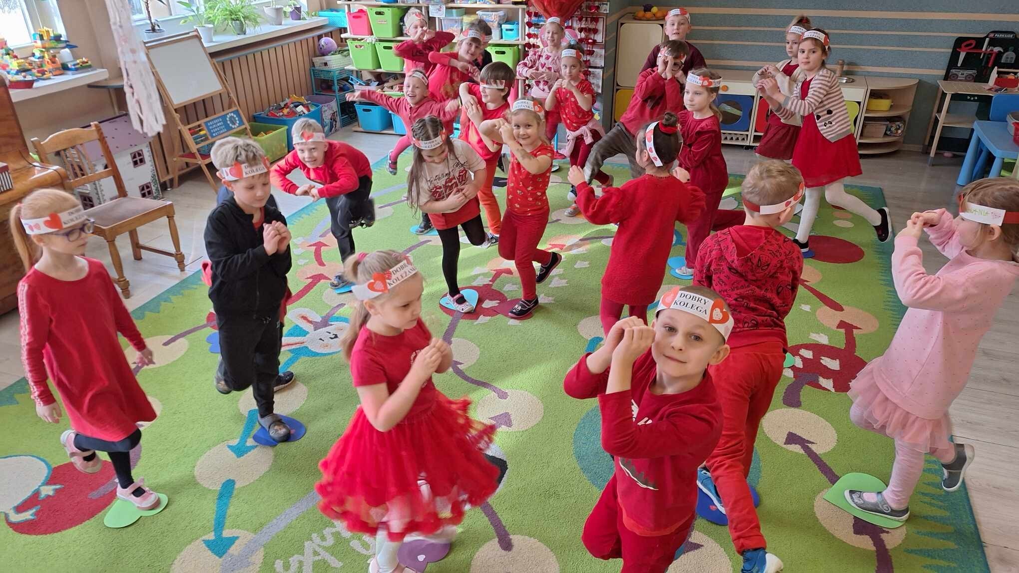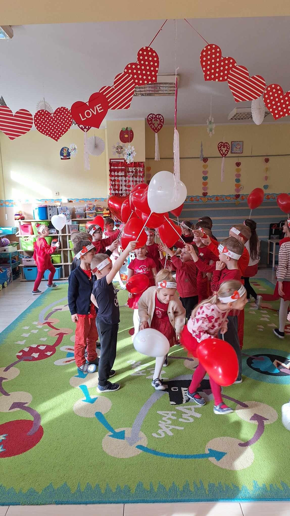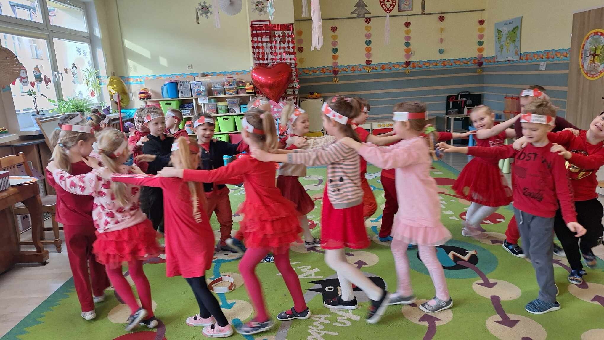 Walentynkowy Dzień w Przedszkolu - to rozbrzmiewające od samego rana piosenki o miłości, czerwone stroje i wiszące wszędzie czerwone serduszka.