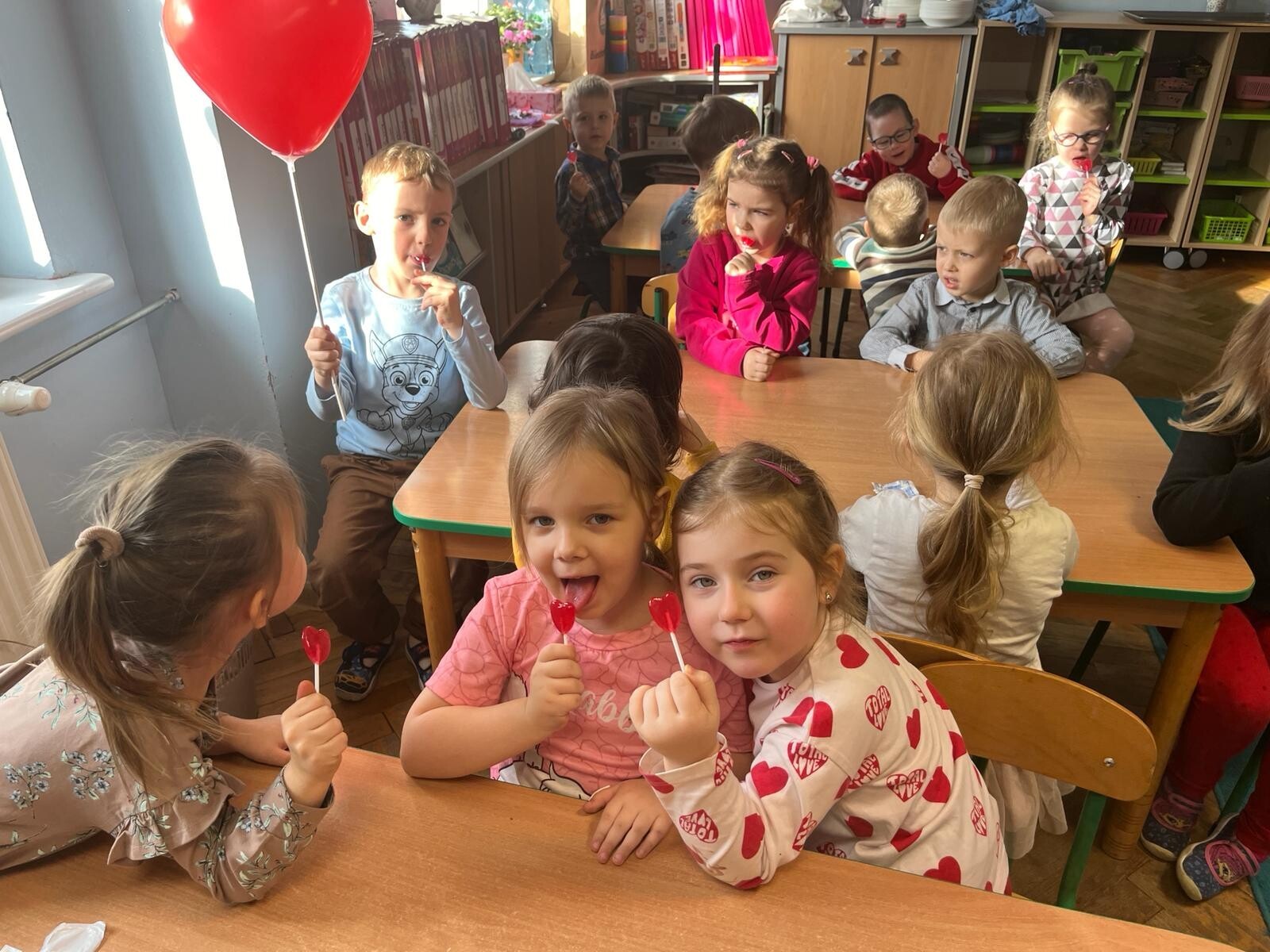W tym dniu wszystkie dzieci oraz panie w przedszkolu zostały obdarowane serduszkami - symbolem miłości i przyjaźni. Były zabawy, konkursy, tańce, w których na różne sposoby dzieci przekazywały sobie gesty przyjaźni i radości. W tym dniu nie zabrakło również zdrowych przekąsek, soków owocowych i ciasteczek w kształcie serduszek