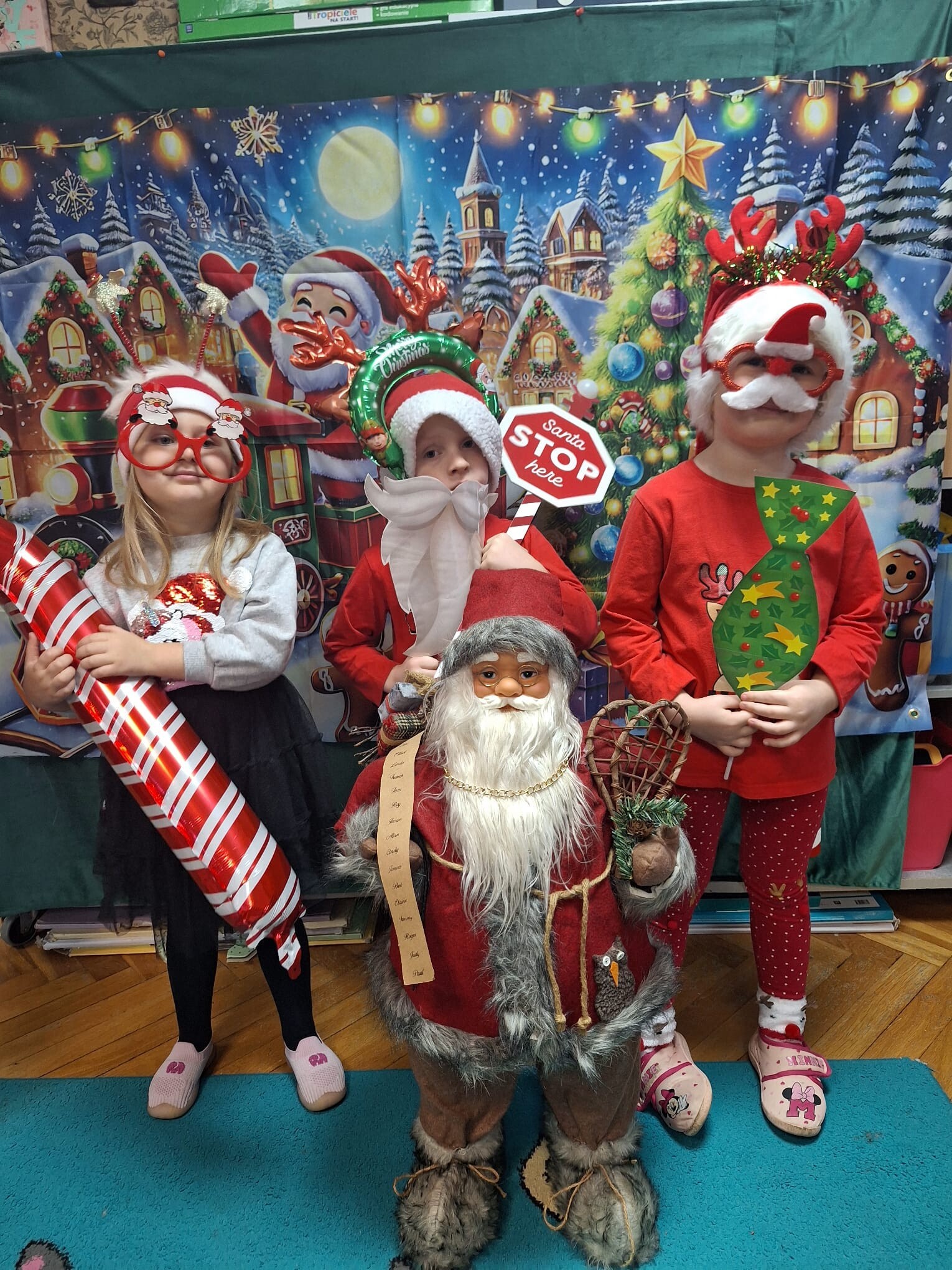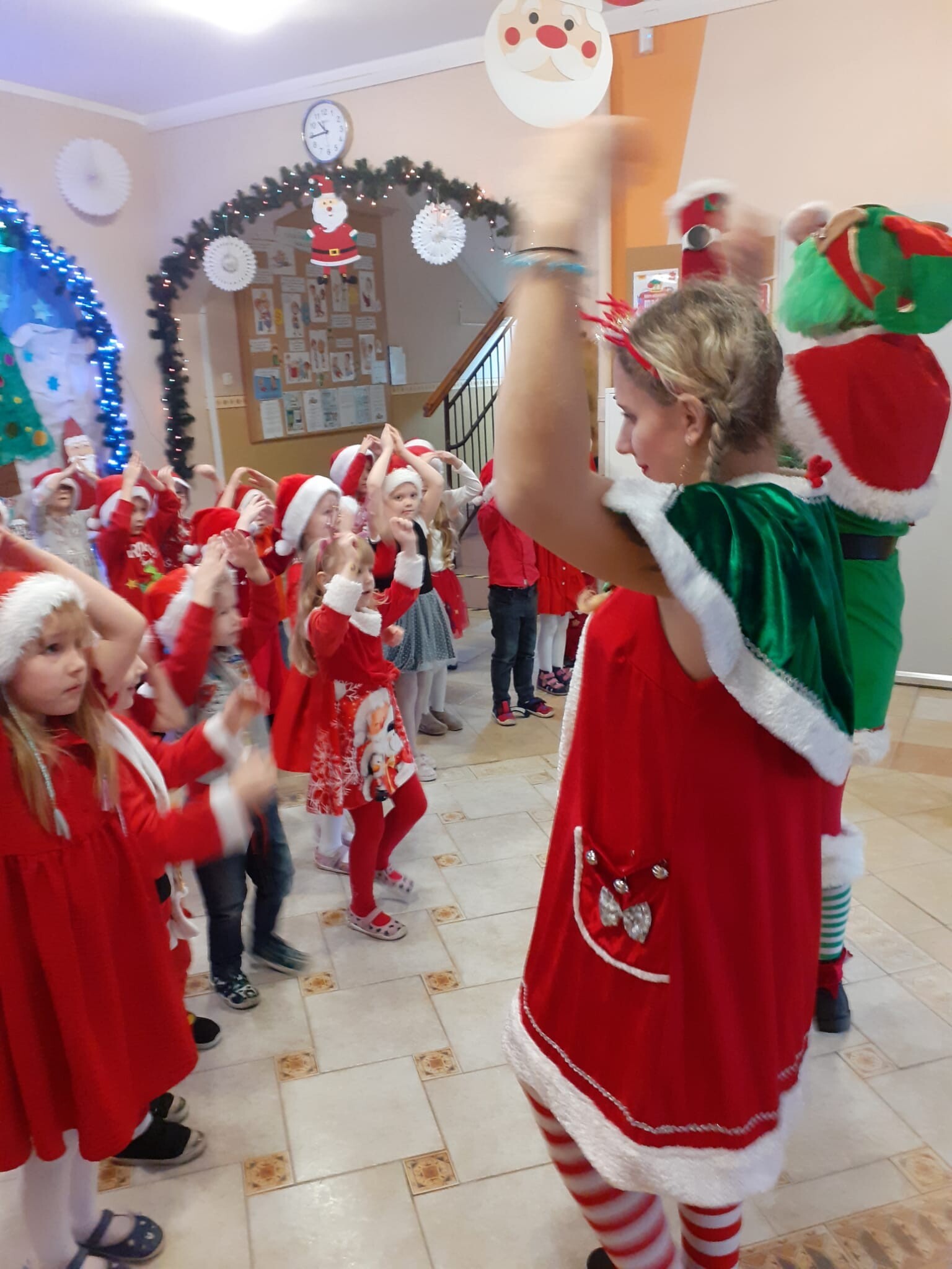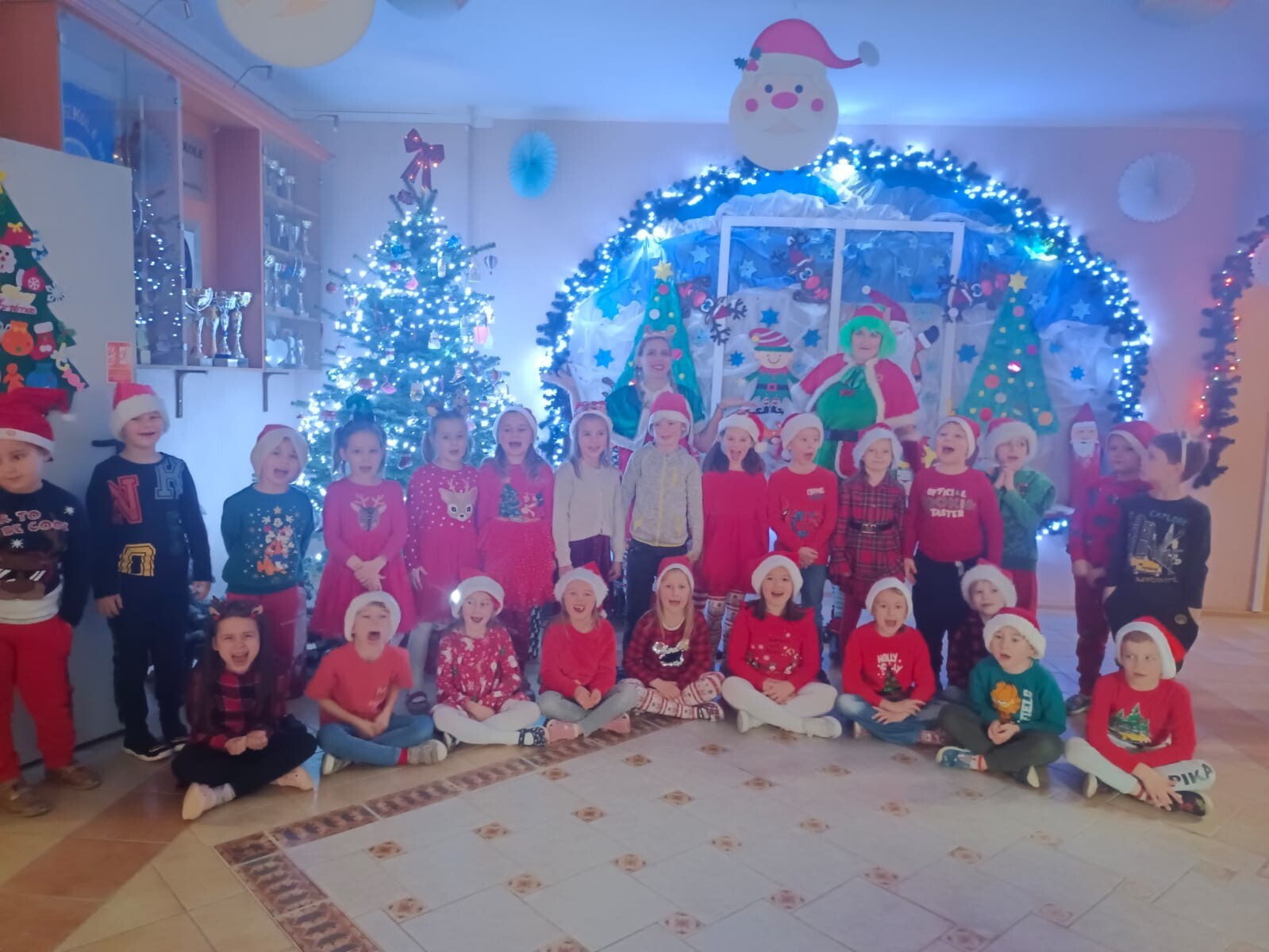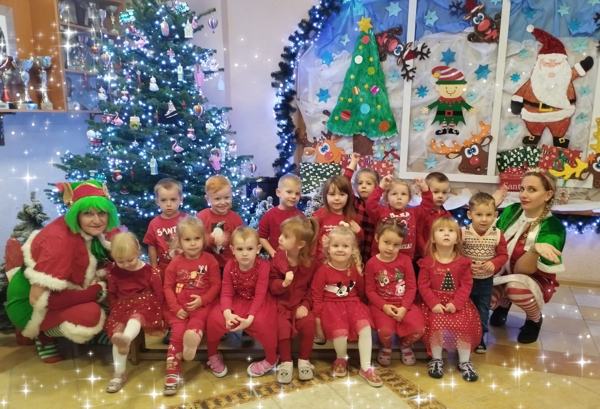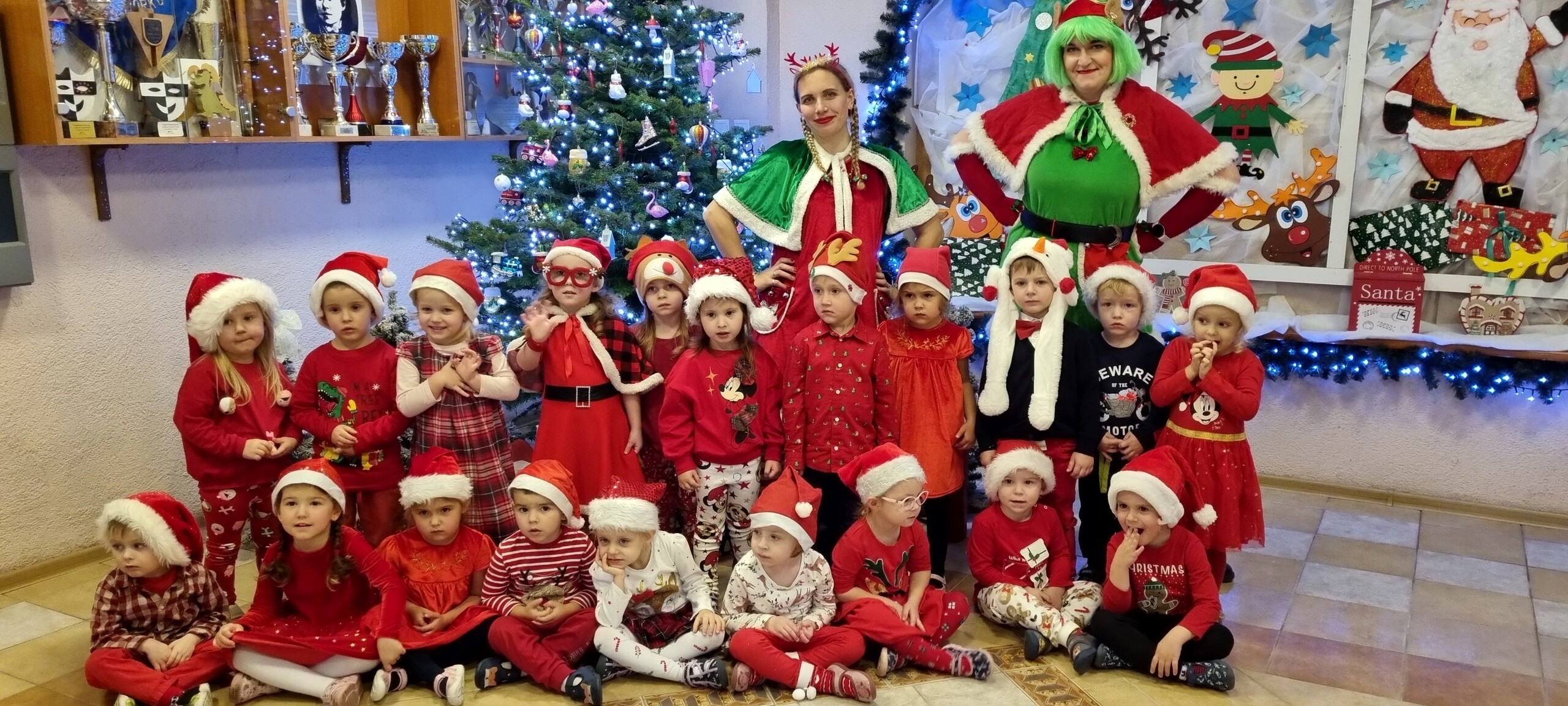 MIKOŁAJKOWA TRADYCJA jest naszym dzieciom dobrze znana. Jak co roku nasze jedynkowe przedszkole Święty Mikołaj odwiedził w piątek 6 grudnia. Wszystkie przedszkolaki w tym dniu ubrane w czerwone czapeczki i jak same bardzo często podkreślały - wyjątkowo grzeczne w tym roku, z niecierpliwością oczekiwały gościa z dalekiej i mroźnej Laponii. Oczywiście przybył razem ze swoją śnieżynką i elfami, mimo wielu, wielu przeszkód. Zmęczony daleką podróżą, ulubiony święty przedszkolaków usiadł na specjalnym fotelu, by wypić ciepłe mleczko, poczęstować się pysznymi ciasteczkami owsianymi, wysłuchać niespodzianek w postaci wierszyków, piosenek i świątecznych obrazków przygotowanych przez dzieci. Następnie zaprosiliśmy naszego specjalnego gościa do wspólnej zabawy.