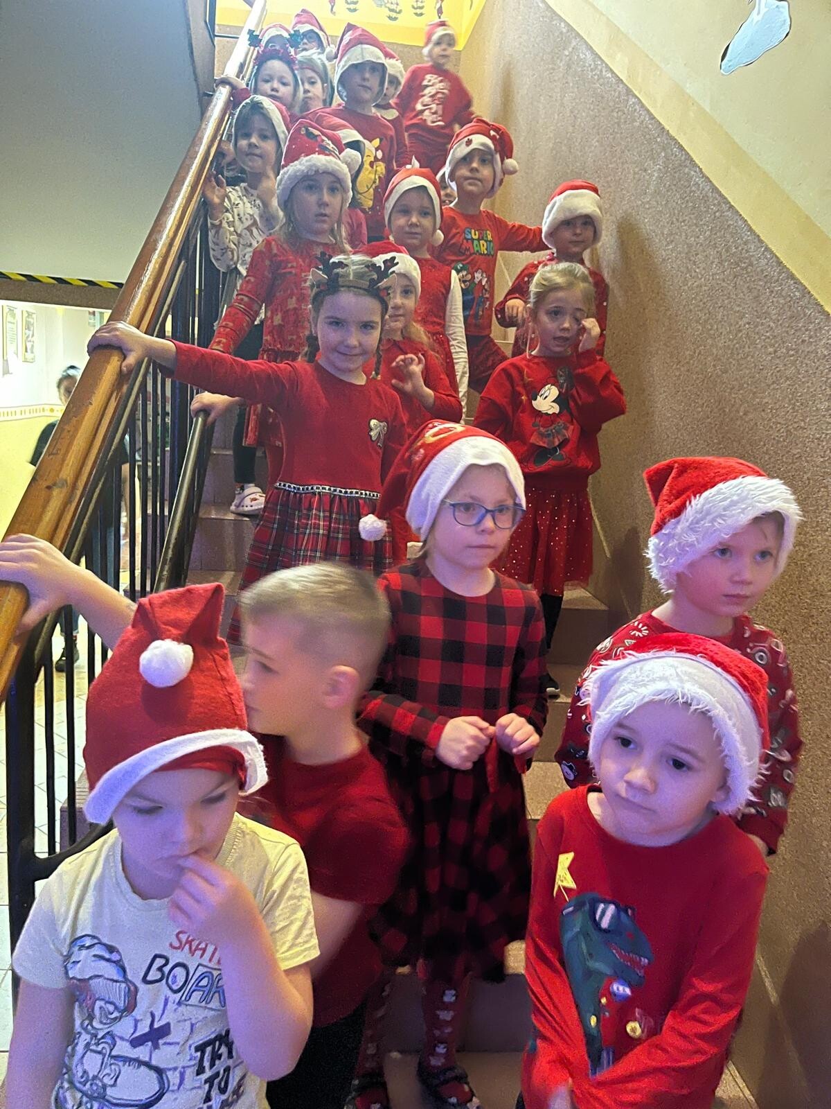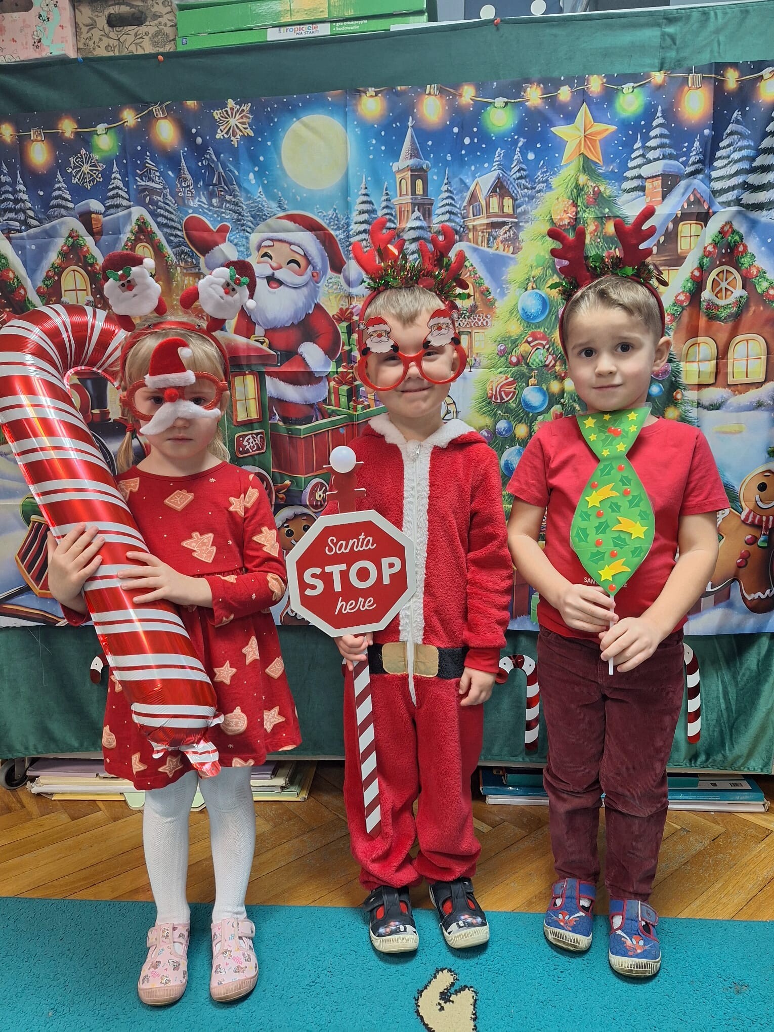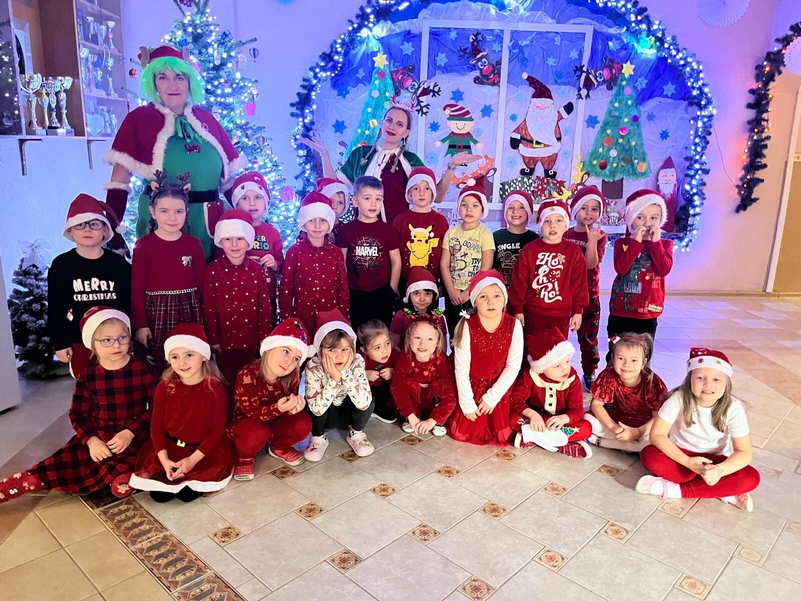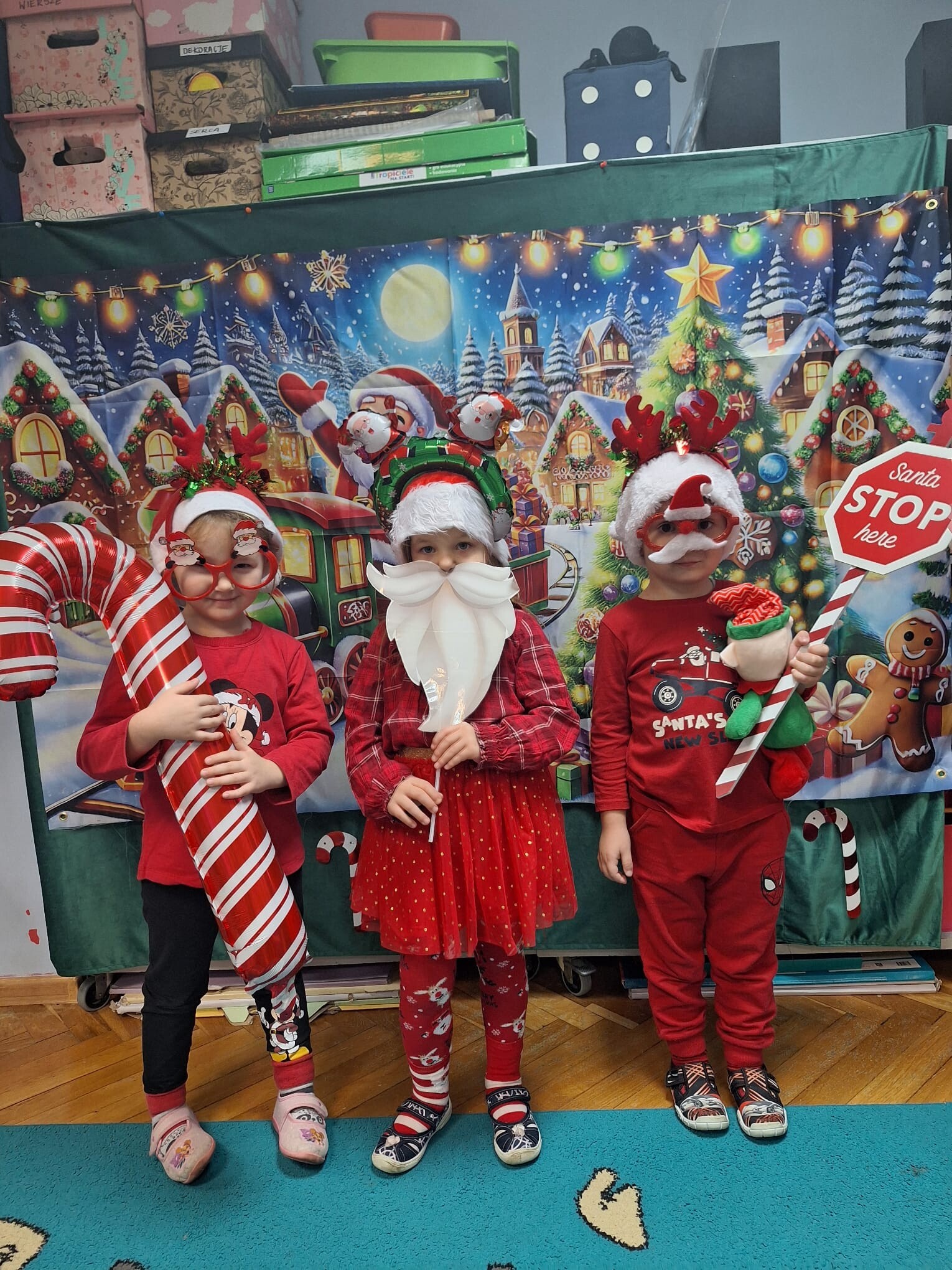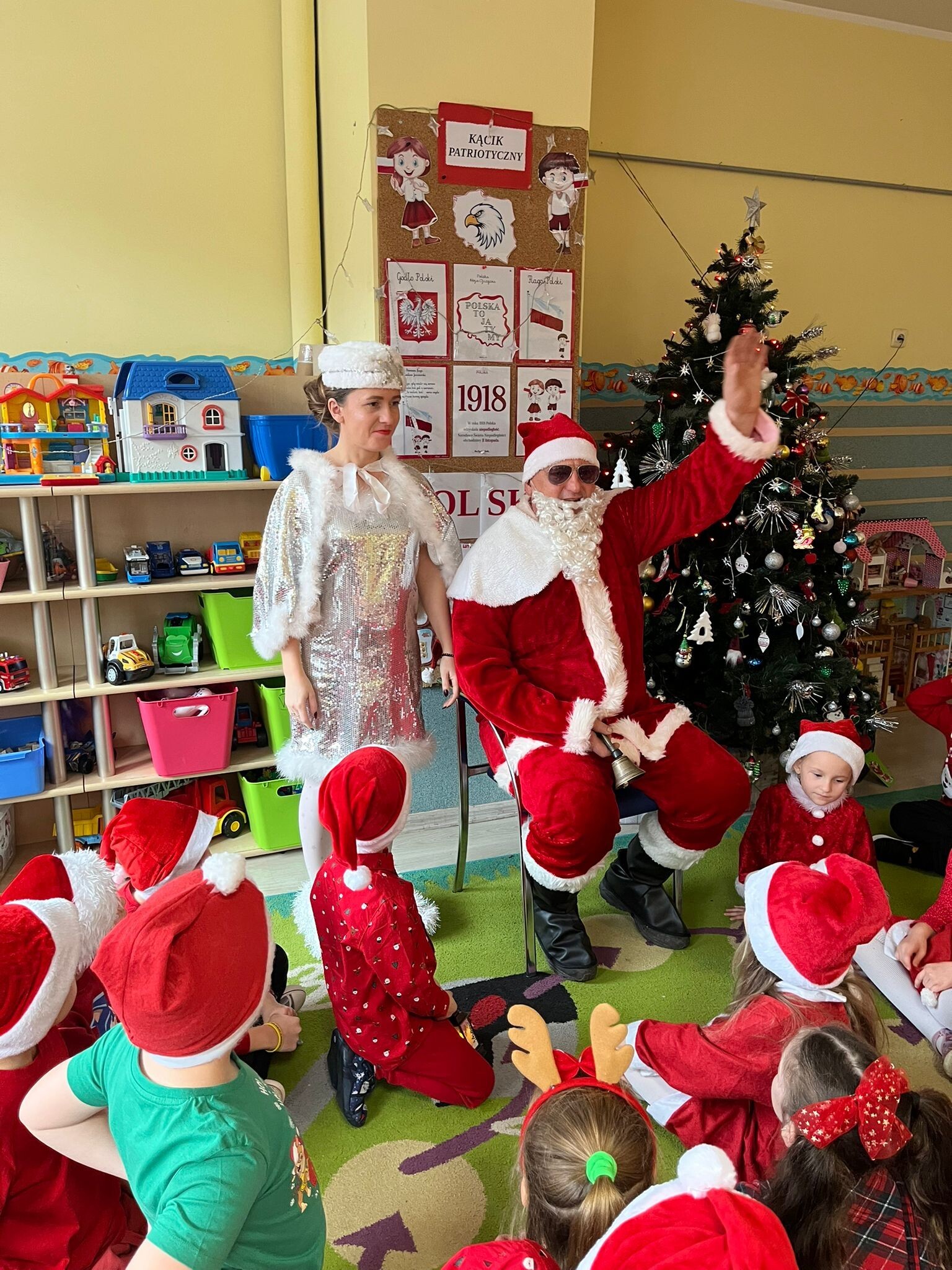 MIKOŁAJKOWA TRADYCJA jest naszym dzieciom dobrze znana. Jak co roku nasze jedynkowe przedszkole Święty Mikołaj odwiedził w piątek 6 grudnia. Wszystkie przedszkolaki w tym dniu ubrane w czerwone czapeczki i jak same bardzo często podkreślały - wyjątkowo grzeczne w tym roku, z niecierpliwością oczekiwały gościa z dalekiej i mroźnej Laponii. Oczywiście przybył razem ze swoją śnieżynką i elfami, mimo wielu, wielu przeszkód. Zmęczony daleką podróżą, ulubiony święty przedszkolaków usiadł na specjalnym fotelu, by wypić ciepłe mleczko, poczęstować się pysznymi ciasteczkami owsianymi, wysłuchać niespodzianek w postaci wierszyków, piosenek i świątecznych obrazków przygotowanych przez dzieci. Następnie zaprosiliśmy naszego specjalnego gościa do wspólnej zabawy.