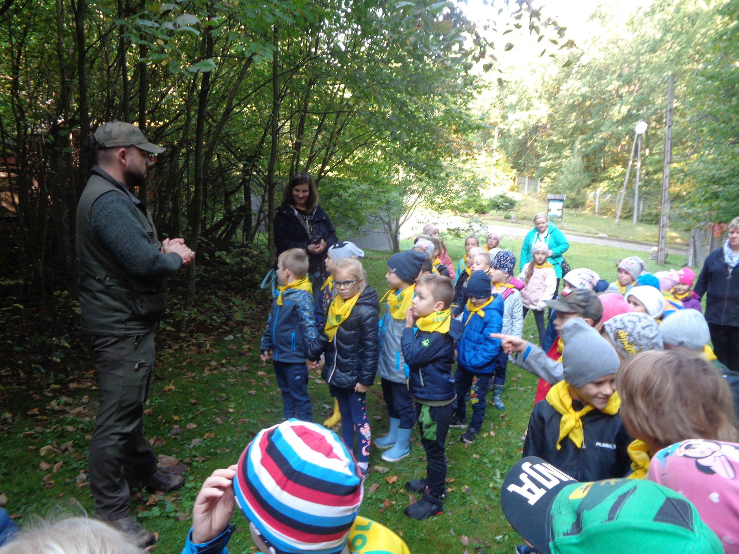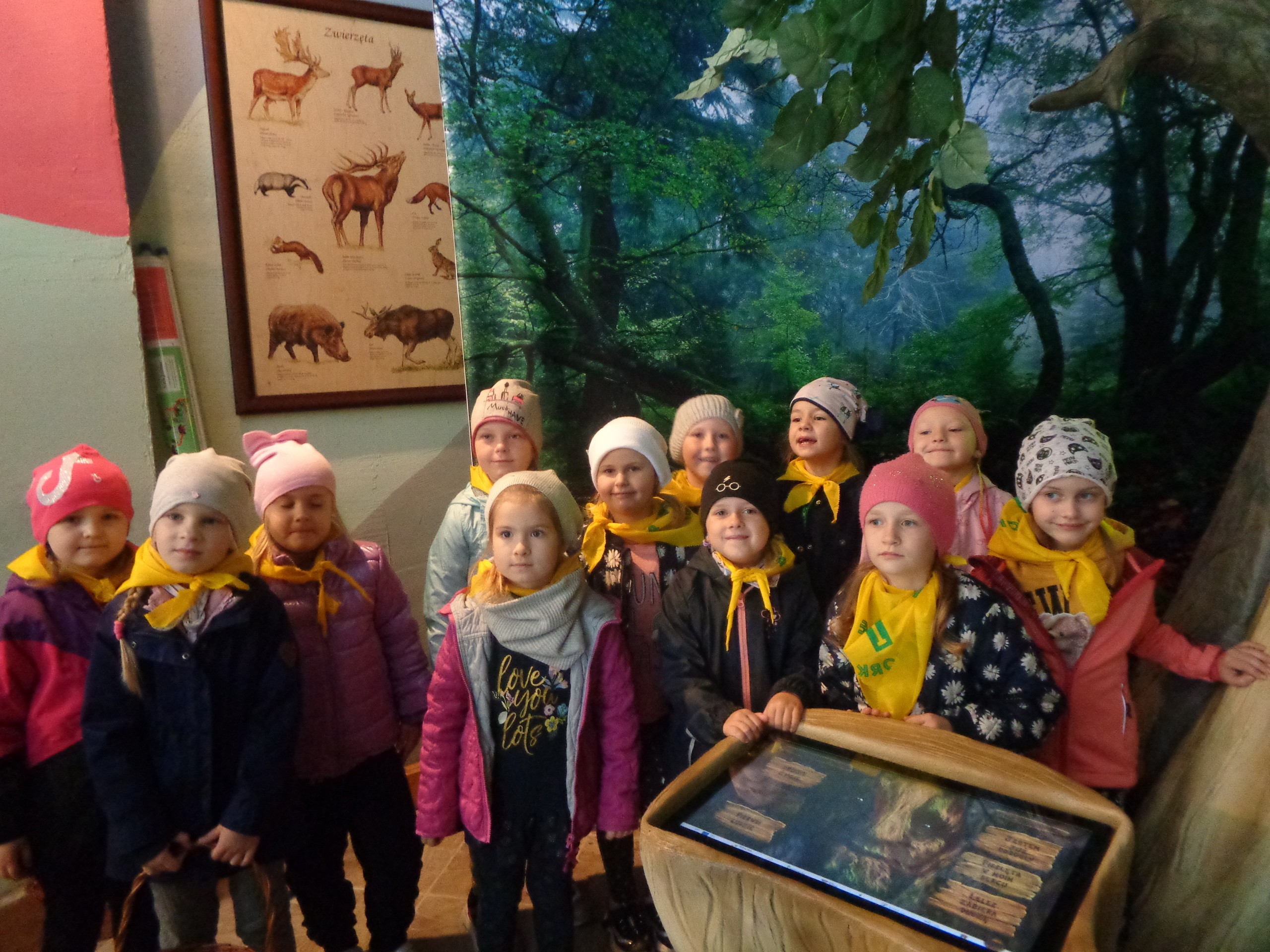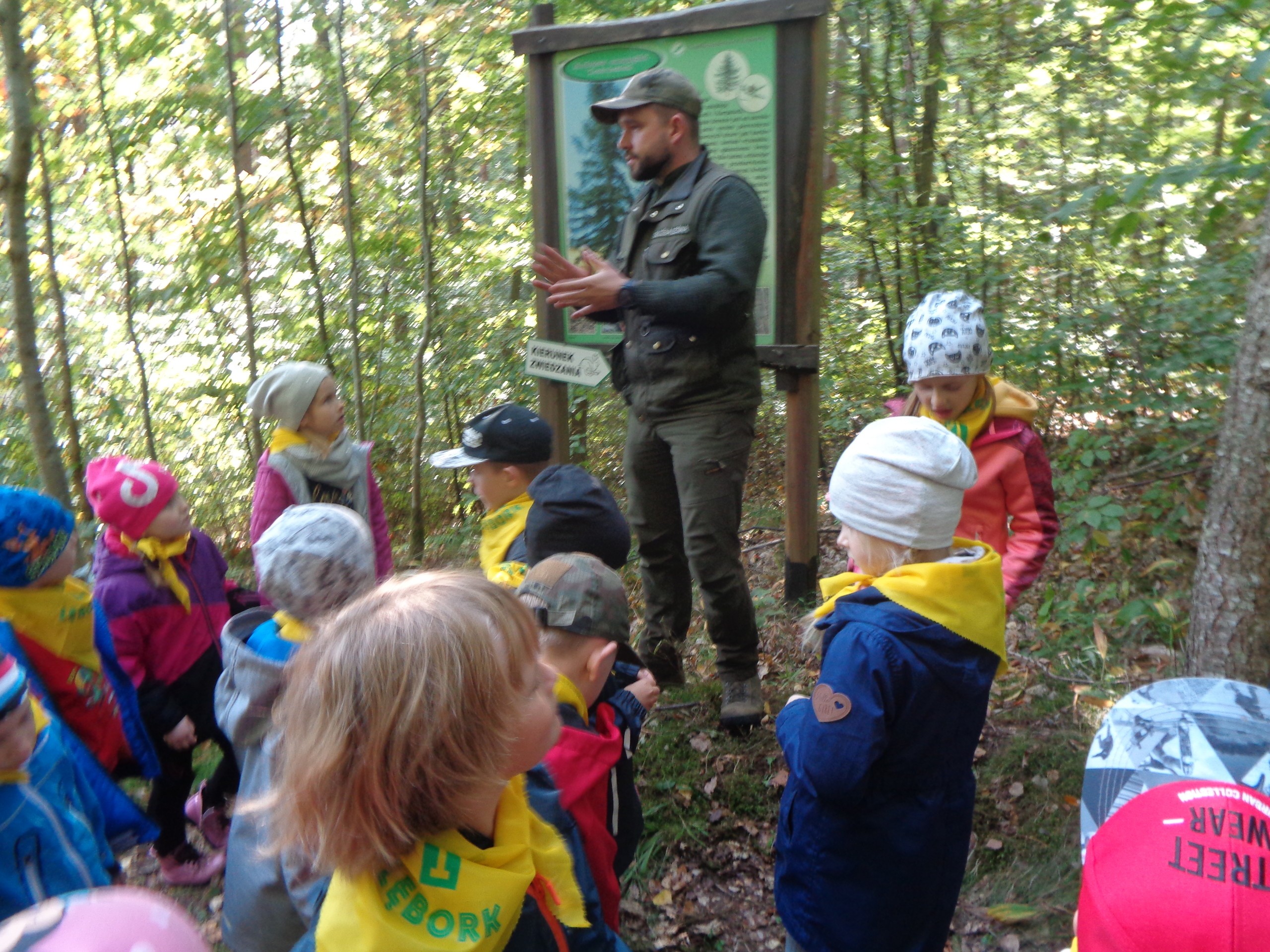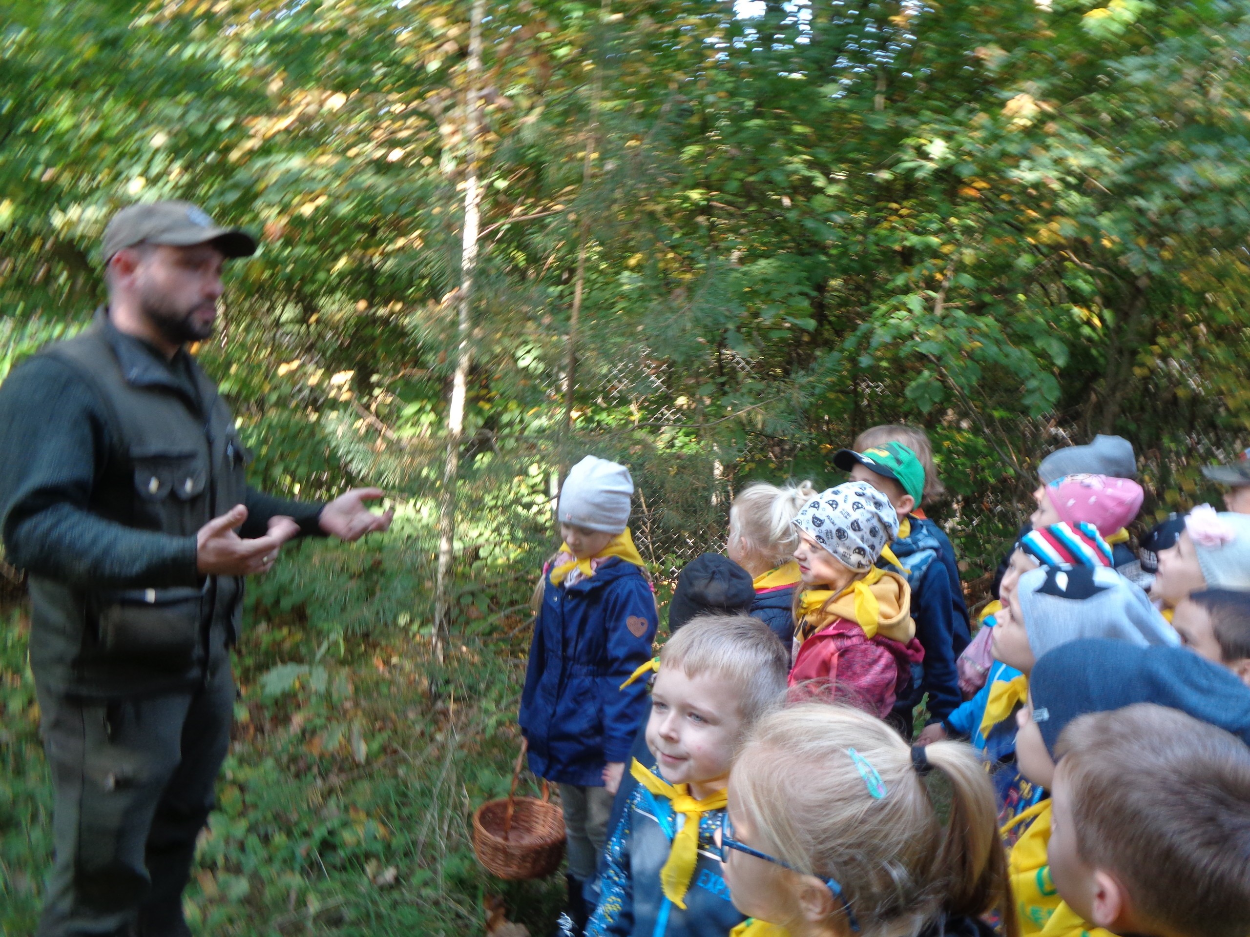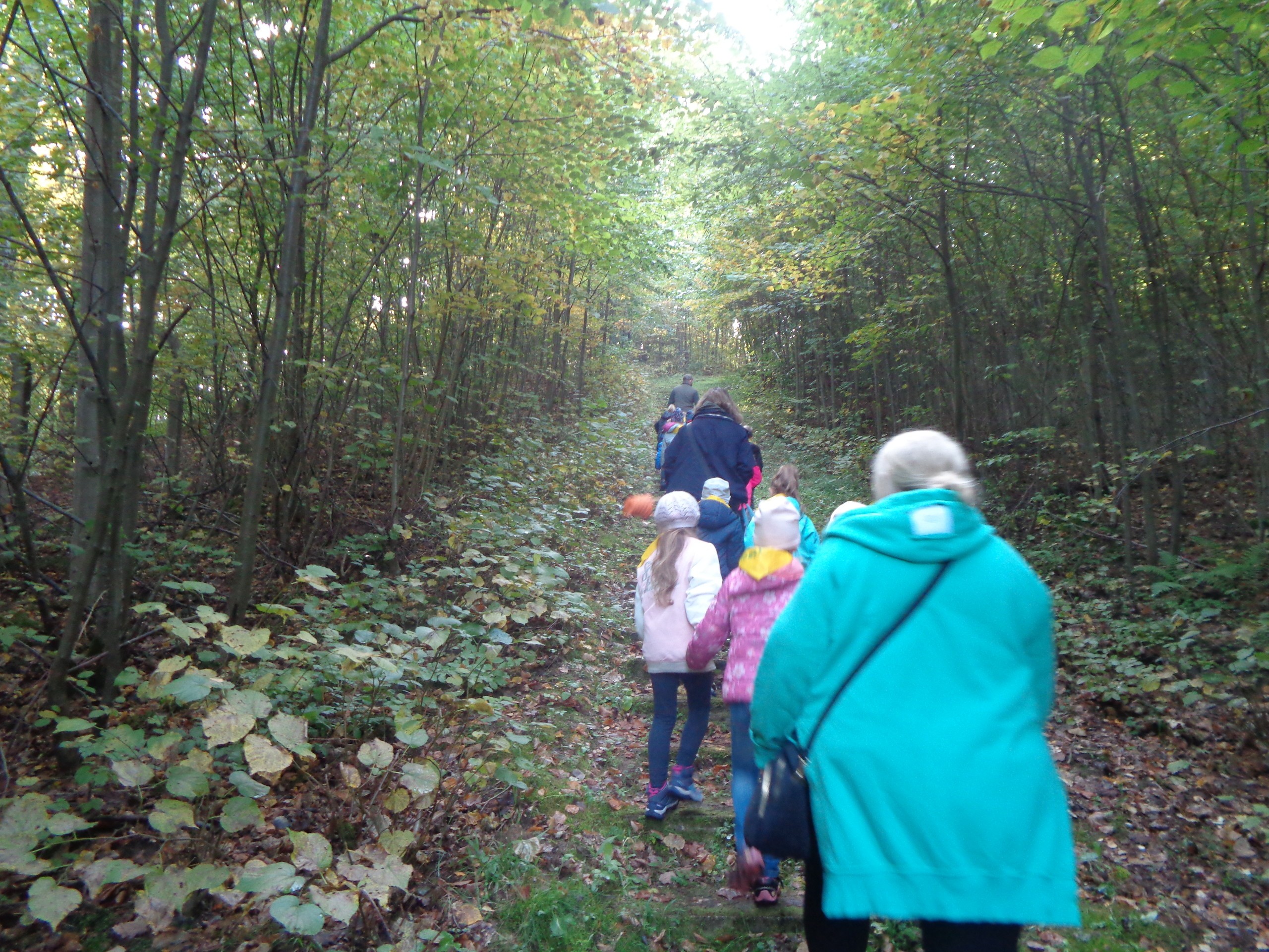 Korzystając z pięknej jesiennej pogody, dzieci z grup 5-6 letnich wybrały się na wycieczkę do lasu UROCZYSKO DRĘTOWO- jest to centrum edukacji przyrodniczo -leśnej Nadleśnictwa Lębork. Na miejscu przedszkolaków przywitali pracownicy Nadleśnictwa Lębork, którzy opowiadali o swoim podstawowym obowiązku, jakim jest dbanie o las. Przypomnieli dzieciom jak należy zachowywać się w lesie. Wiele radości sprawiły dzieciom wędrówki po ścieżce edukacyjnej. Dzieci z zainteresowaniem obserwowały otaczającą przyrodę oraz gromadziły do koszyczków dary lasu. Wycieczkę zakończył wspólny piknik- ognisko oraz pieczenie kiełbasek.