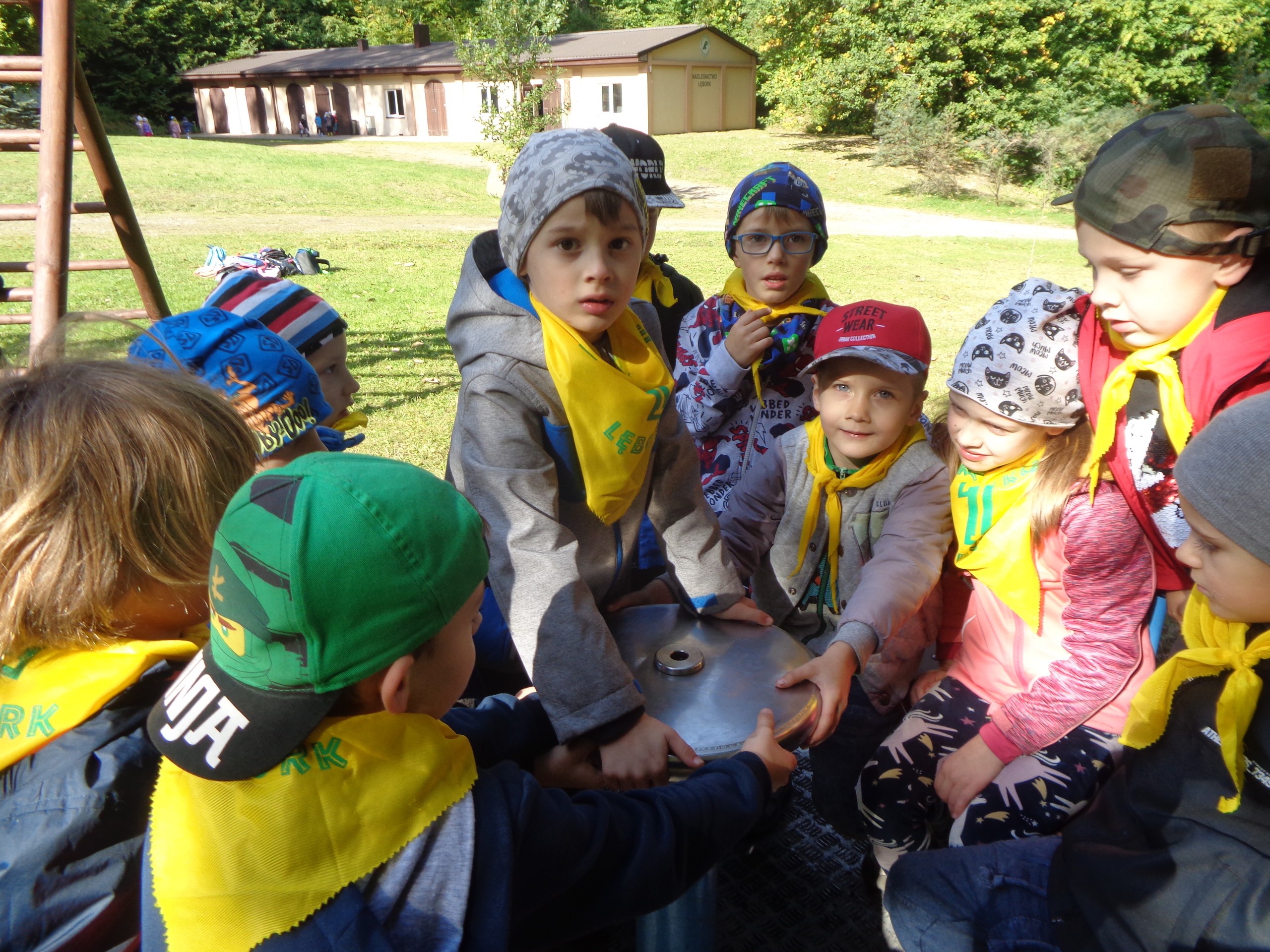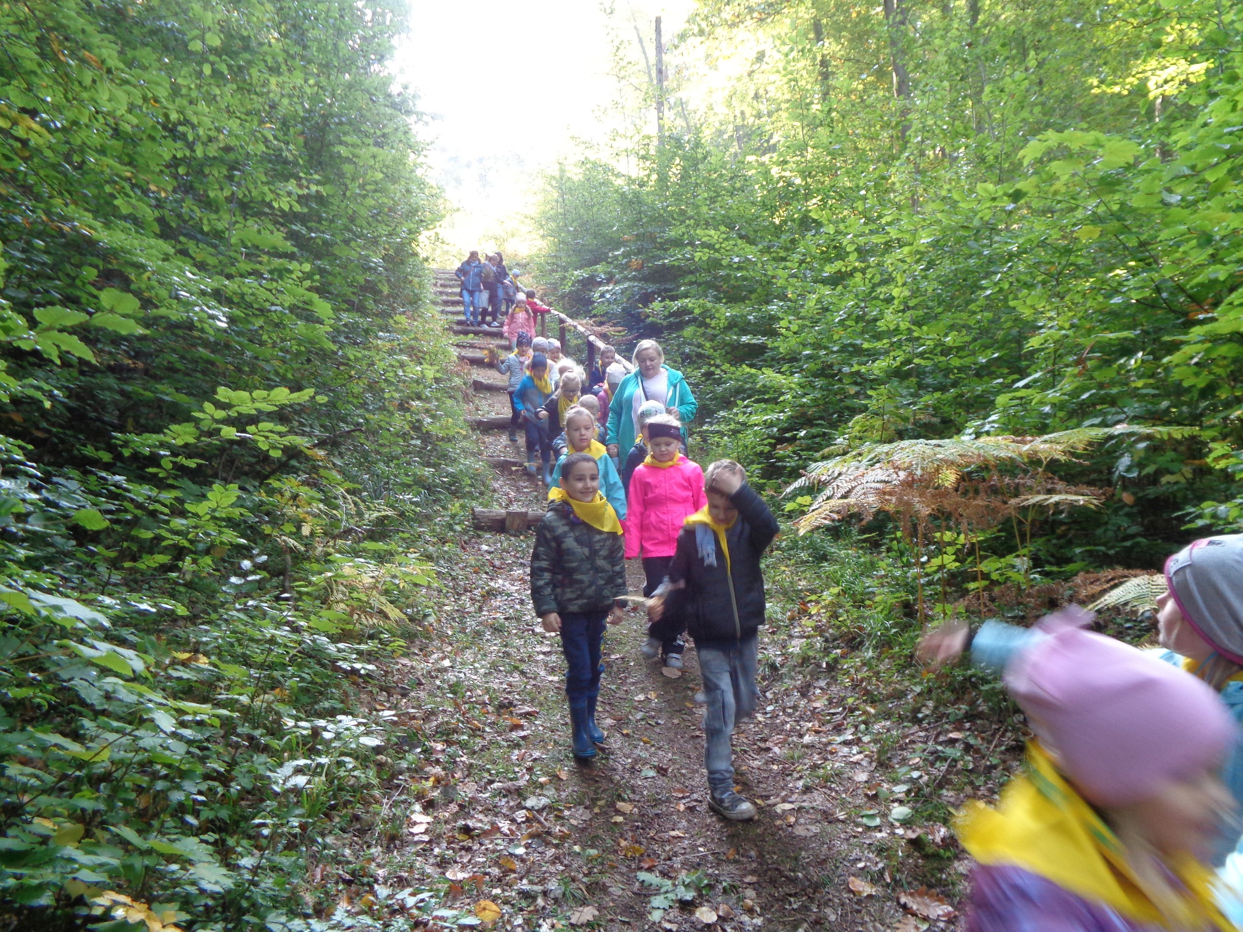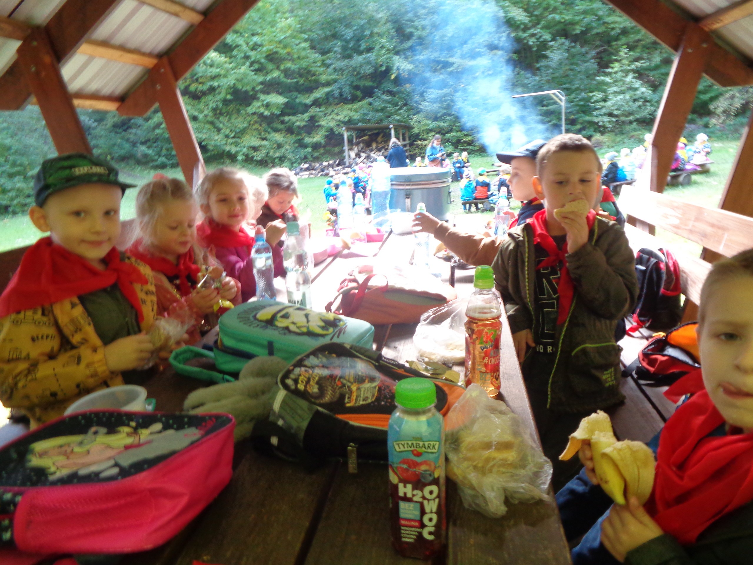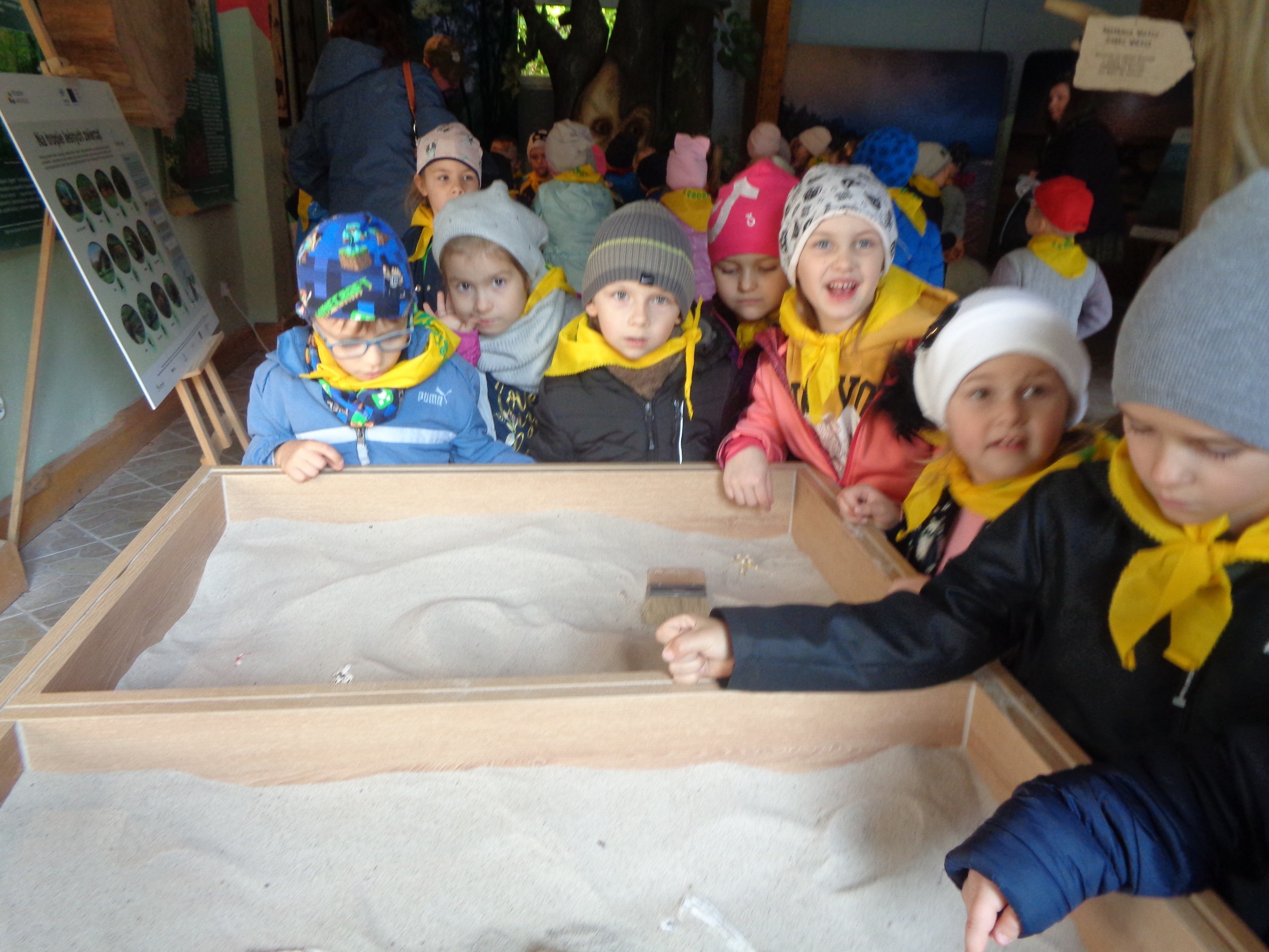 Korzystając z pięknej jesiennej pogody, dzieci z grup 5-6 letnich wybrały się na wycieczkę do lasu UROCZYSKO DRĘTOWO- jest to centrum edukacji przyrodniczo -leśnej Nadleśnictwa Lębork. Na miejscu przedszkolaków przywitali pracownicy Nadleśnictwa Lębork, którzy opowiadali o swoim podstawowym obowiązku, jakim jest dbanie o las. Przypomnieli dzieciom jak należy zachowywać się w lesie. Wiele radości sprawiły dzieciom wędrówki po ścieżce edukacyjnej. Dzieci z zainteresowaniem obserwowały otaczającą przyrodę oraz gromadziły do koszyczków dary lasu. Wycieczkę zakończył wspólny piknik- ognisko oraz pieczenie kiełbasek.