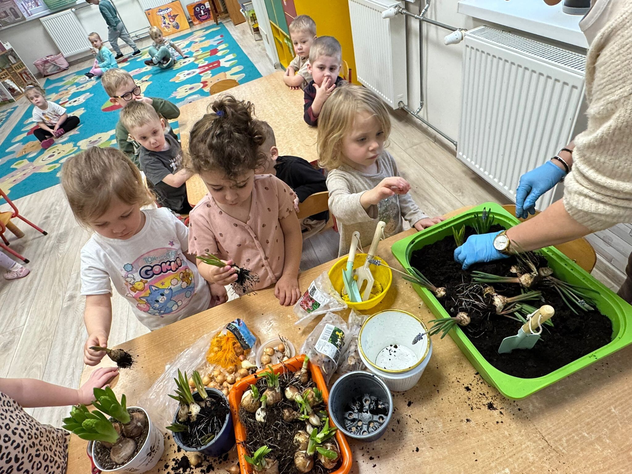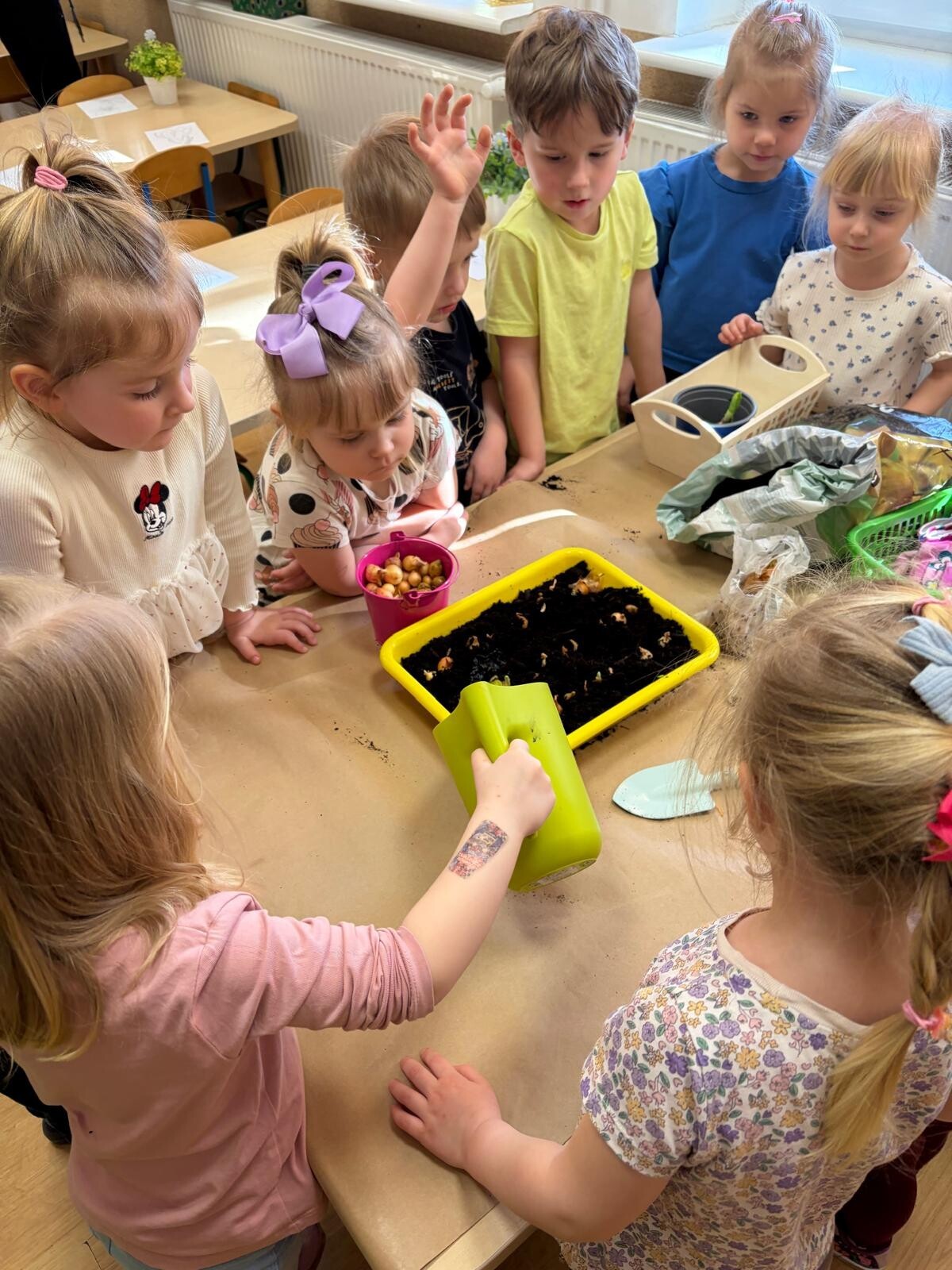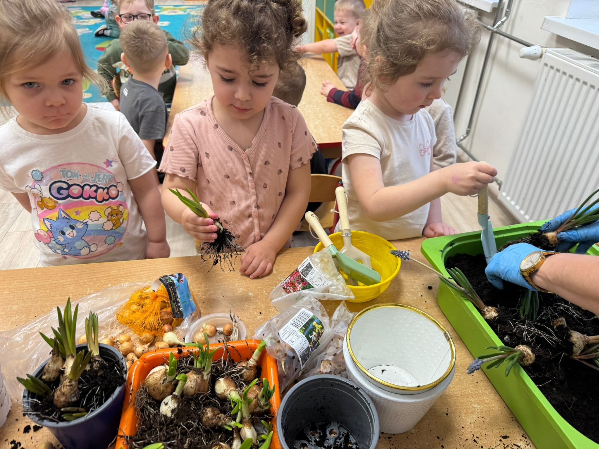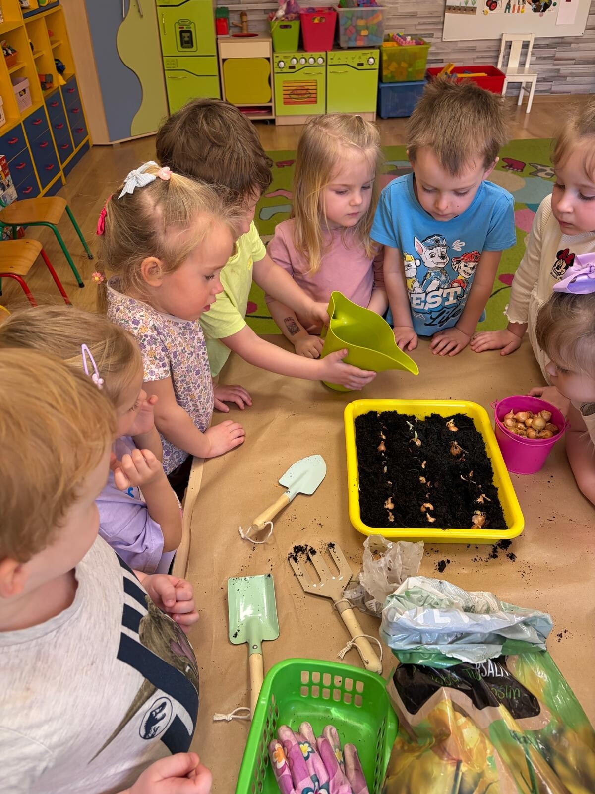 Dzieci z naszego przedszkola z wielkim zaangażowaniem założyły w salach wiosenne ogródki. Przedszkolaki samodzielnie przygotowały doniczki, nasypały ziemię oraz posadziły nasiona i cebulki roślin. Podczas zajęć dzieci dowiedziały się, czego potrzebują rośliny do wzrostu oraz jak należy o nie dbać.