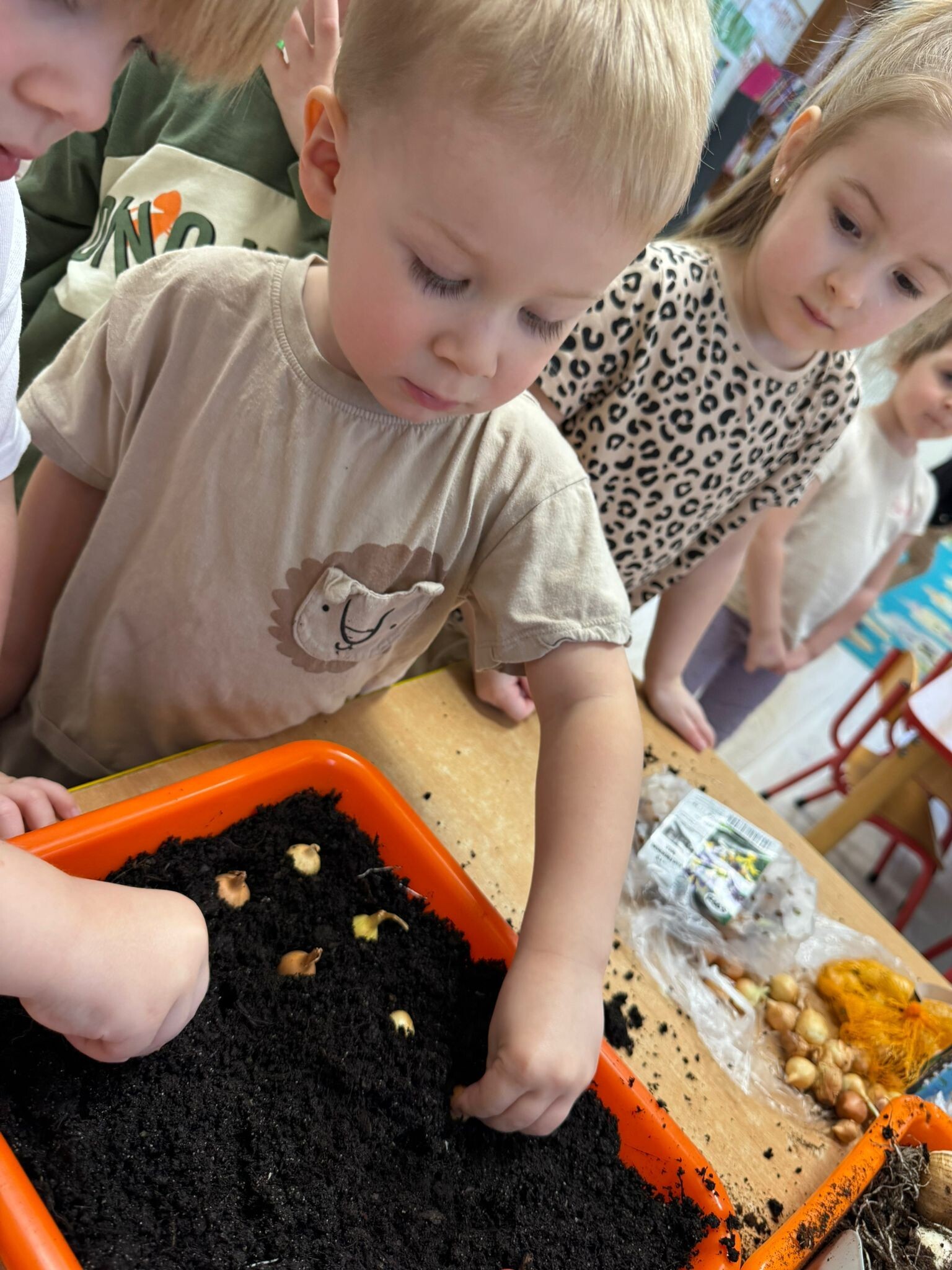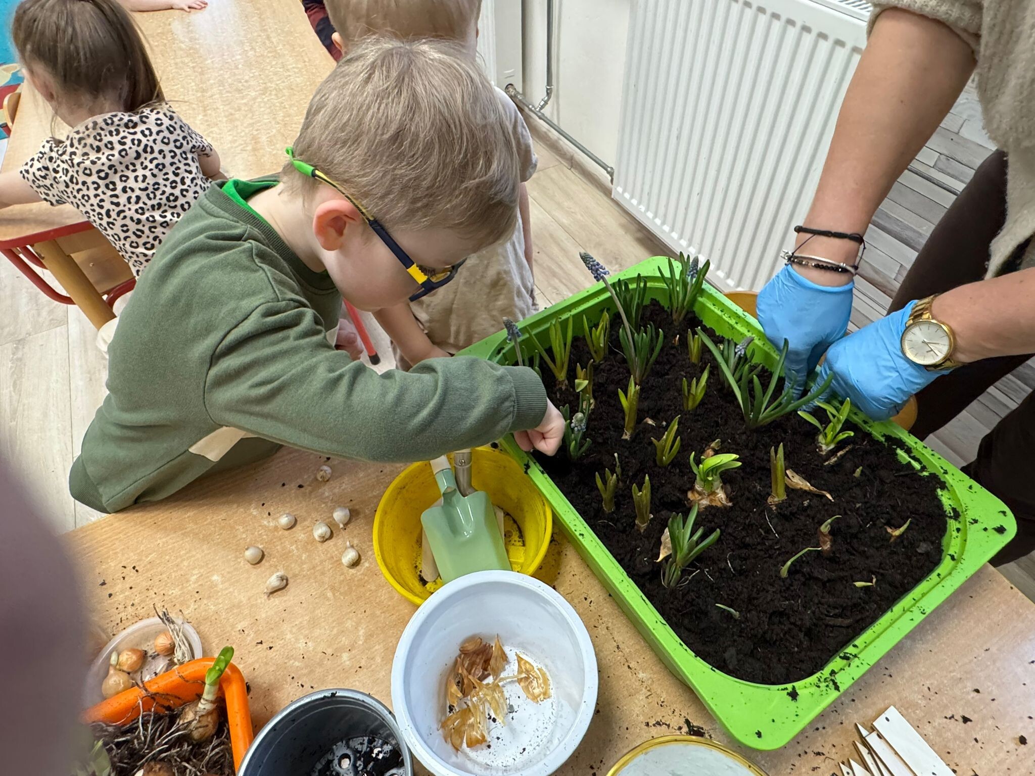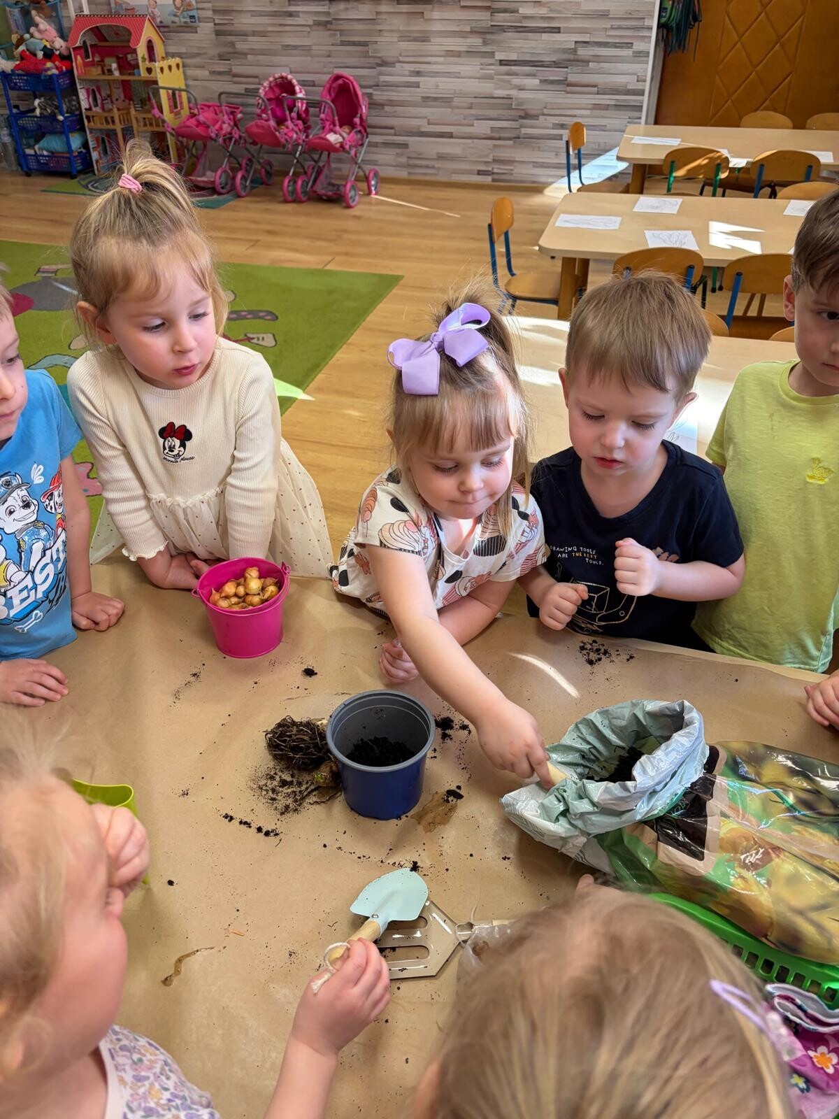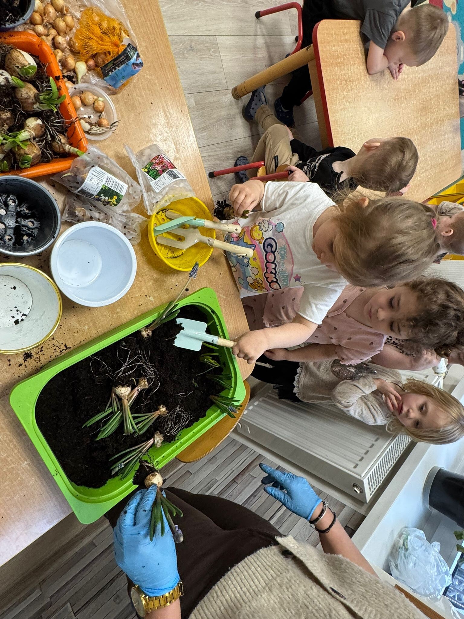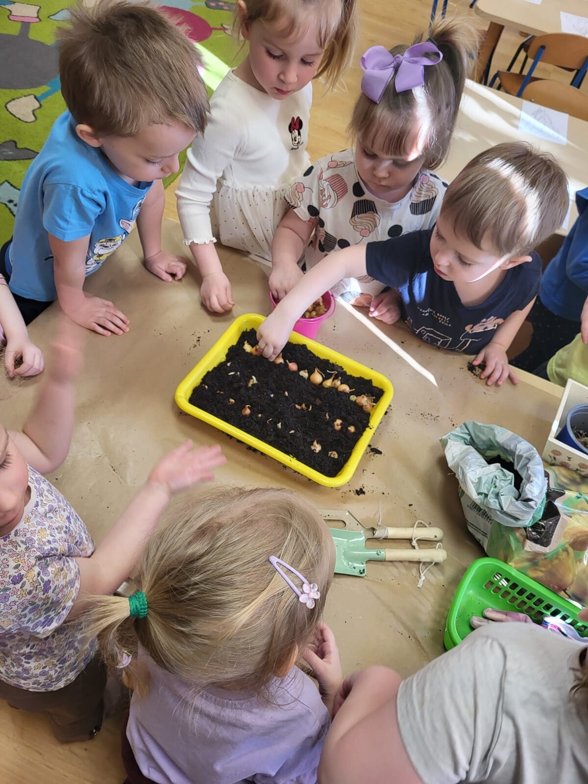 Dzieci z naszego przedszkola z wielkim zaangażowaniem założyły w salach wiosenne ogródki. Przedszkolaki samodzielnie przygotowały doniczki, nasypały ziemię oraz posadziły nasiona i cebulki roślin. Podczas zajęć dzieci dowiedziały się, czego potrzebują rośliny do wzrostu oraz jak należy o nie dbać.