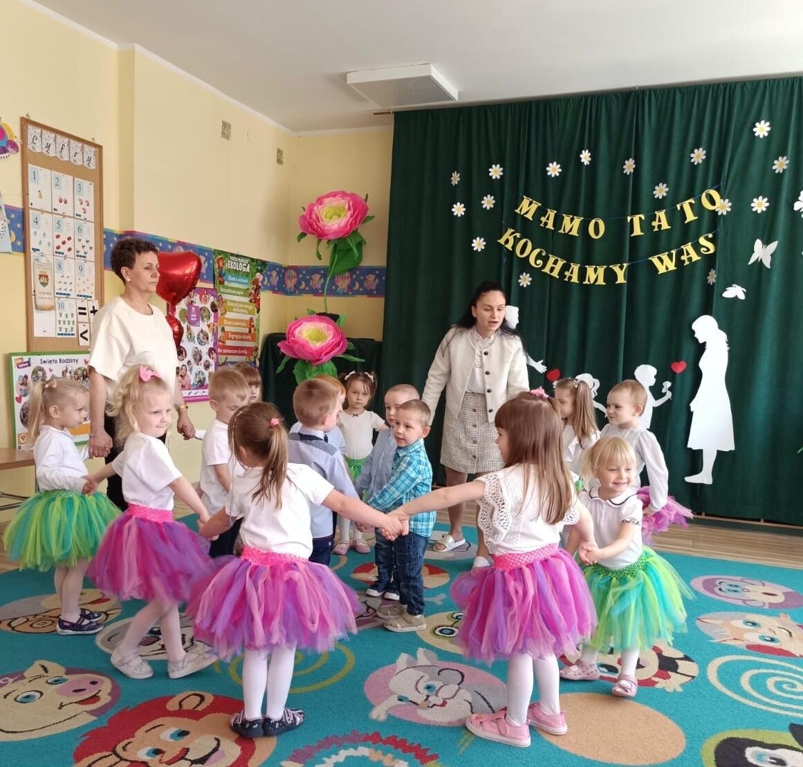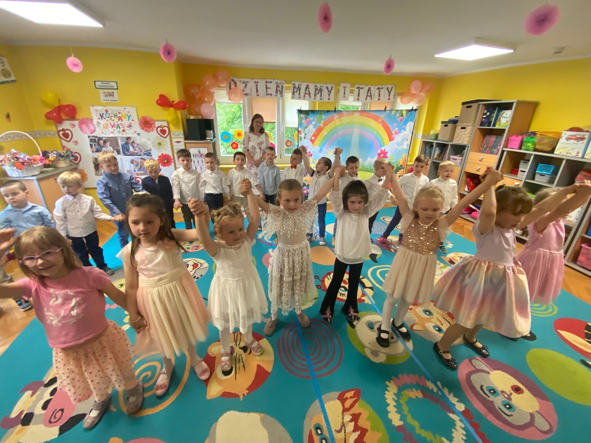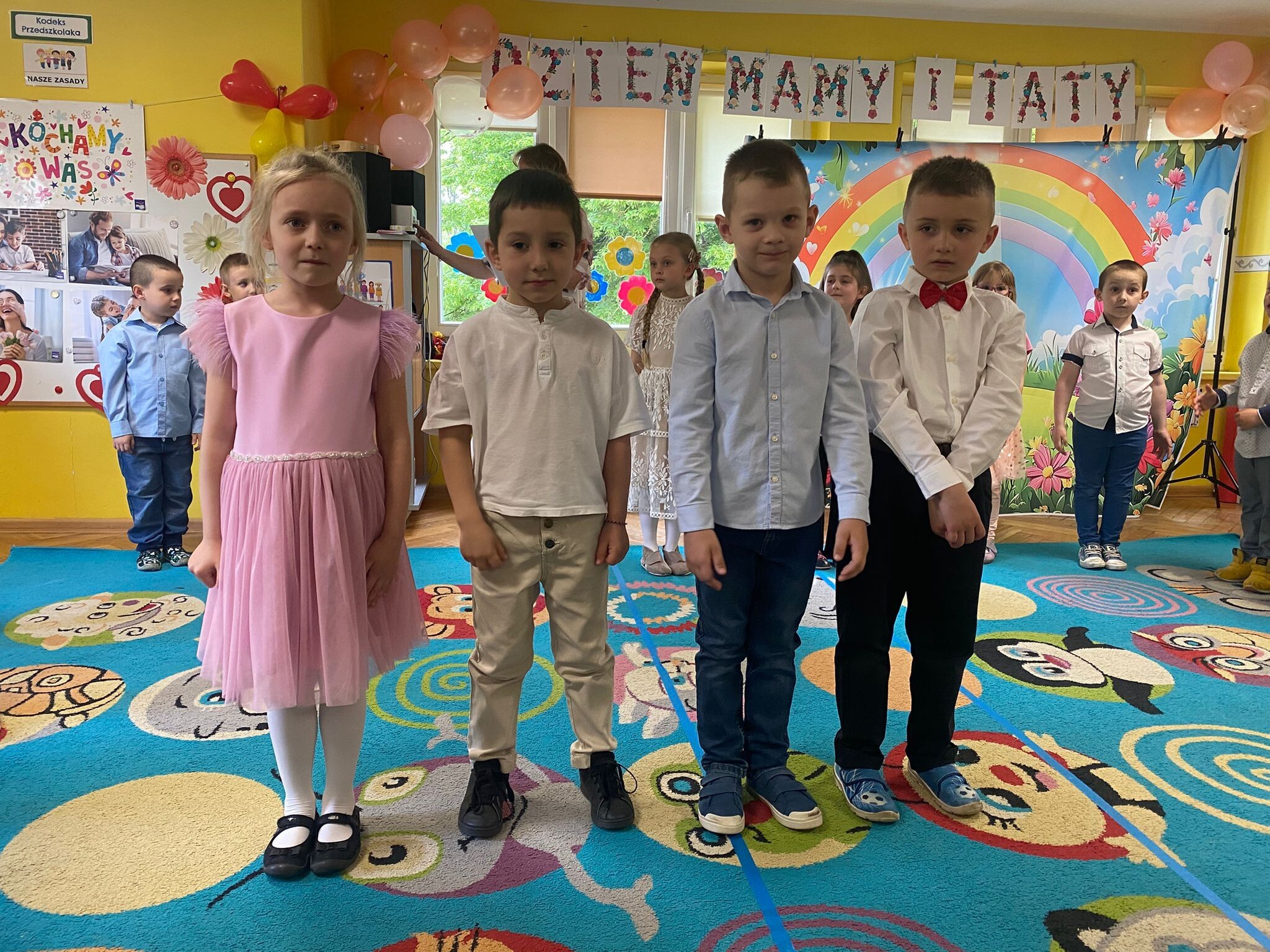 Mamusie i Tatusiowie są najważniejsi dla swoich dzieci. Raz w roku Ich pociechy z całego serca chcą Im o tym powiedzieć. W związku z tym w dniach od 23 do 29 maja odbywały się uroczystości grupowe. Dzieci śpiewały i tańczyły, recytowały wiersze, przedstawiały inscenizacje i składały życzenia, a całość uświetniały wspaniałe prezenty - niespodzianki. Rodzice i dzieci wychodzili uśmiechnięci i bardzo zadowoleni. Dzieci zaproszą ich znowu za rok, ale to już będzie inna historia.